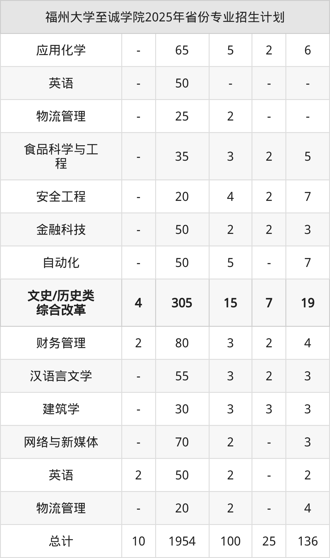 2025年福州大学至诚学院计划招收本科生3120人,其中英语专业130人,食品科学与工程专业75人,金融科技专业80人,数据科学与大数据技术专业95人,电气工程及其自动化专业180人等。