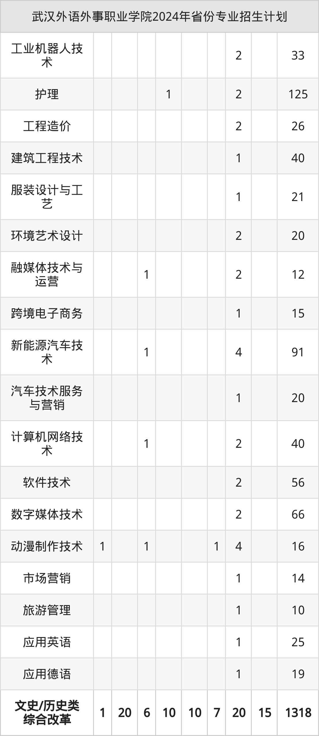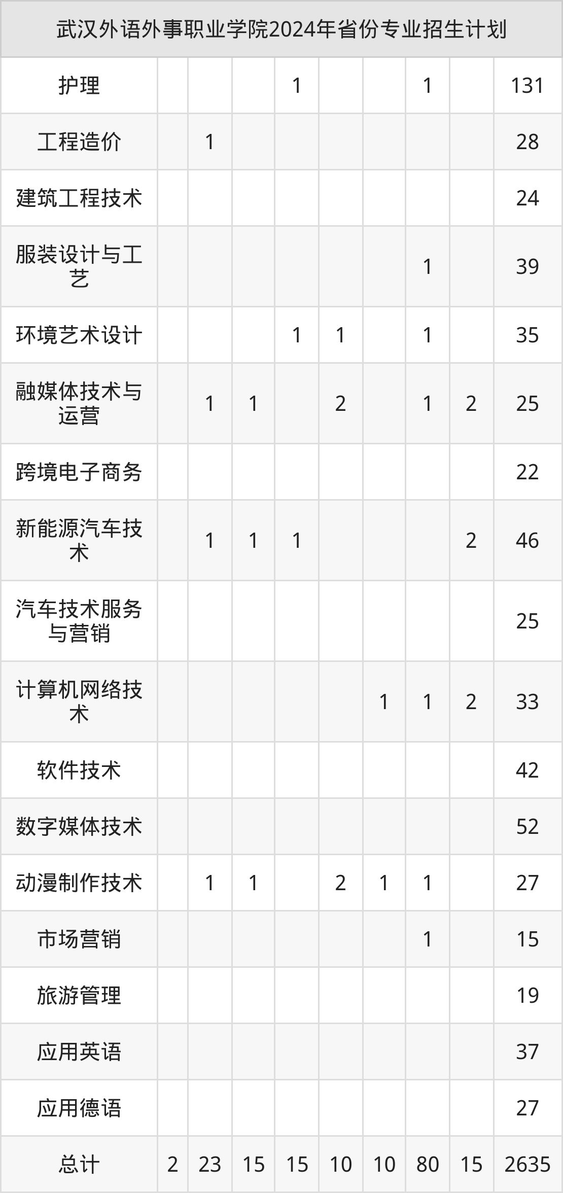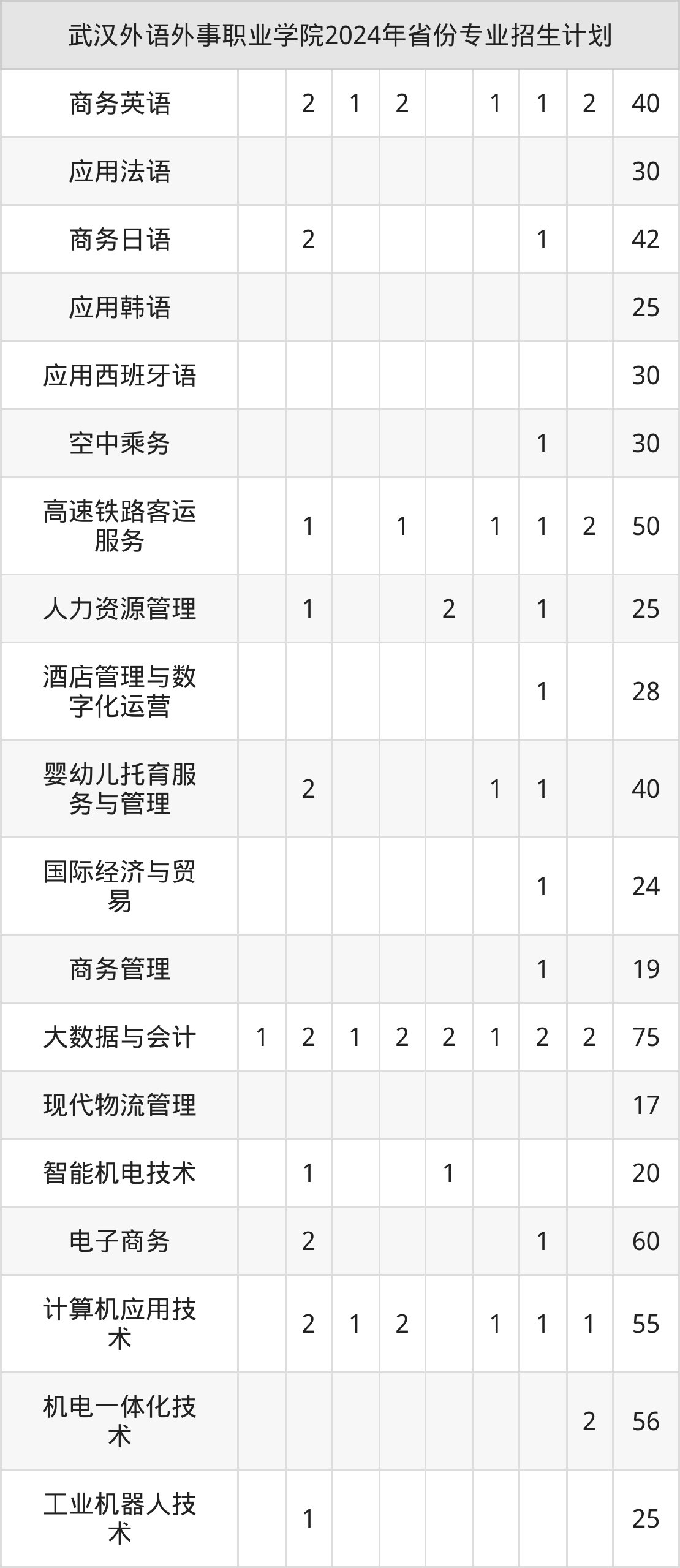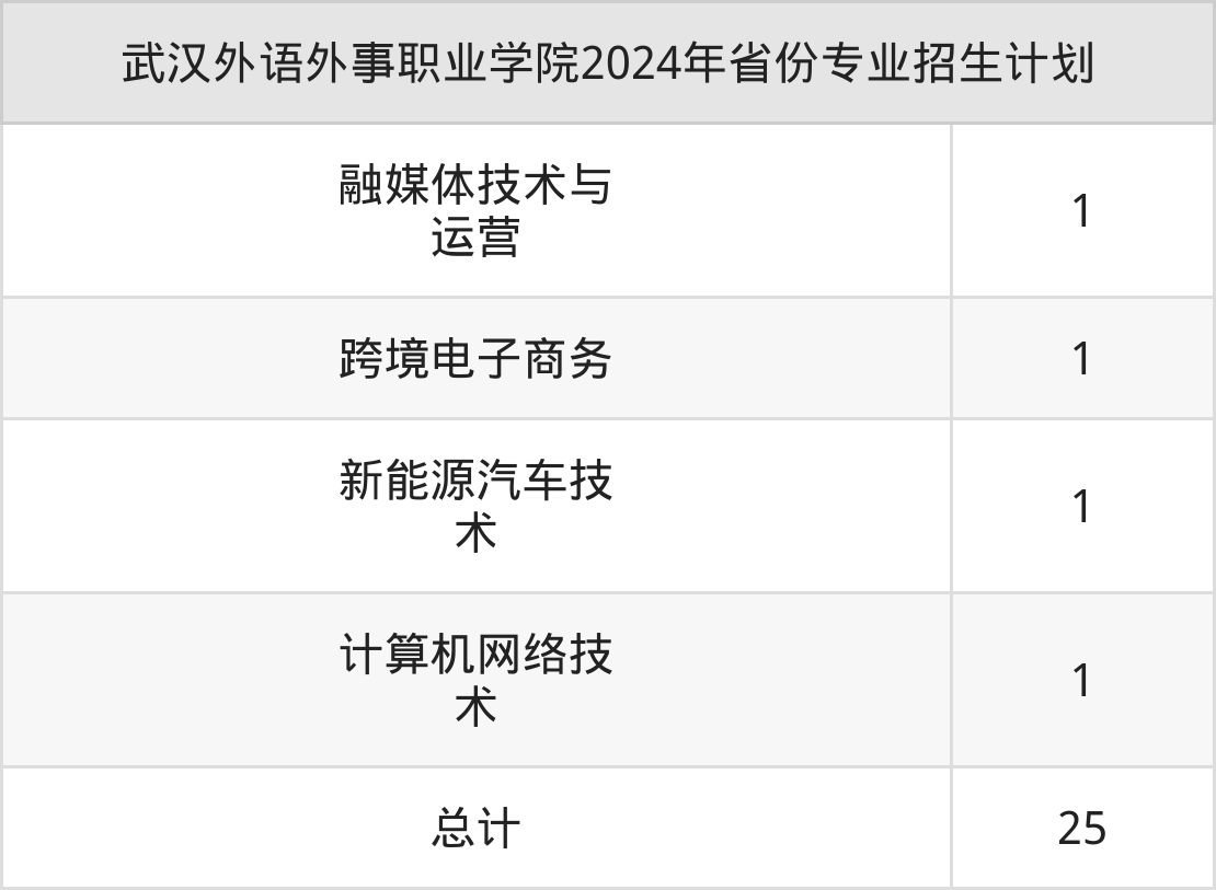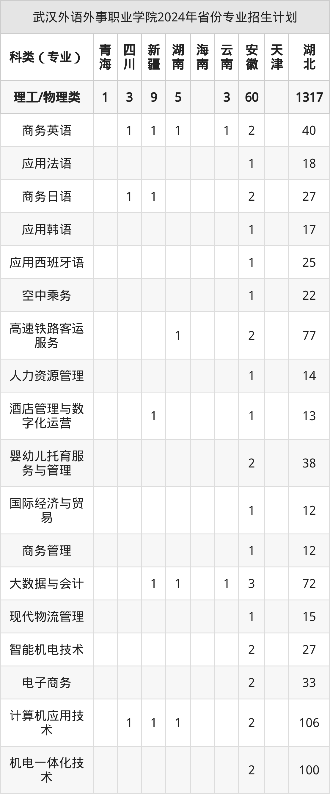2025年武汉外语外事职业学院专科招生计划待公布,下面附上2024年数据,暂供参考: