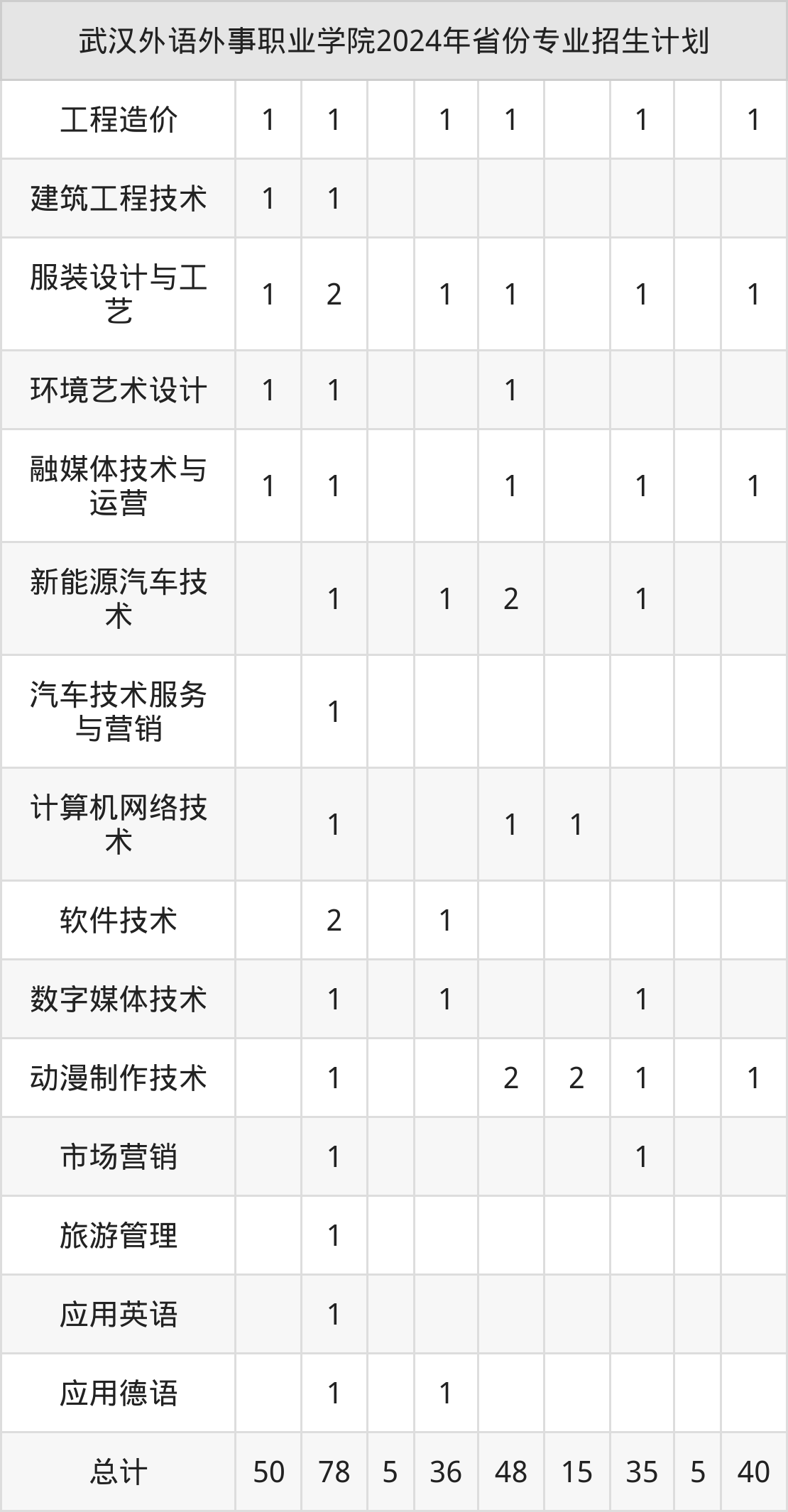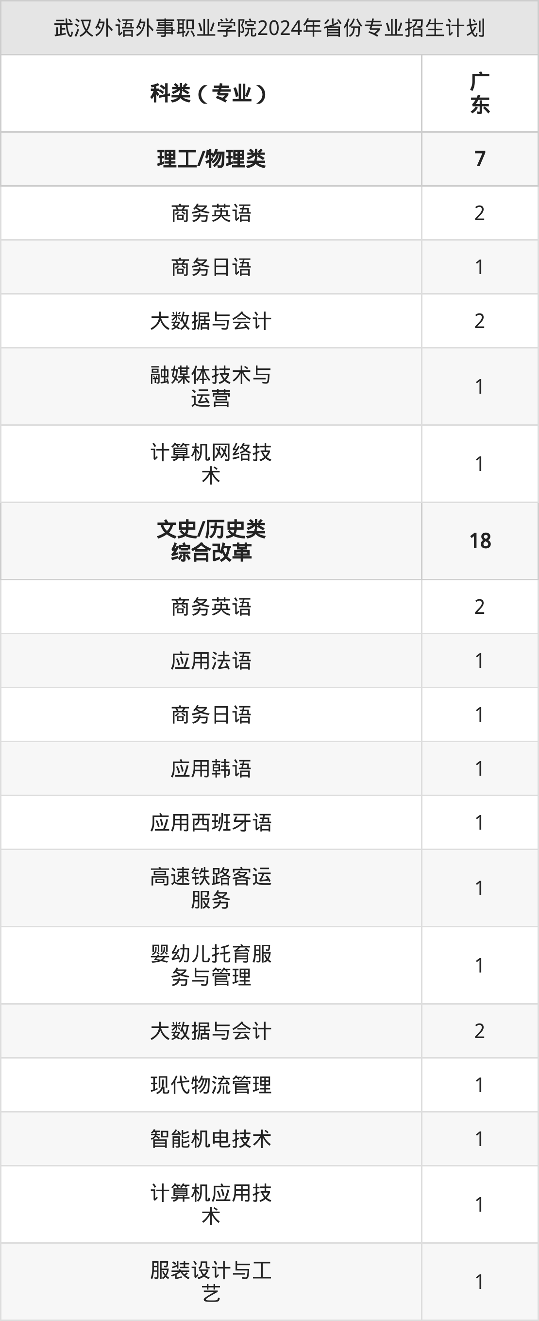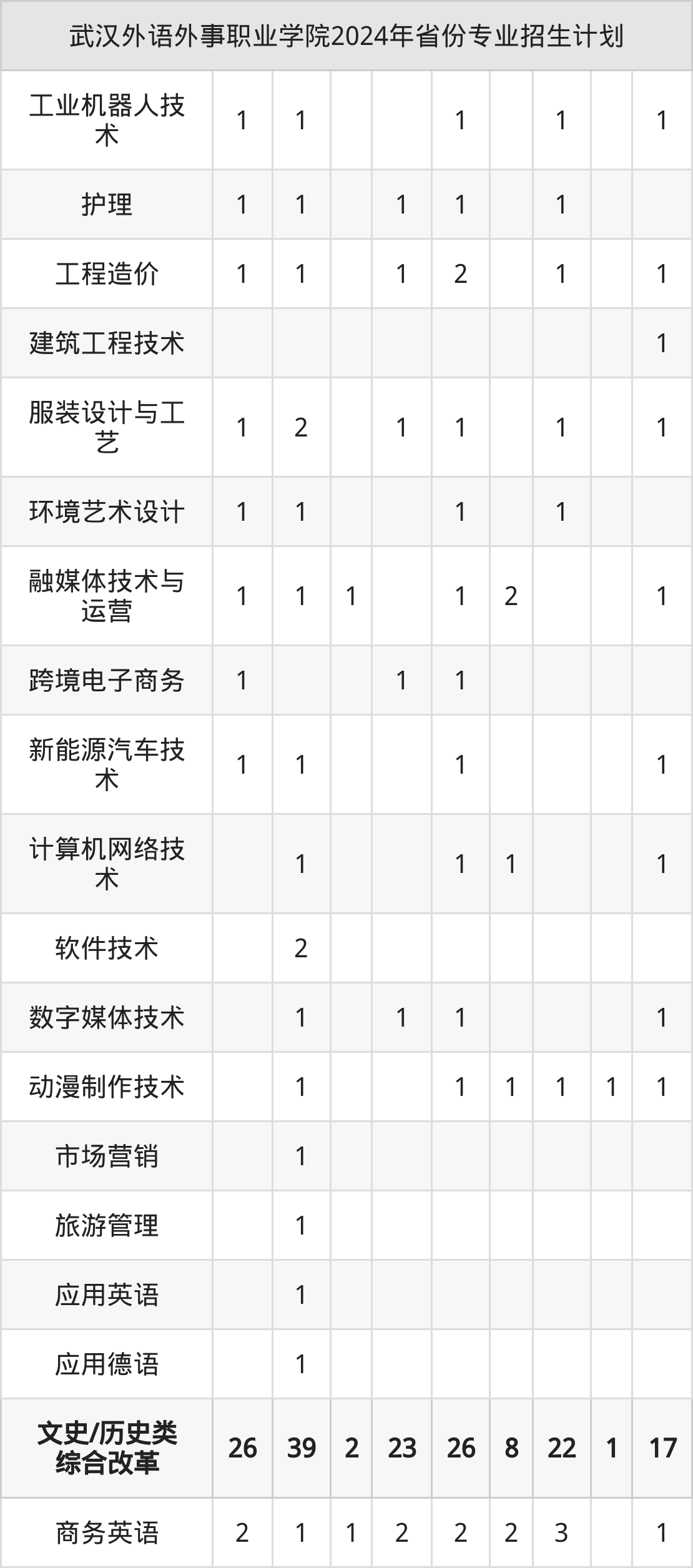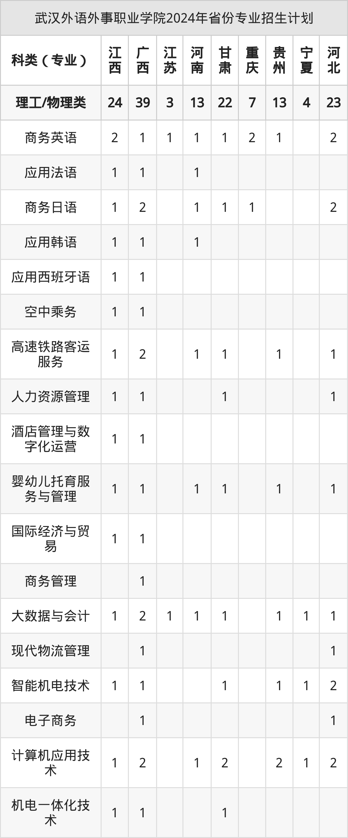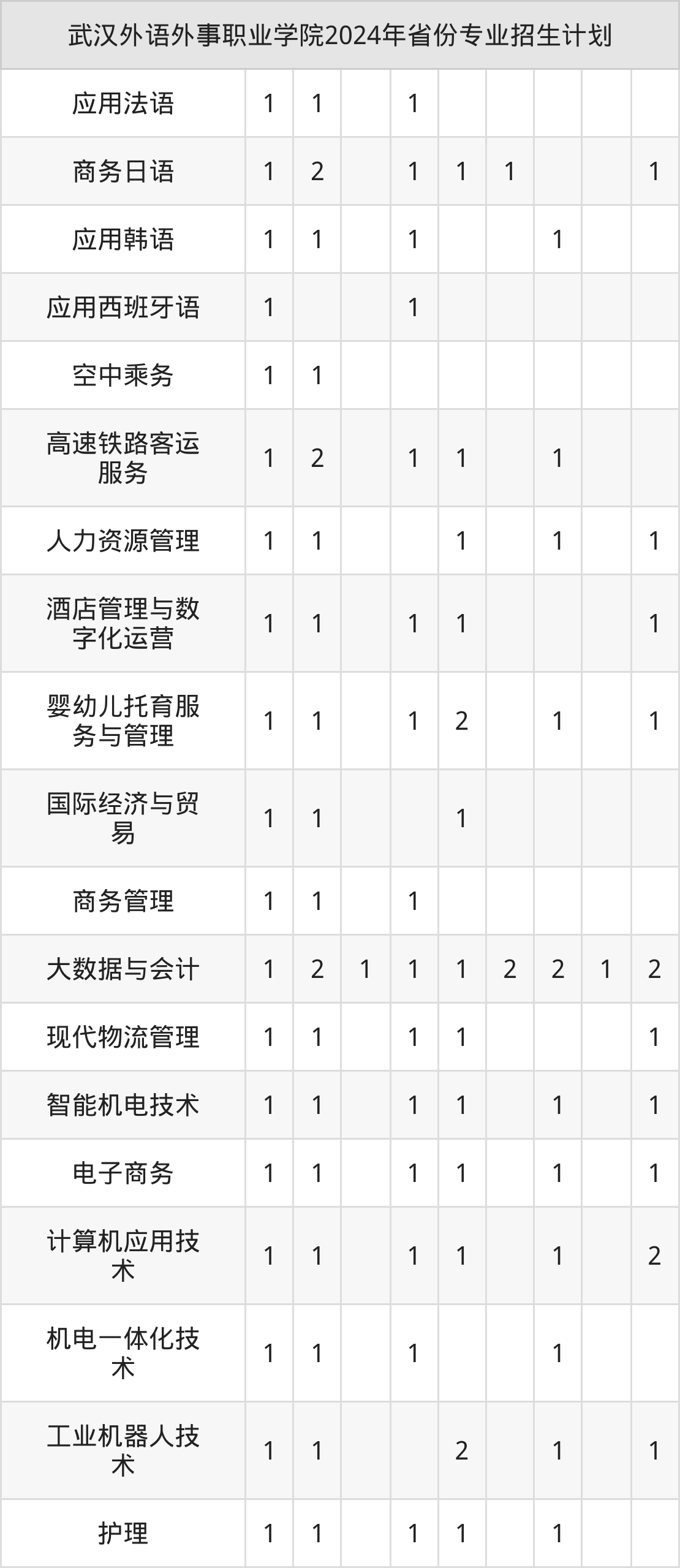 2025年武汉外语外事职业学院专科招生计划待公布,下面附上2024年数据,暂供参考: