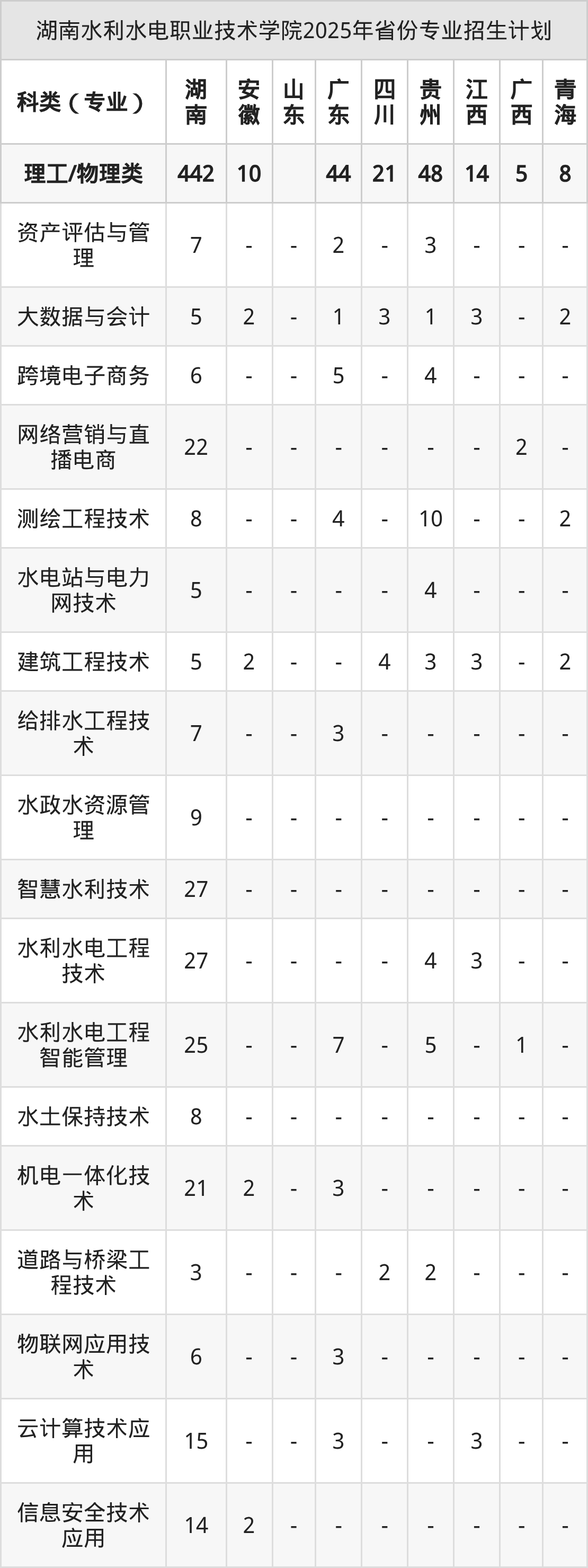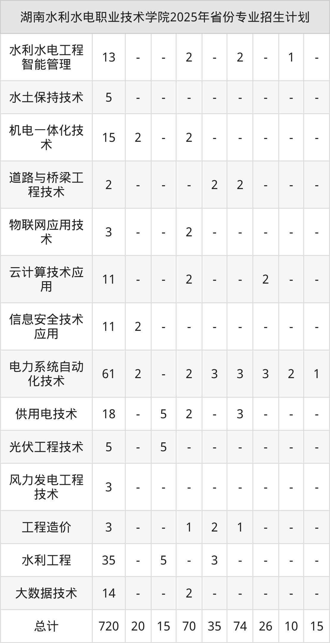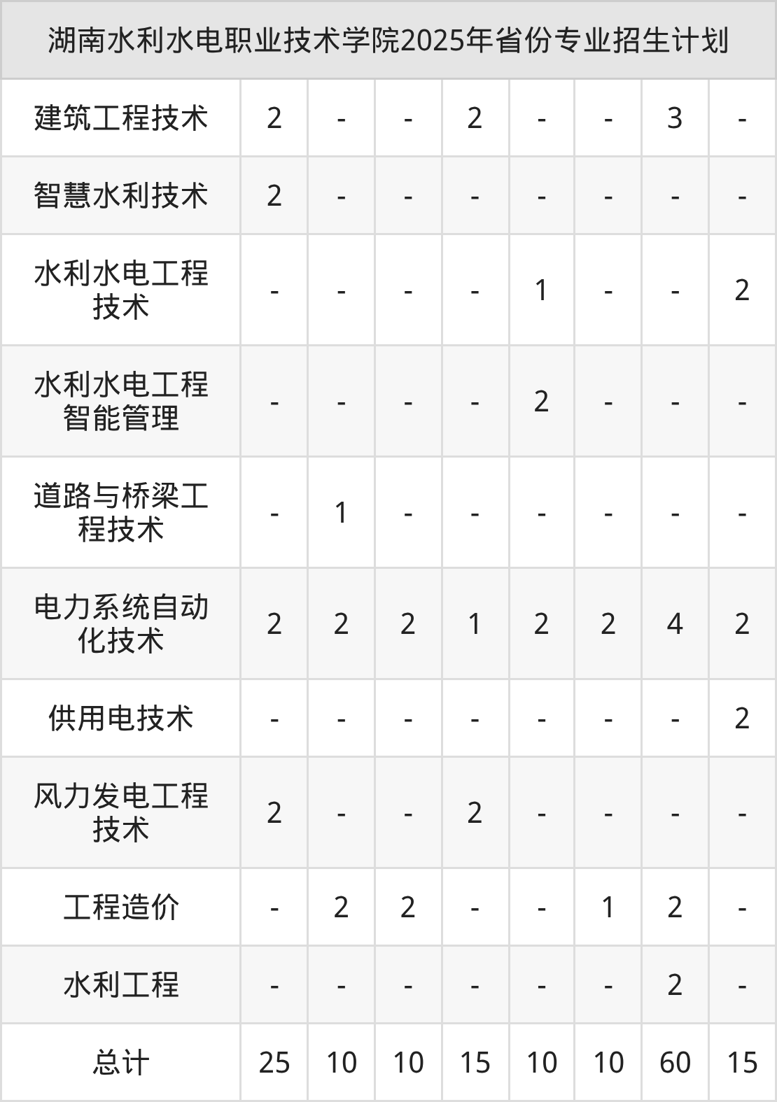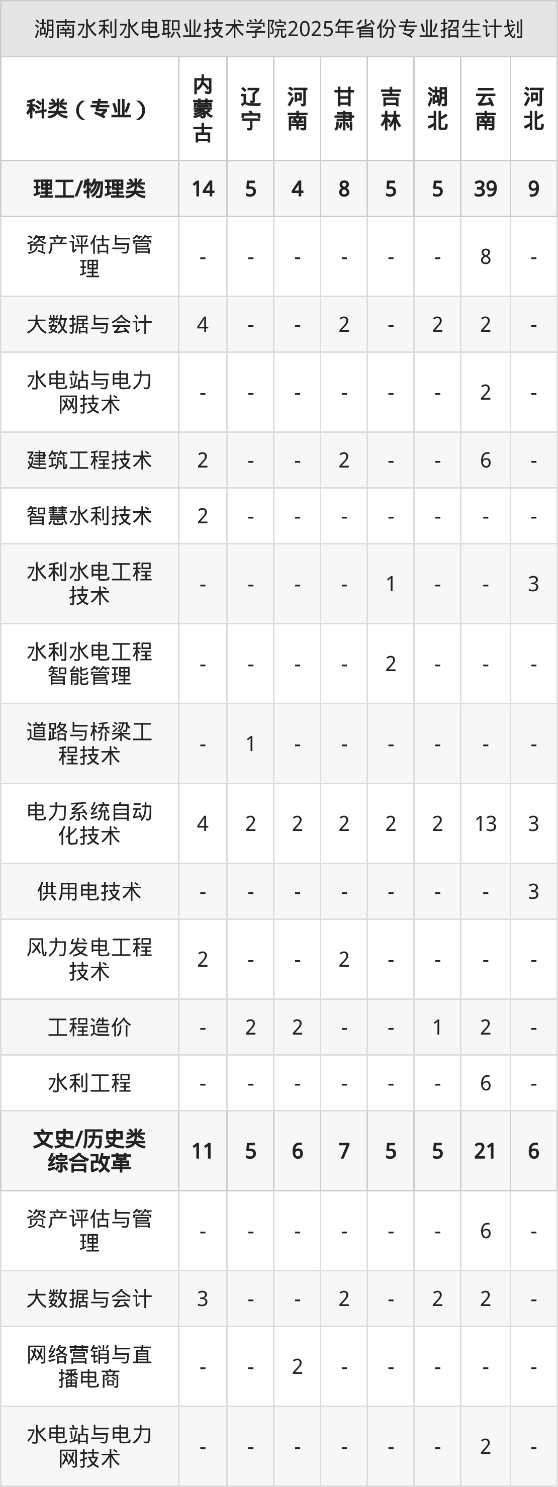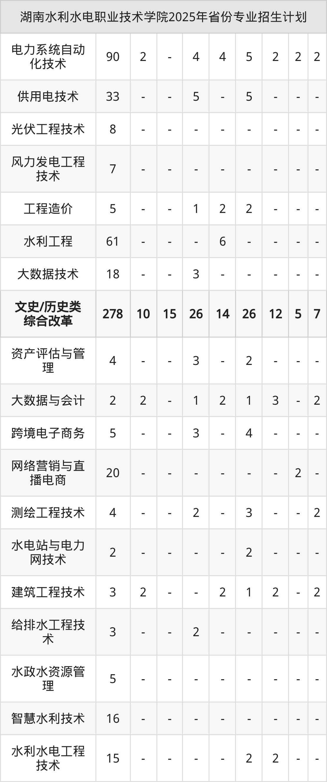 2026年湖南水利水电职业技术学院专科招生计划待公布,下面附上2025年数据,暂供参考: