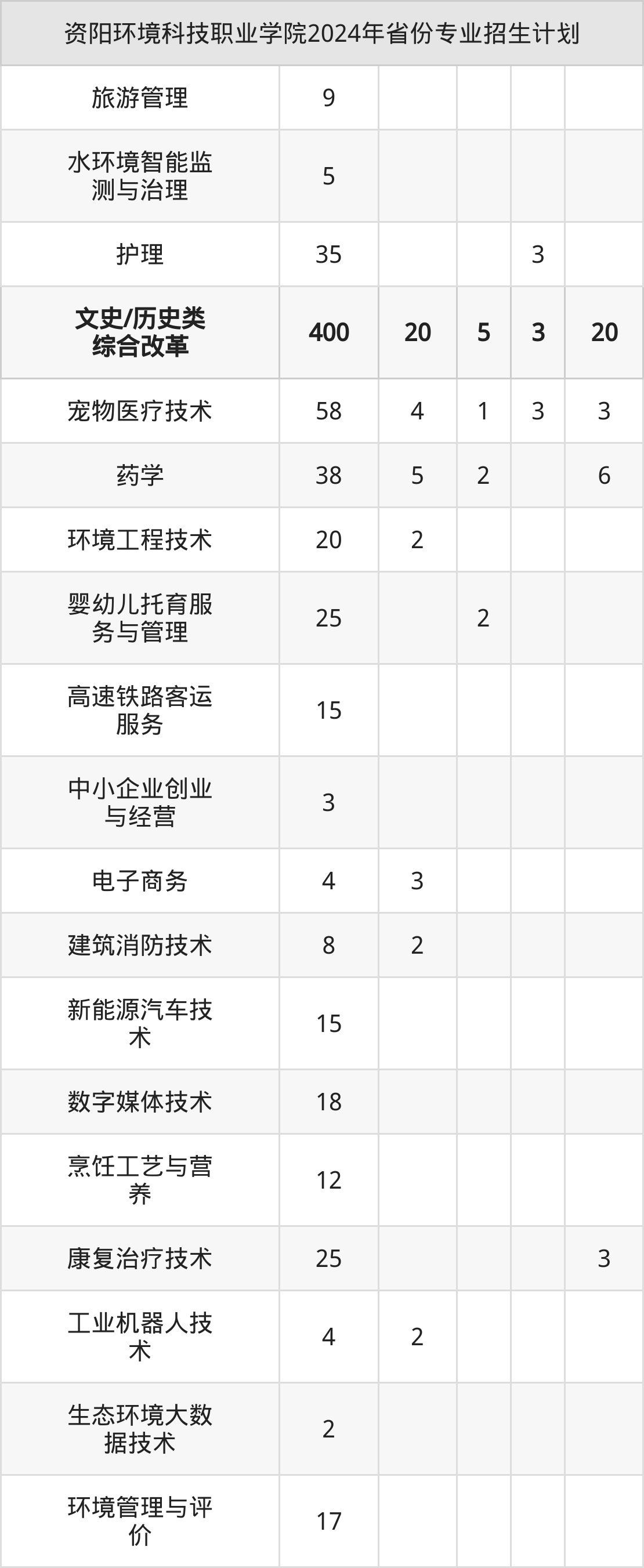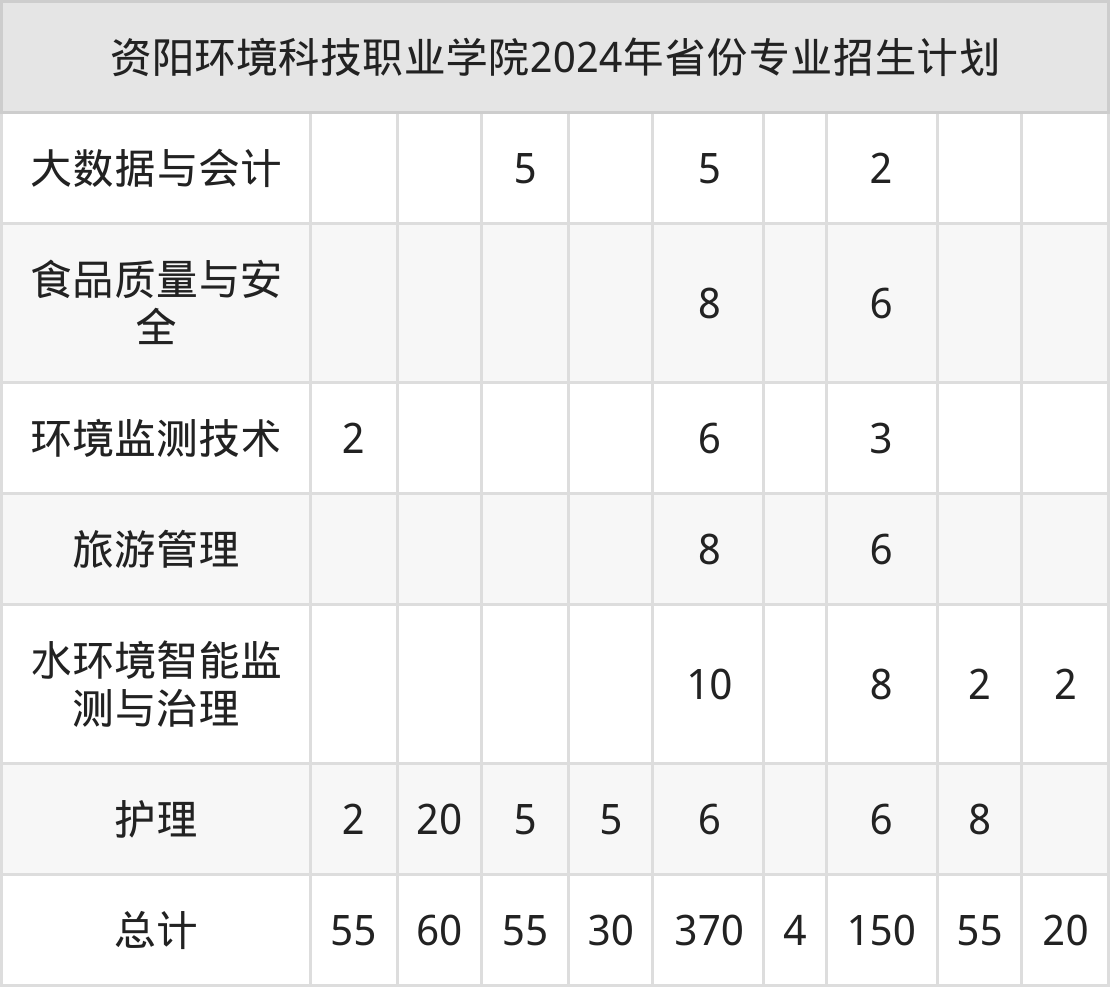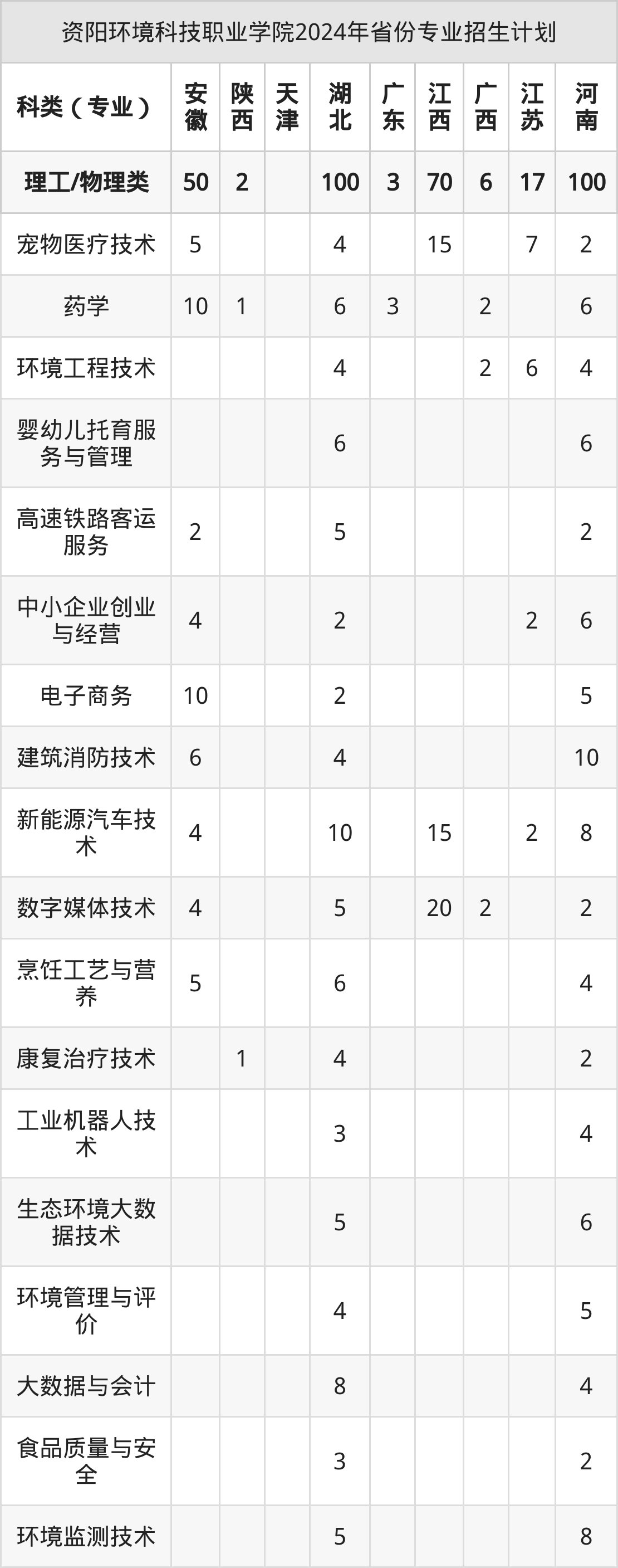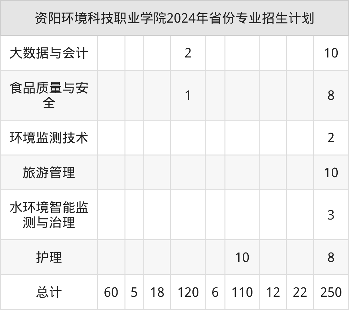 2025年资阳环境科技职业学院专科招生计划待公布,下面附上2024年数据,暂供参考: