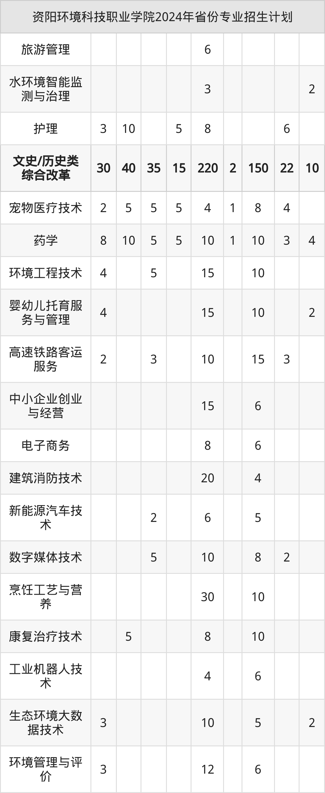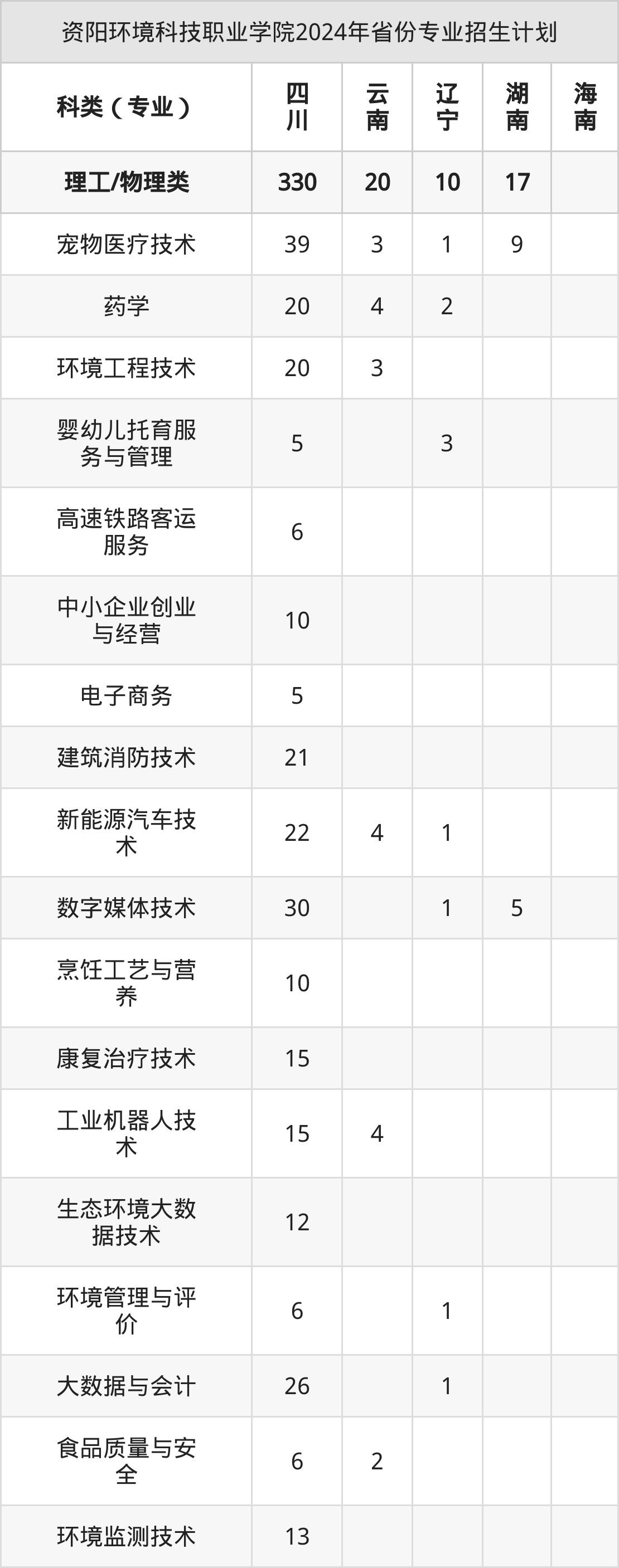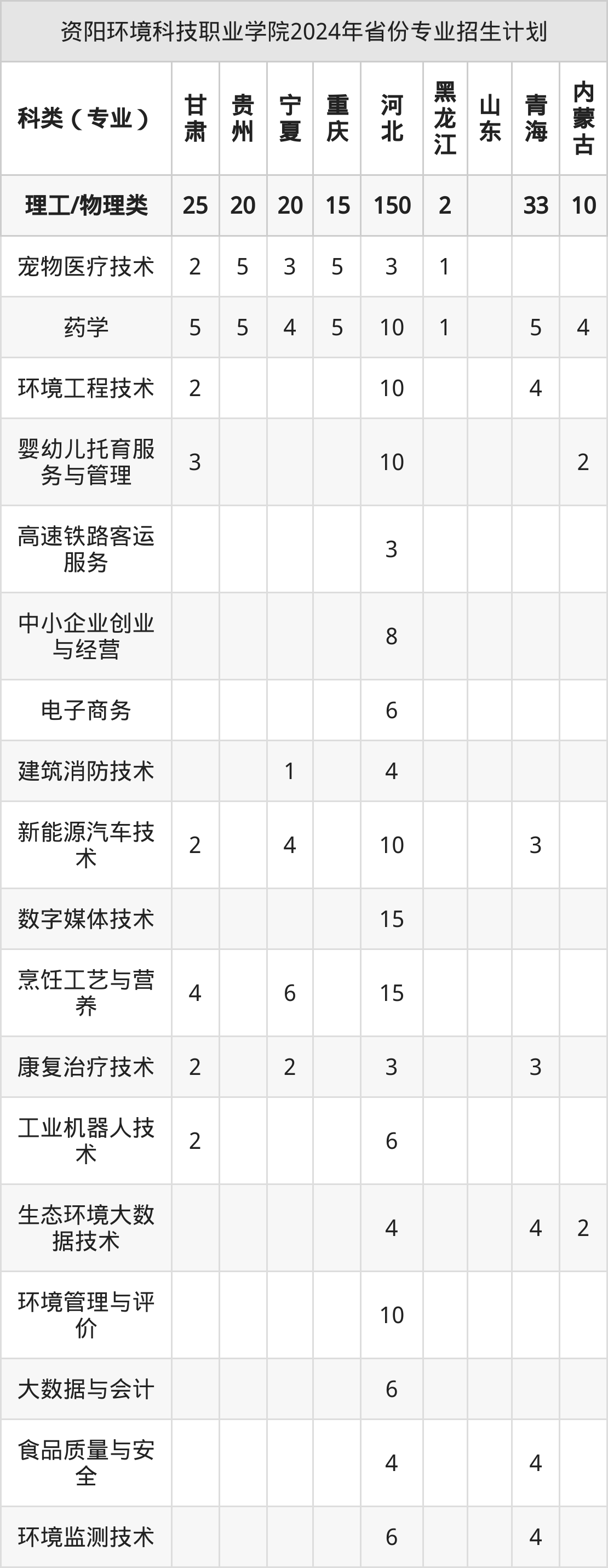 2025年资阳环境科技职业学院专科招生计划待公布,下面附上2024年数据,暂供参考: