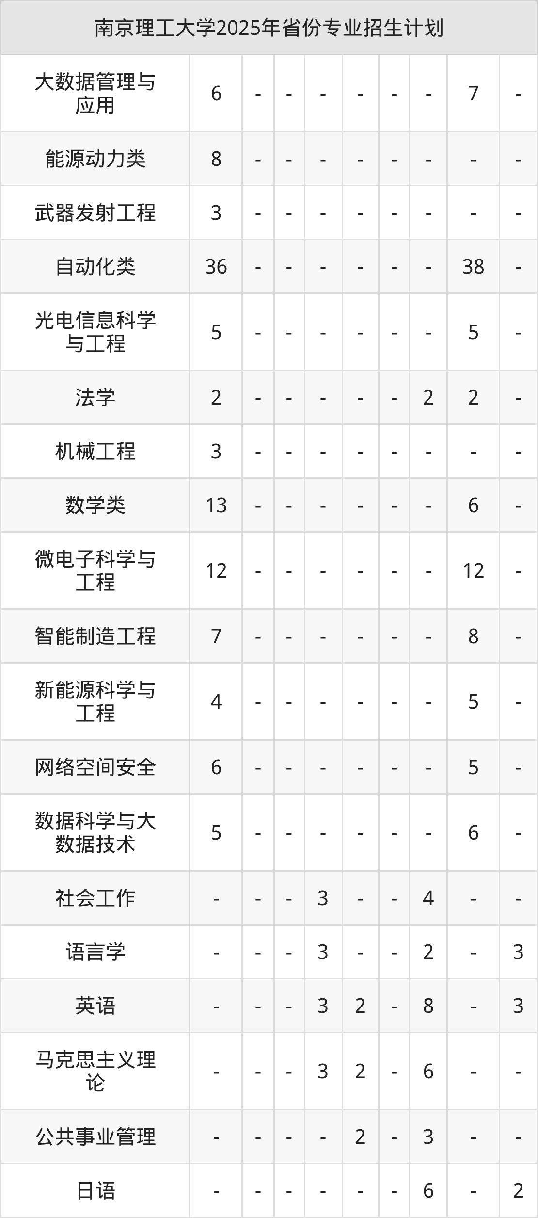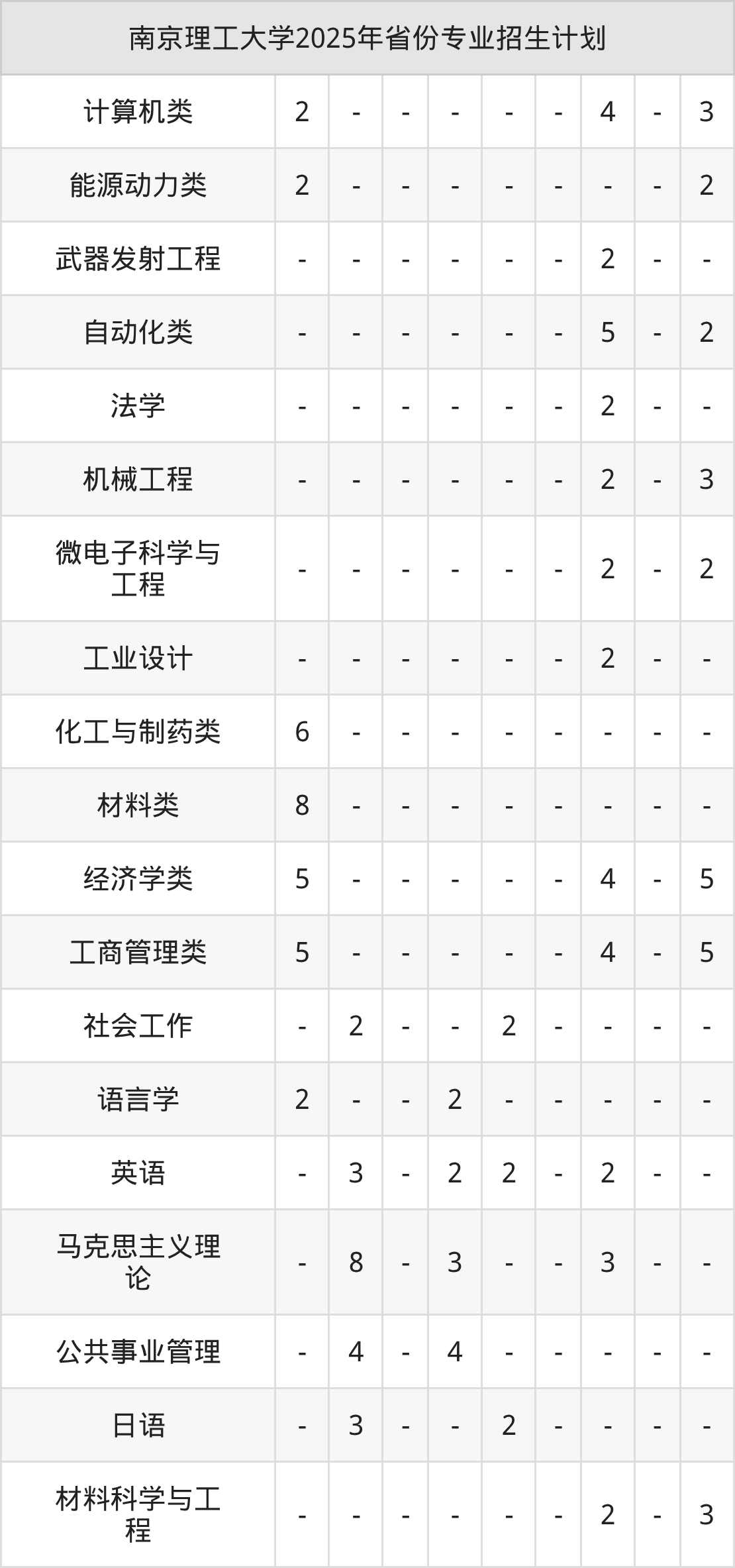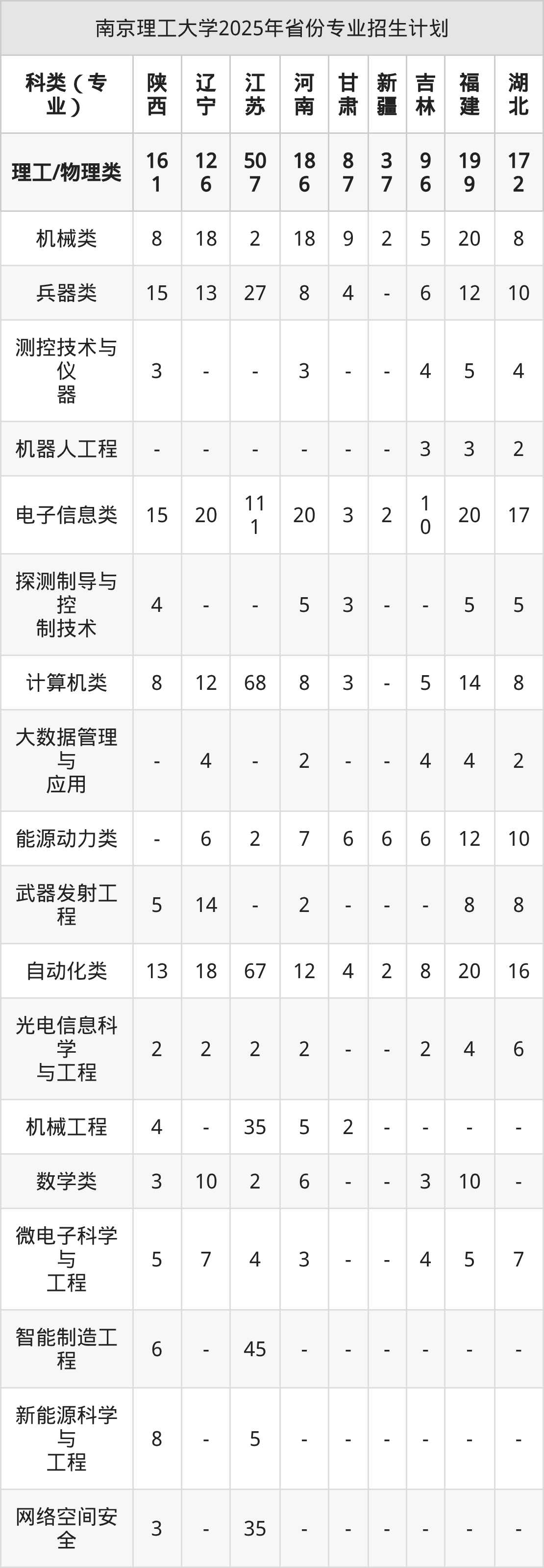2026年南京理工大学本科招生计划待公布,下面附上2025年数据,暂供参考: