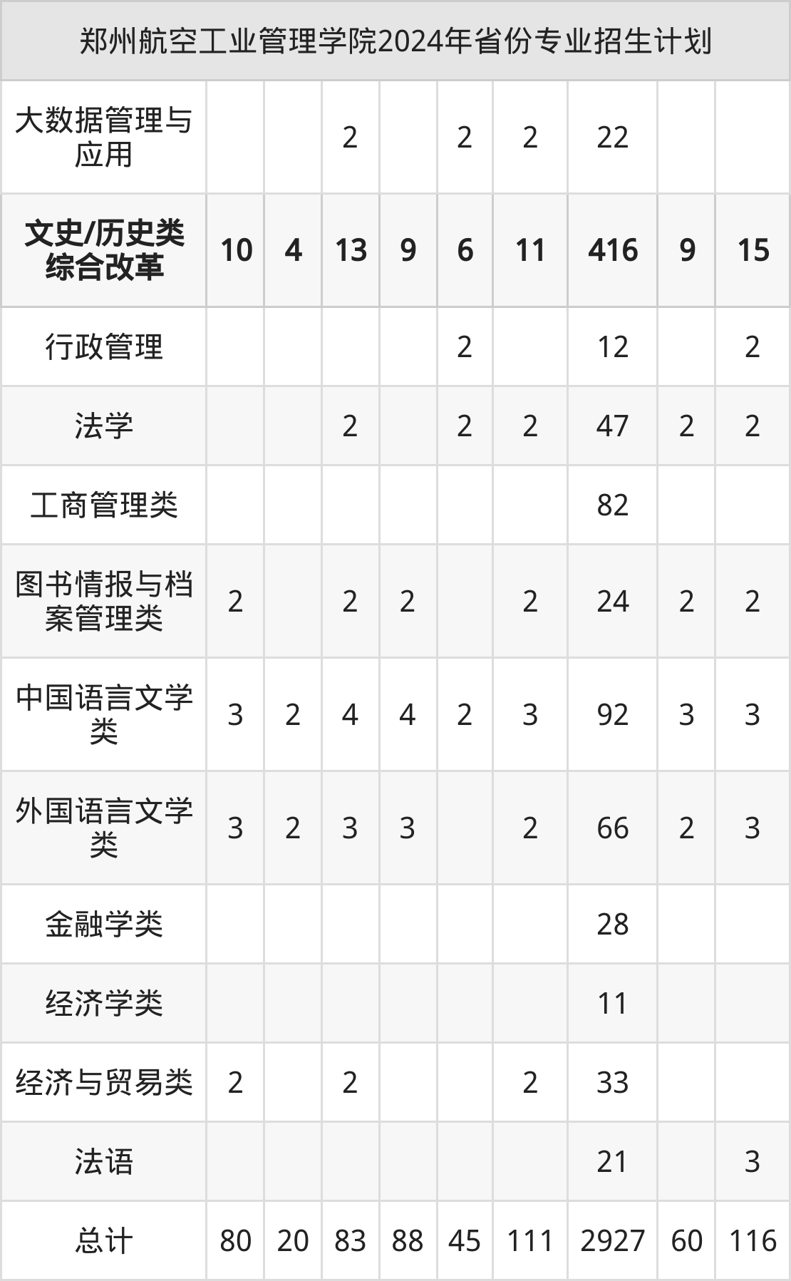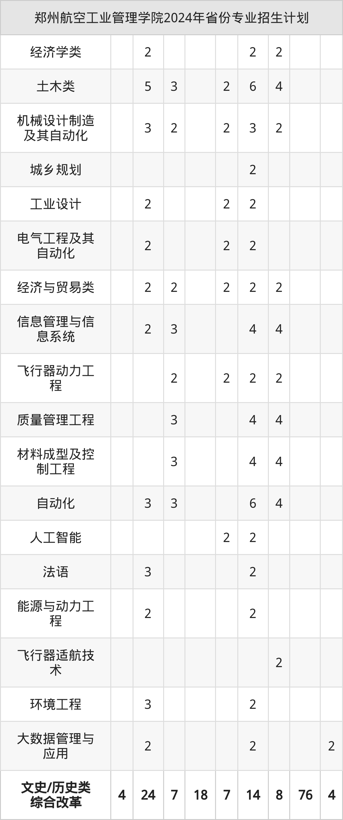 2025年郑州航空工业管理学院本科招生计划待公布,下面附上2024年数据,暂供参考: