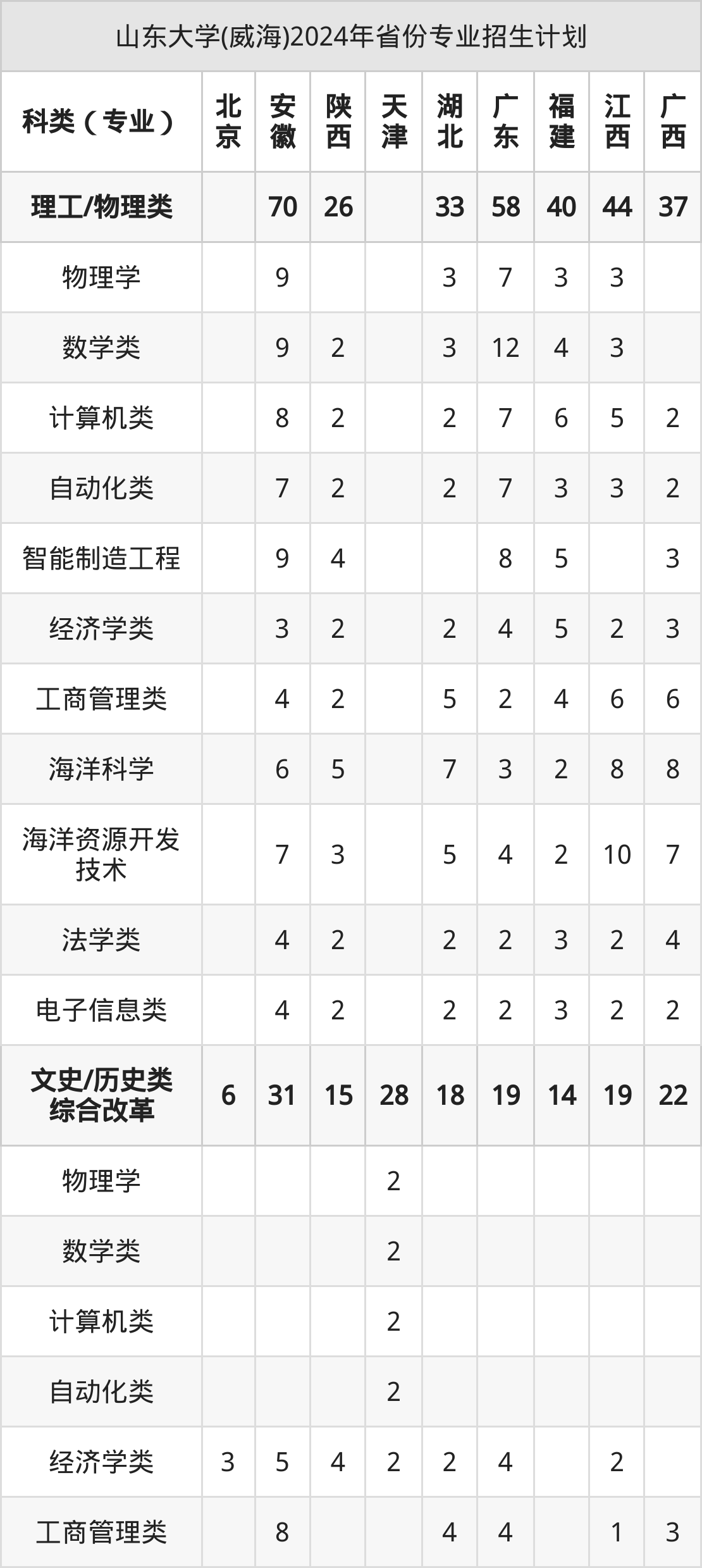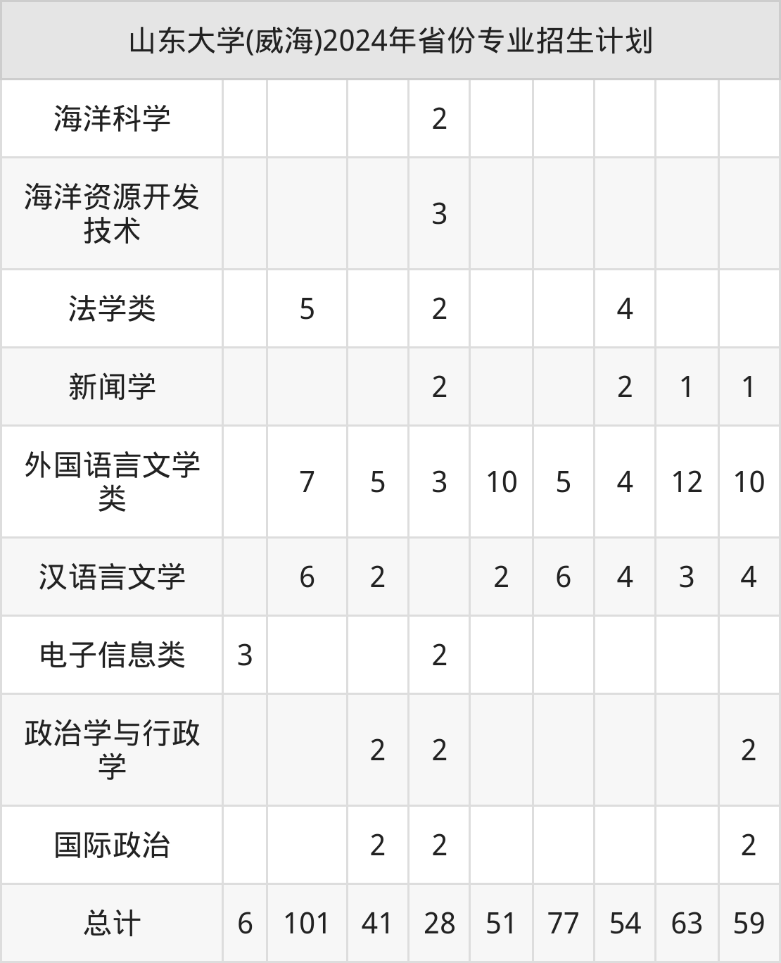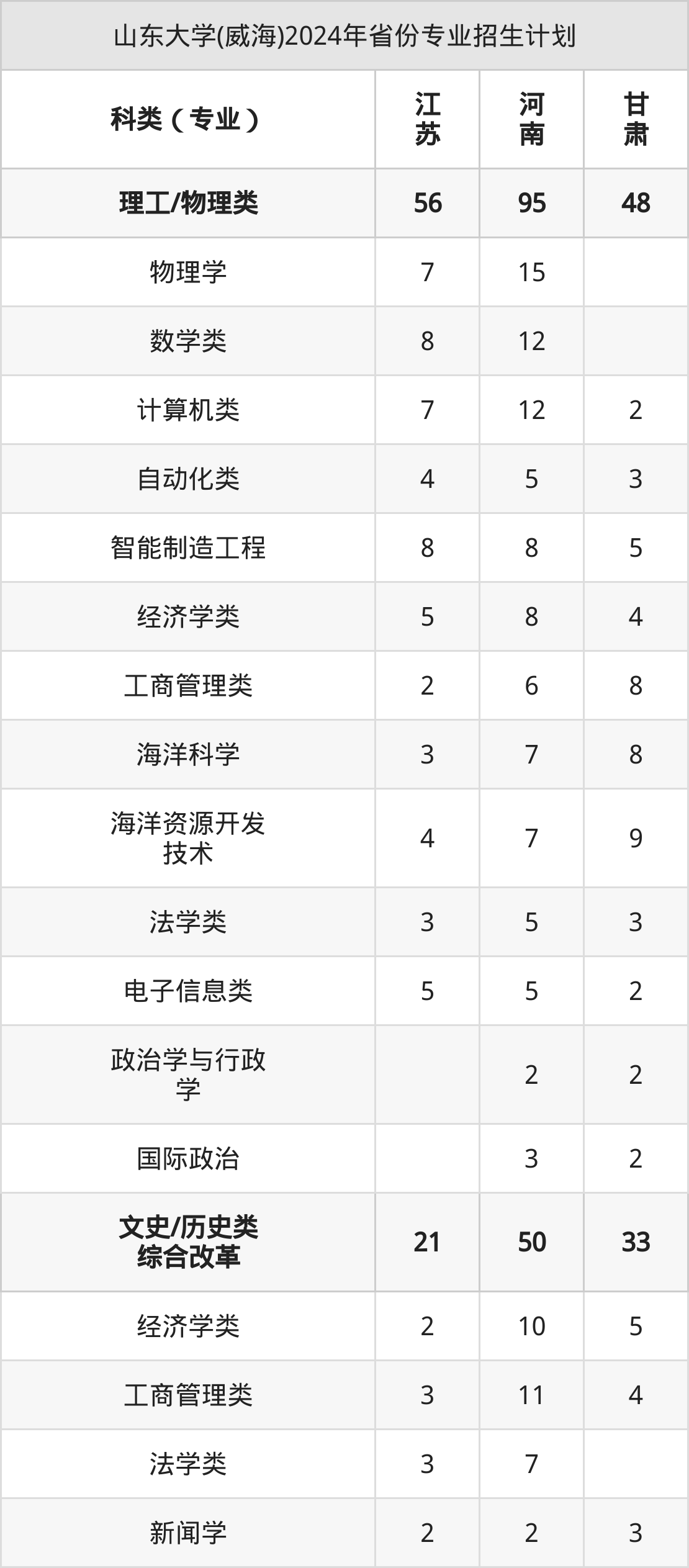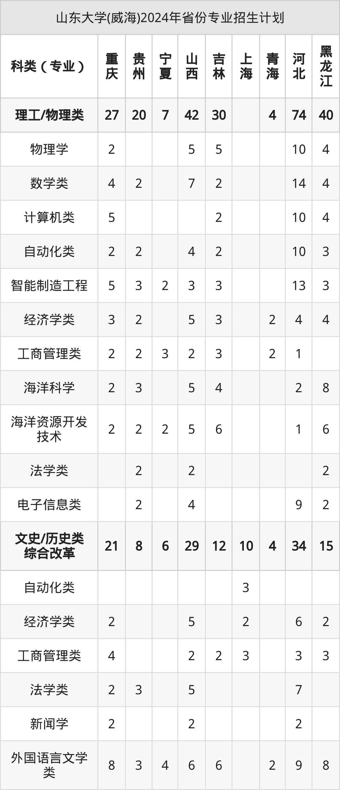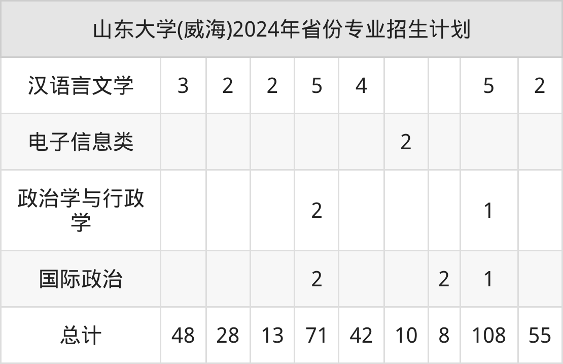 2025年山东大学(威海)本科招生计划待公布,下面附上2024年数据,暂供参考: