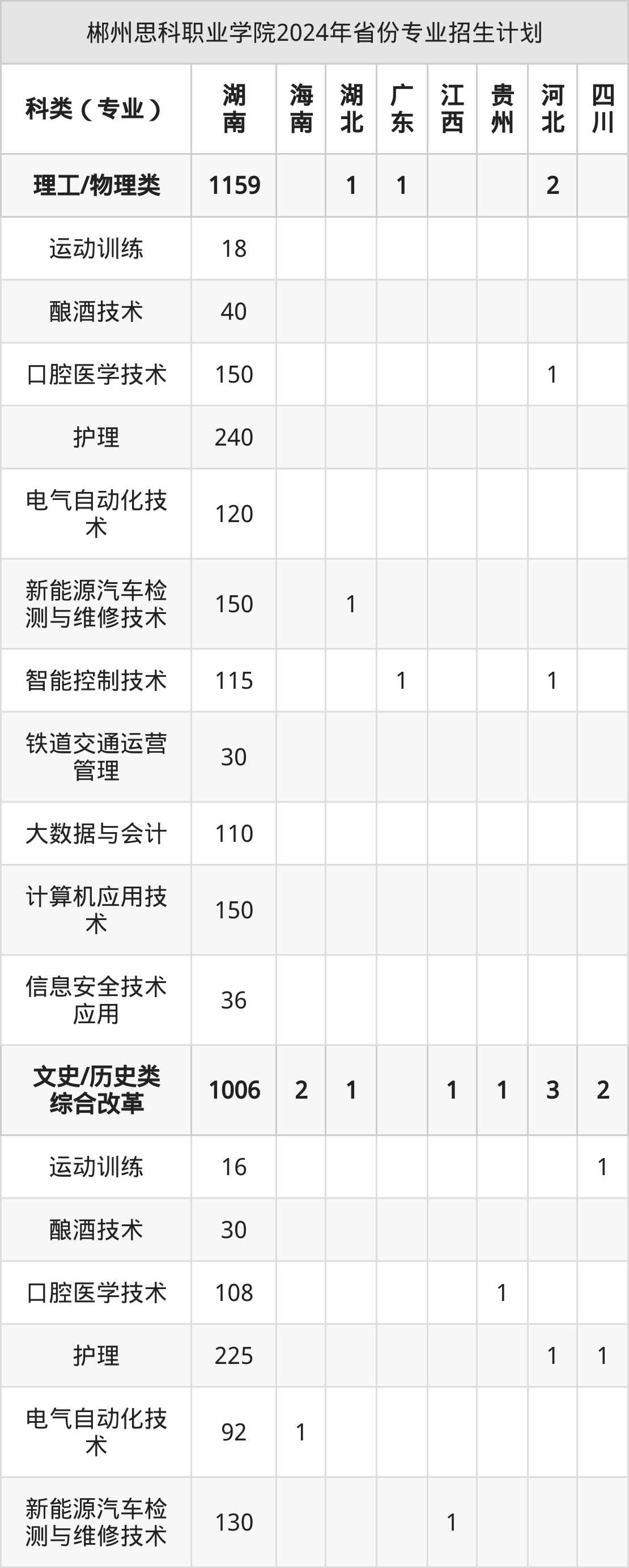 2025年郴州思科职业学院专科招生计划待公布,下面附上2024年数据,暂供参考: