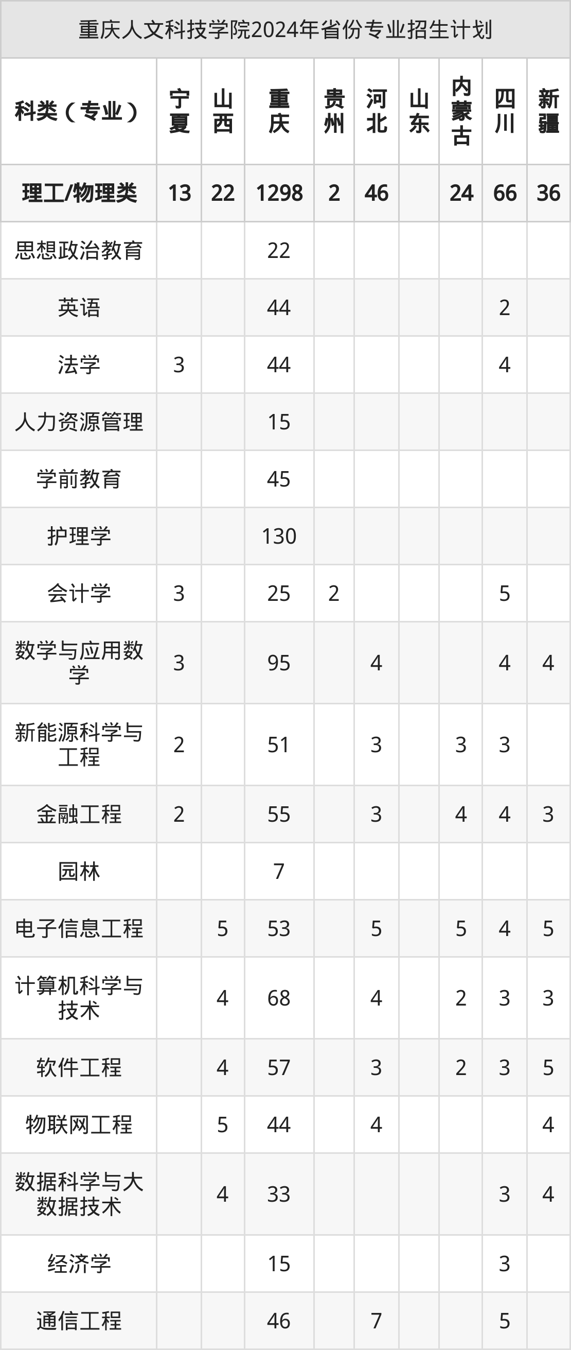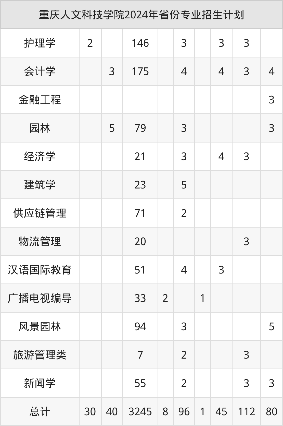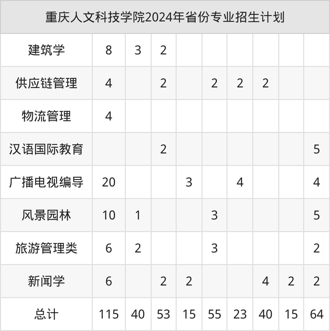 2025年重庆人文科技学院本科招生计划待公布,下面附上2024年数据,暂供参考:
