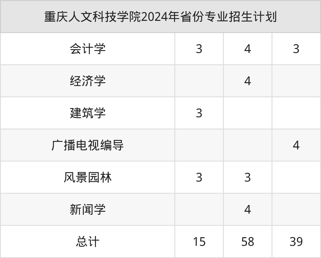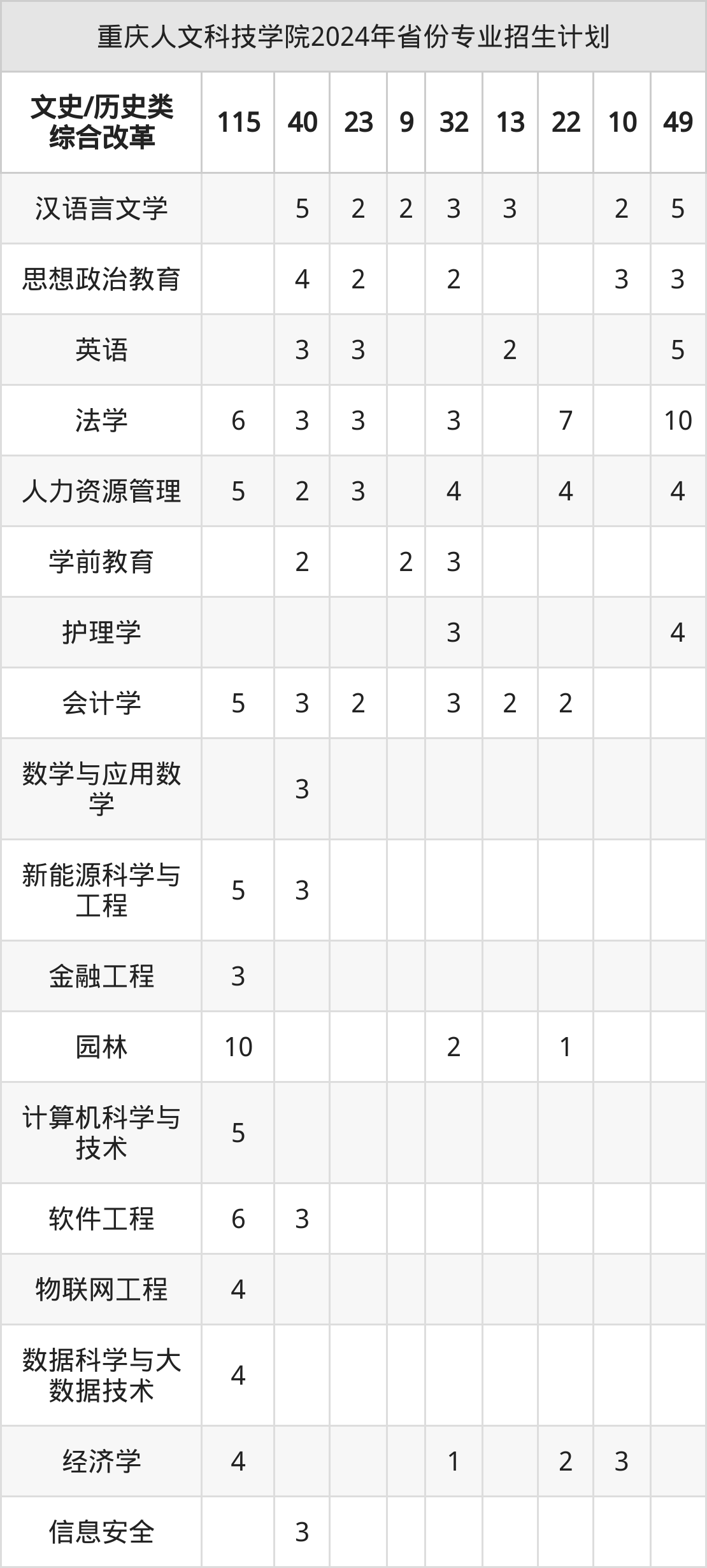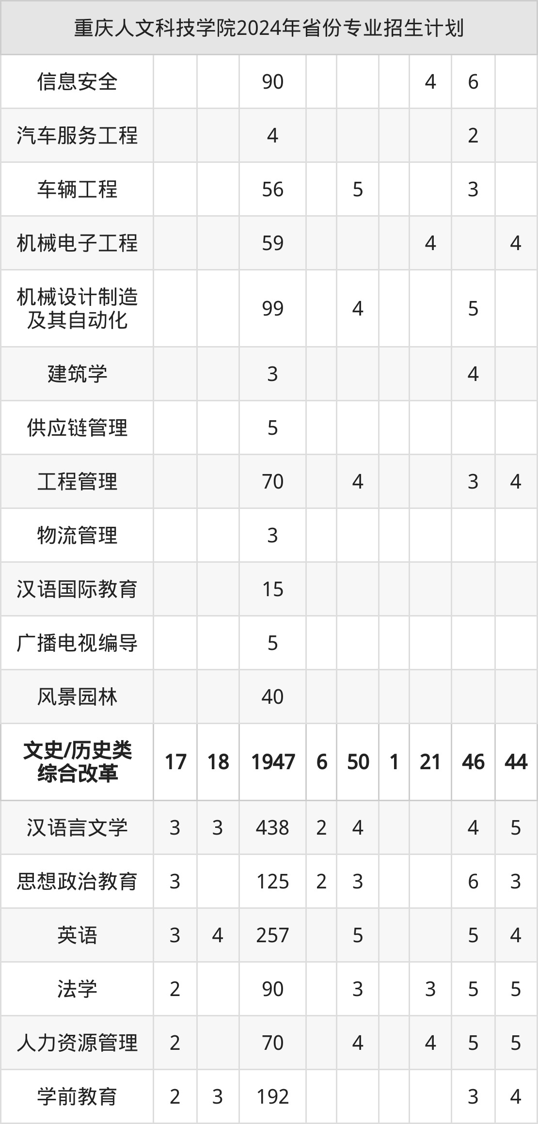 2025年重庆人文科技学院本科招生计划待公布,下面附上2024年数据,暂供参考: