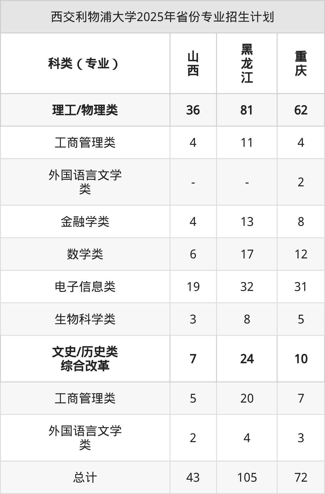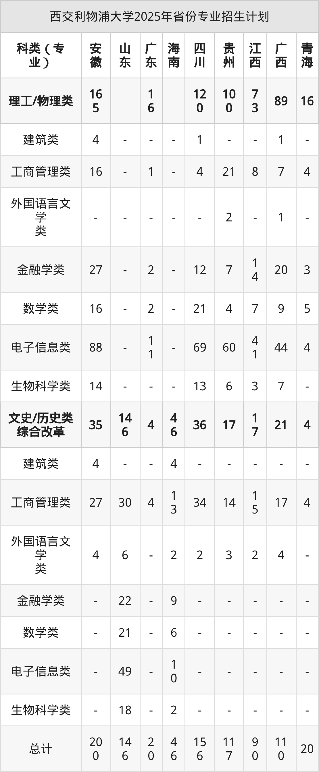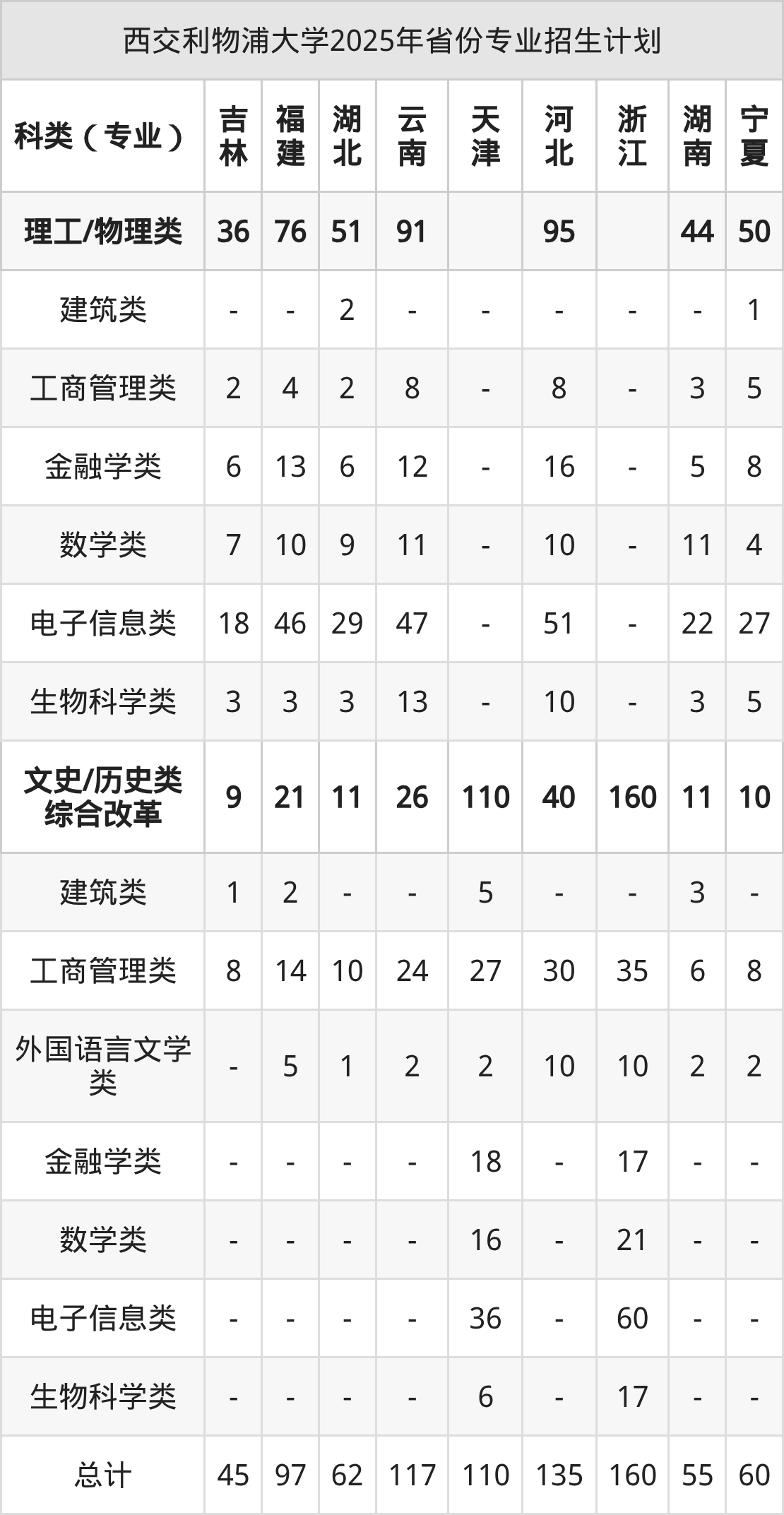 2025年西交利物浦大学计划招收本科生4153人,其中土木类专业3人,建筑类专业115人,工商管理类专业962人,金融学类专业511人,电子信息类专业1670人等。