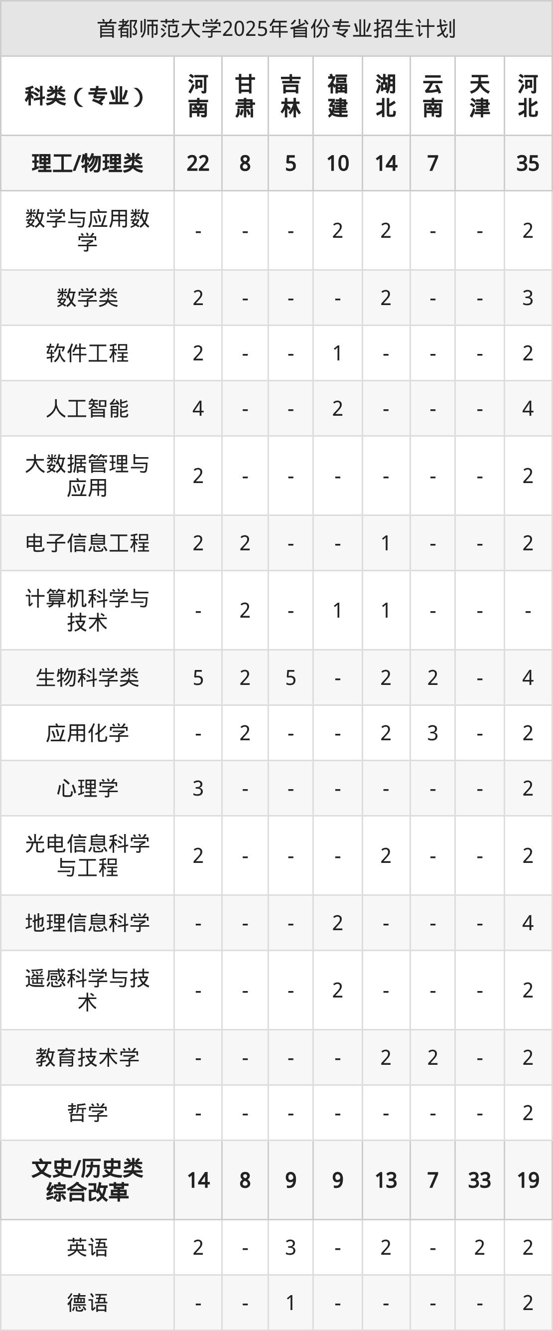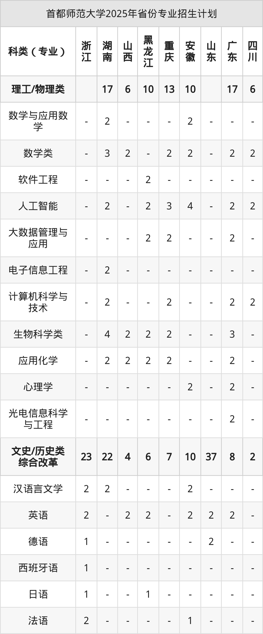 | 首都师范大学2025年本科最低分汇总 | ||||