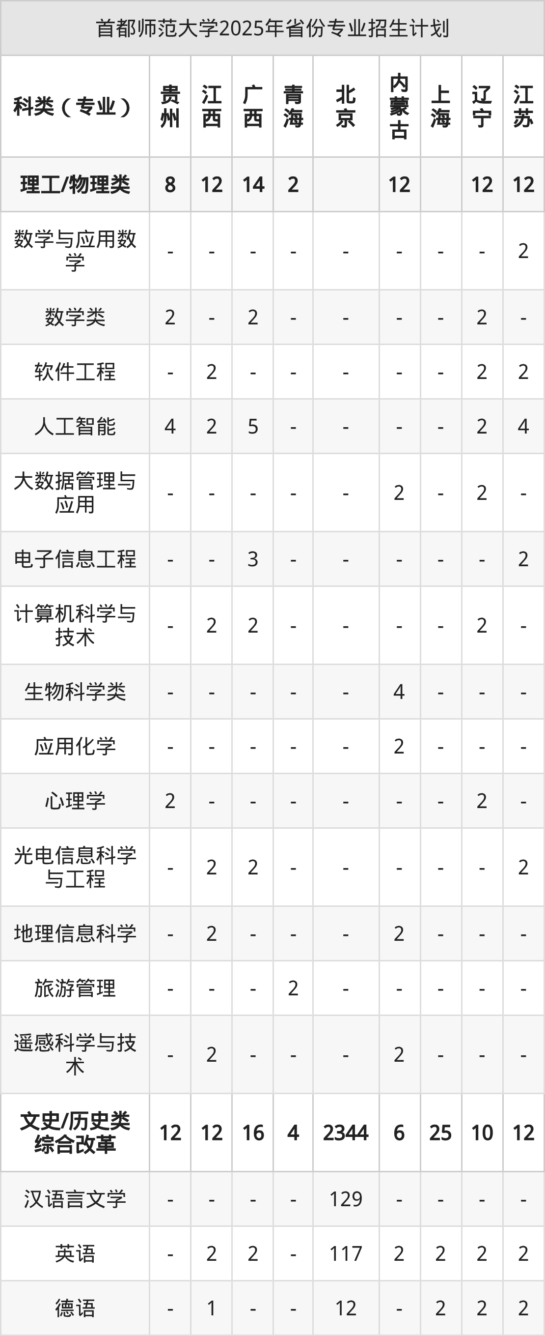 2026年首都师范大学本科招生计划待公布,下面附上2025年数据,暂供参考:
