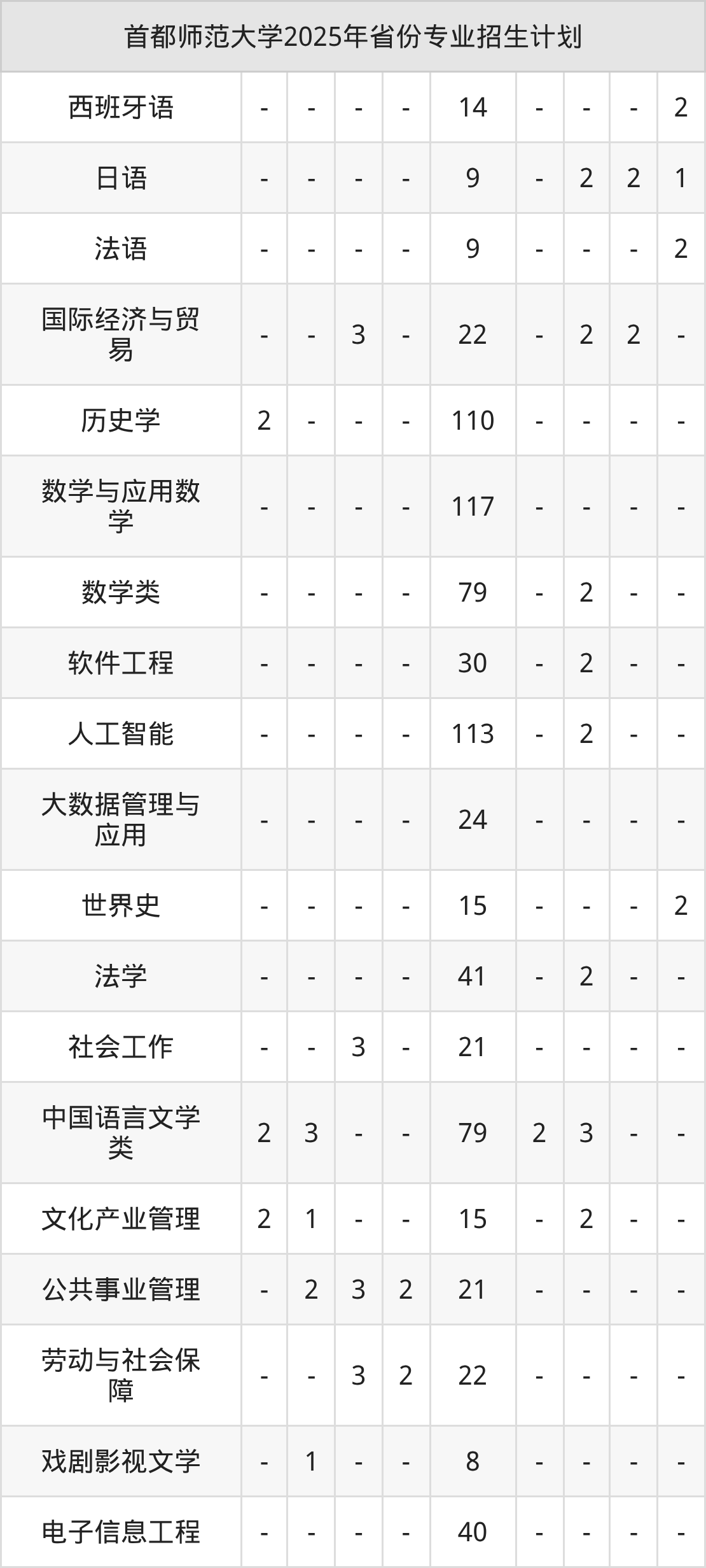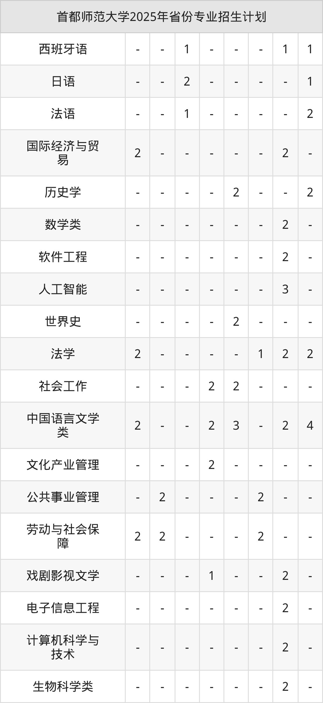 | 首都师范大学本科招生专业 | |