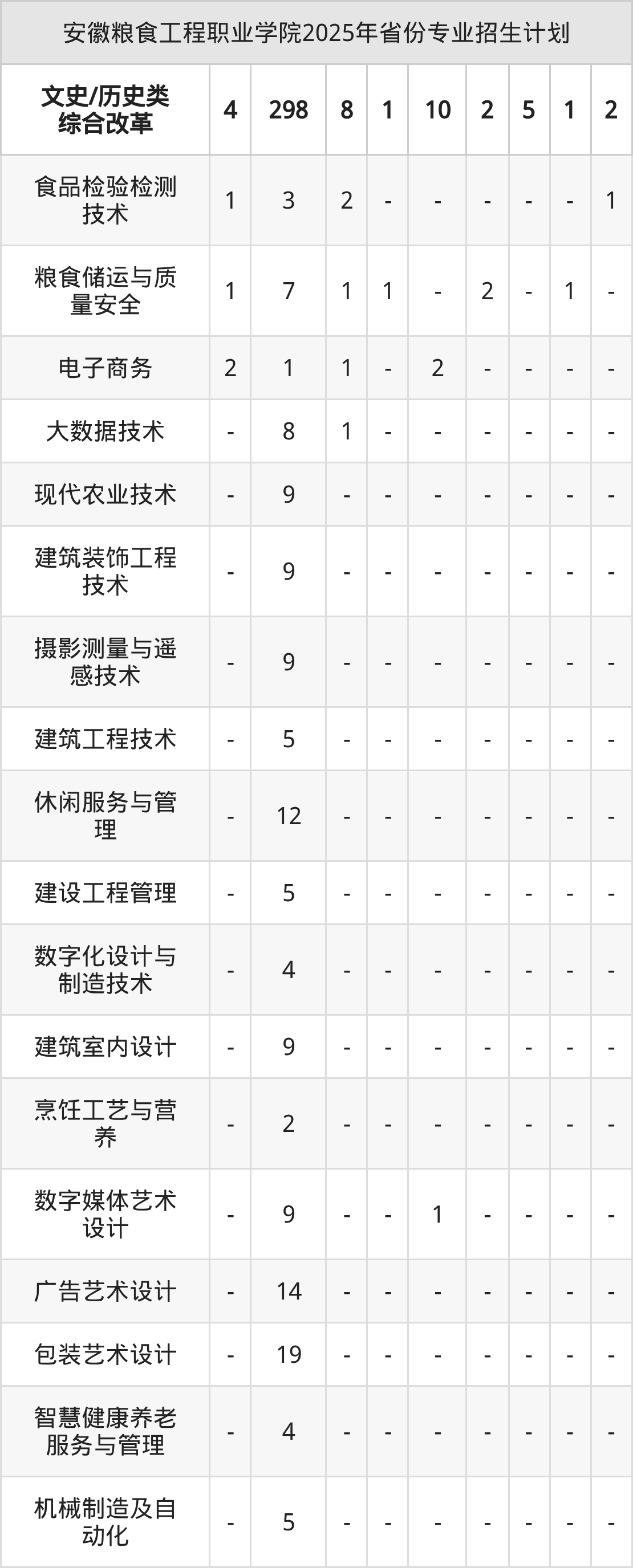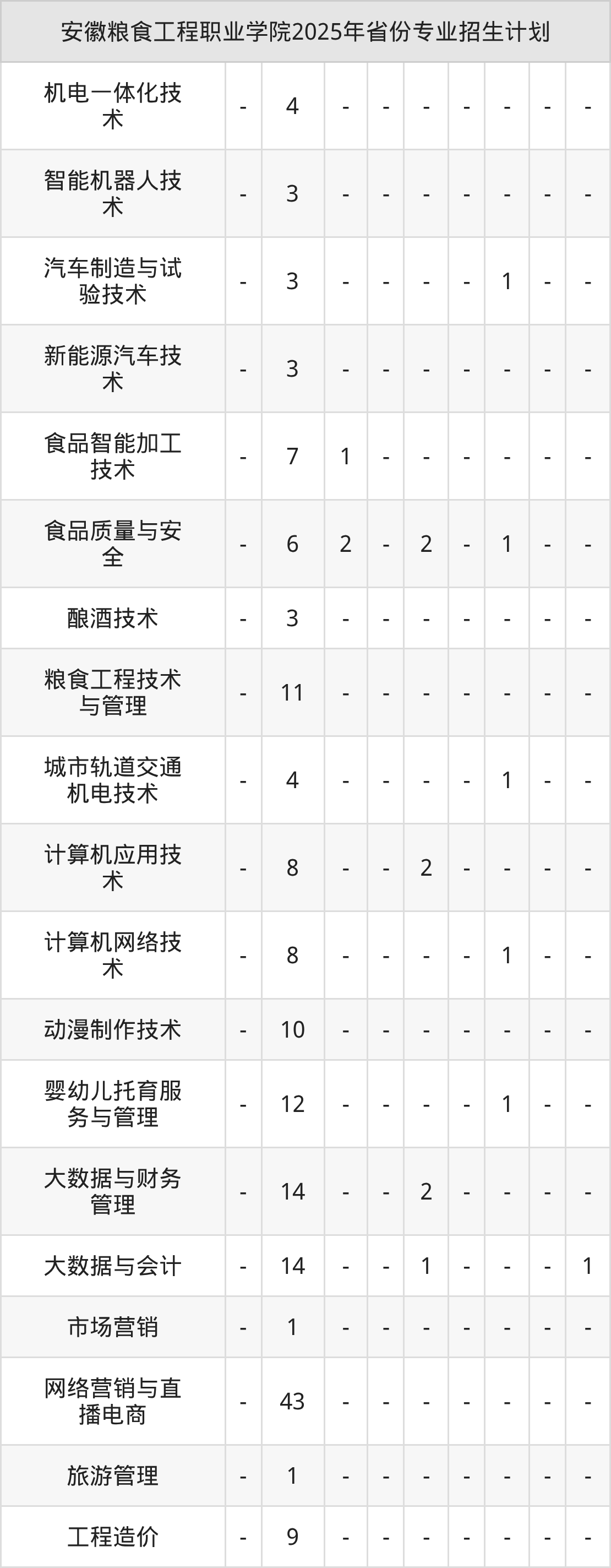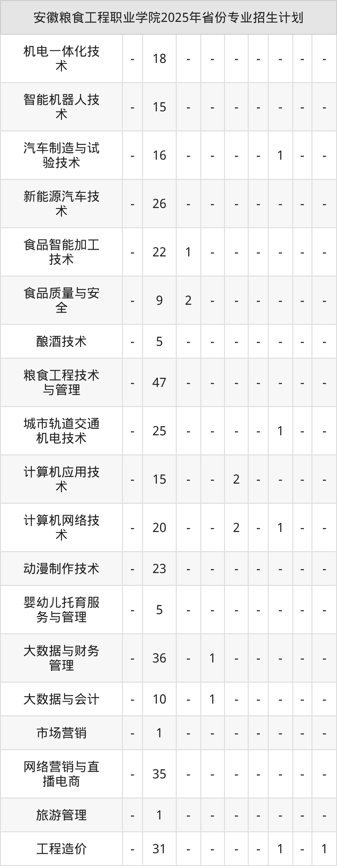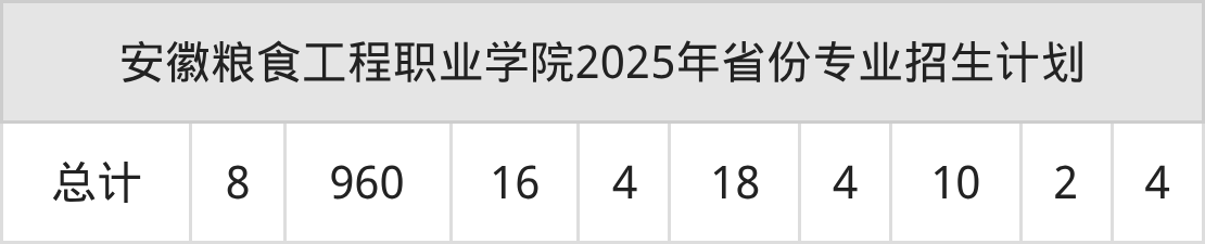 2026年安徽粮食工程职业学院专科招生计划待公布,下面附上2025年数据,暂供参考: