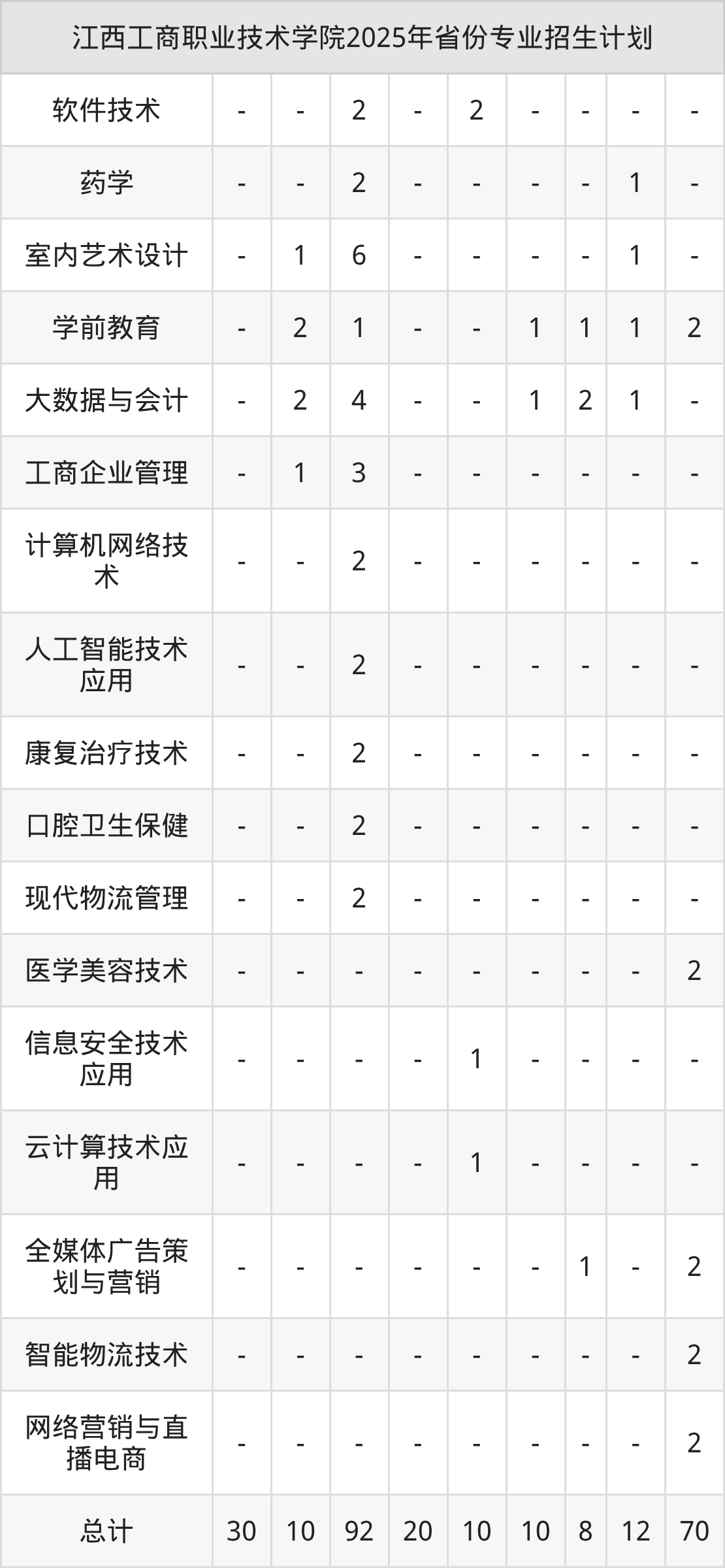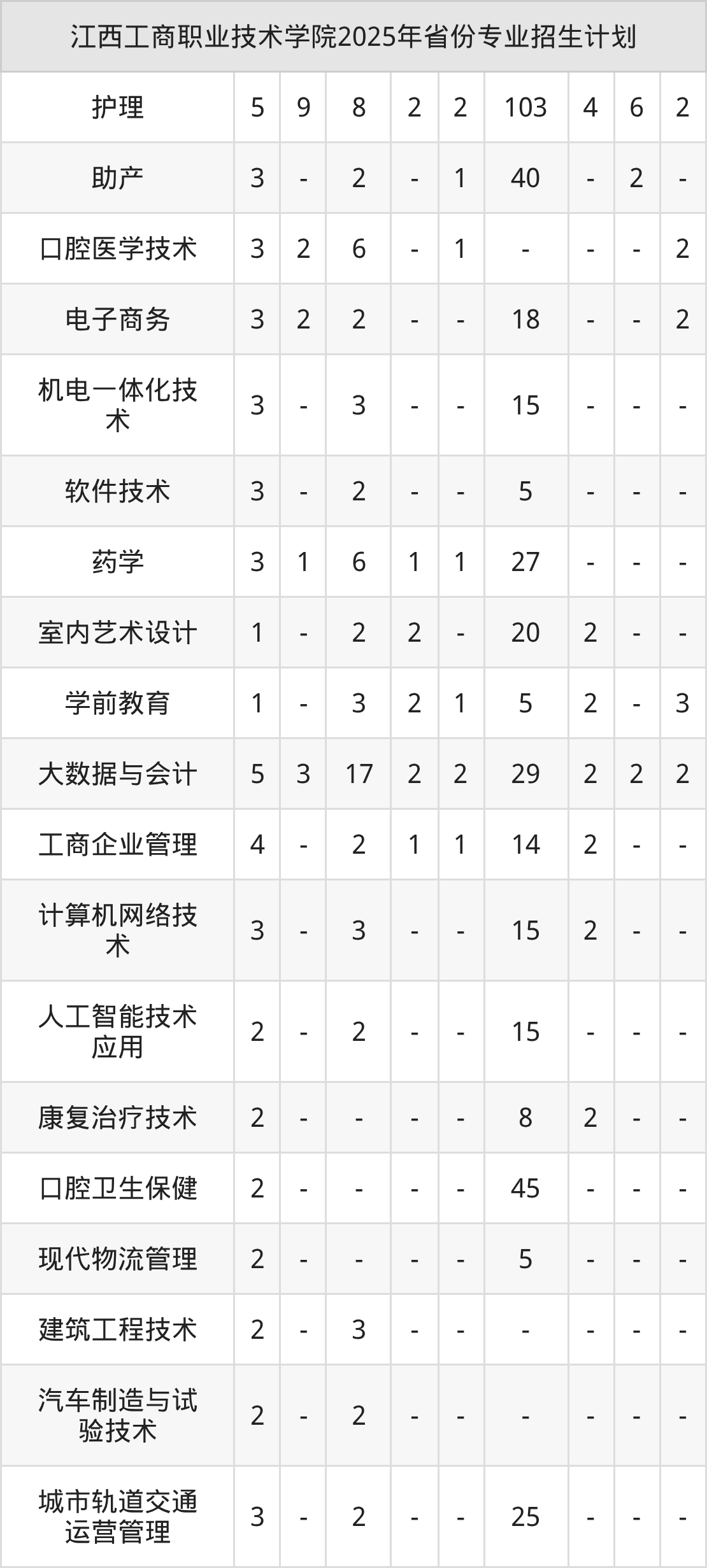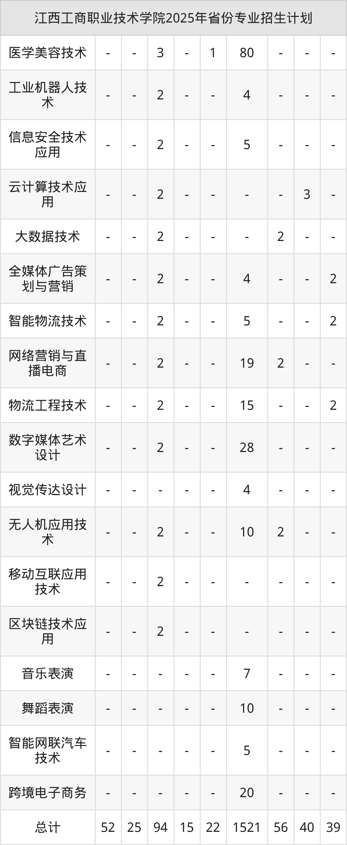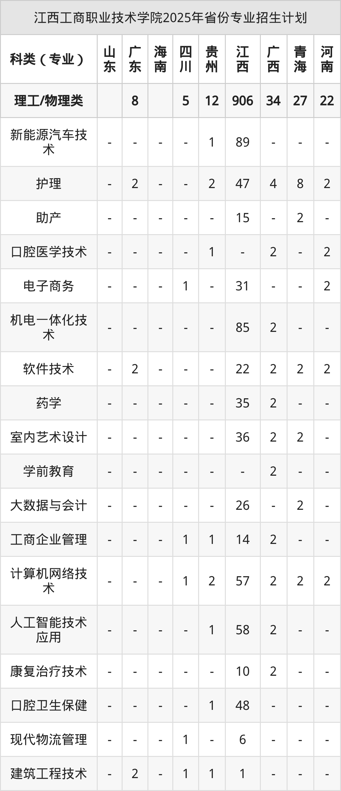 2026年江西工商职业技术学院专科招生计划待公布,下面附上2025年数据,暂供参考: