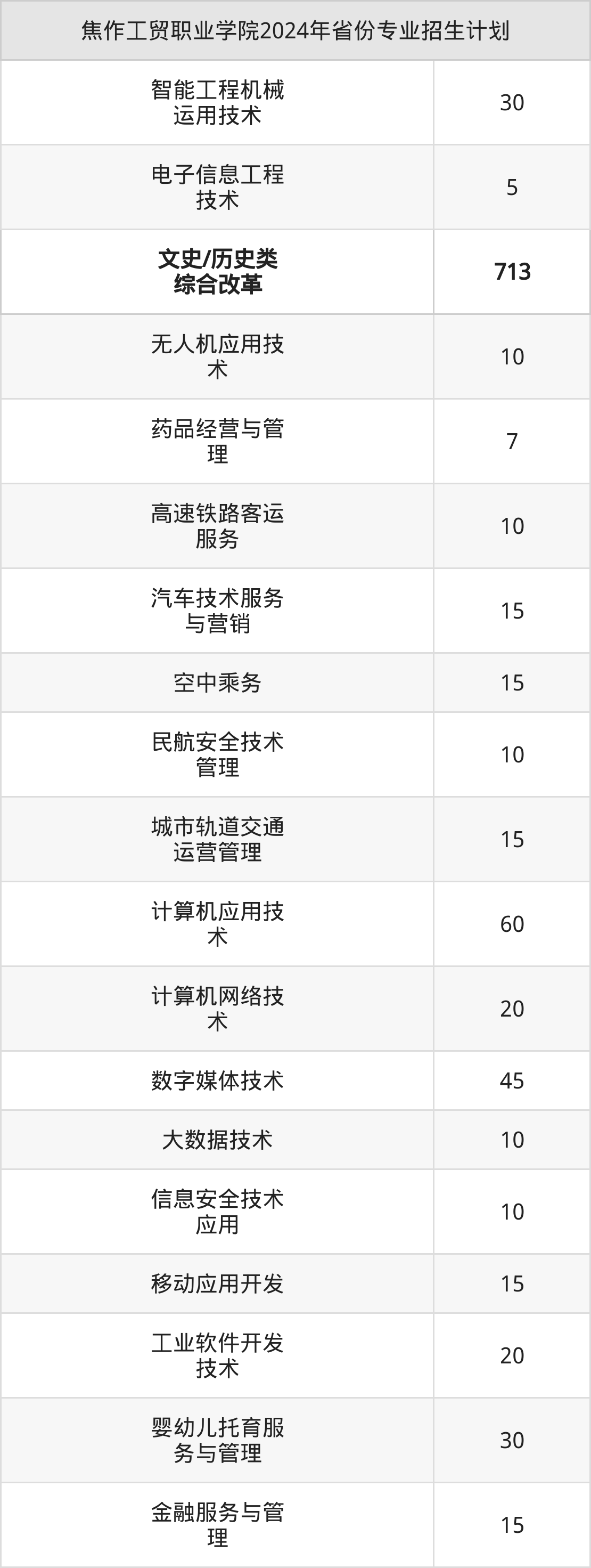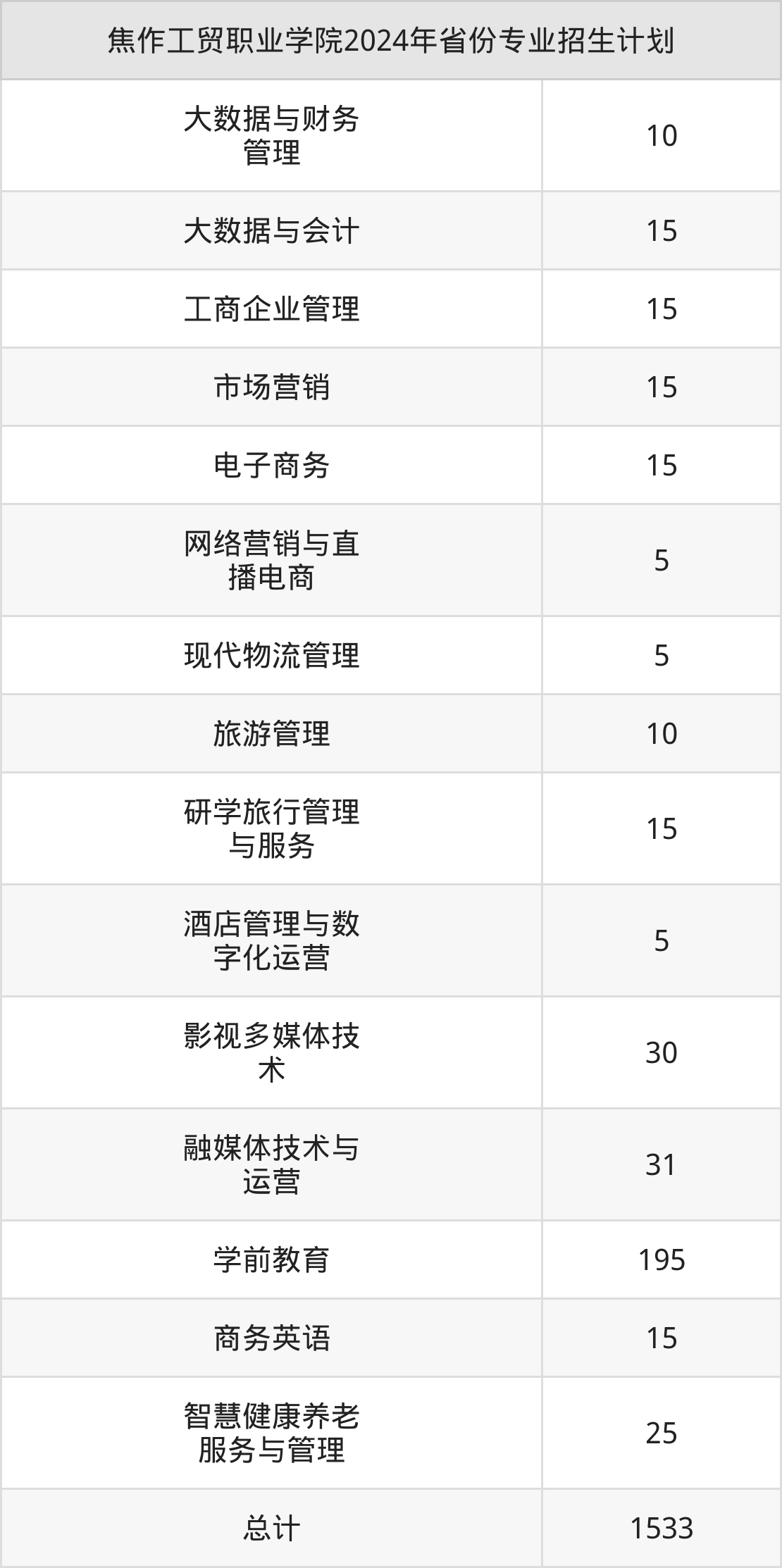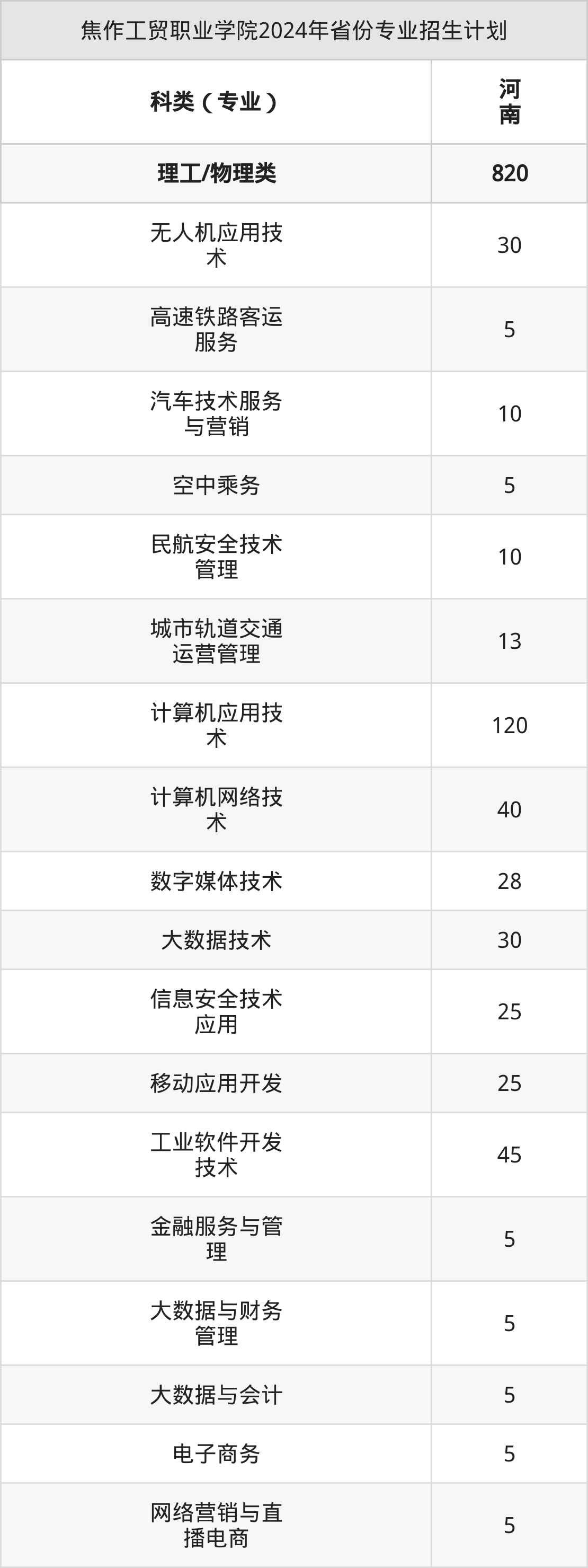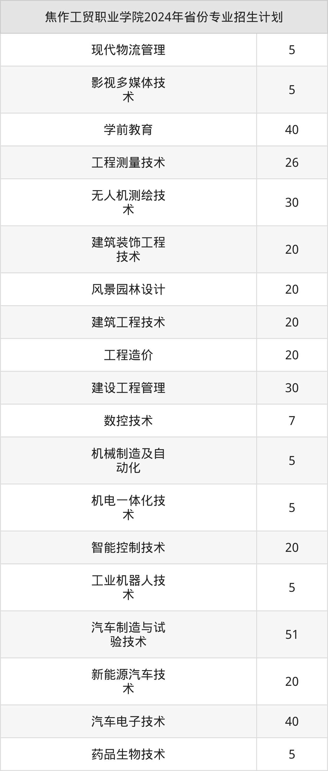 2025年焦作工贸职业学院专科招生计划待公布,下面附上2024年数据,暂供参考: