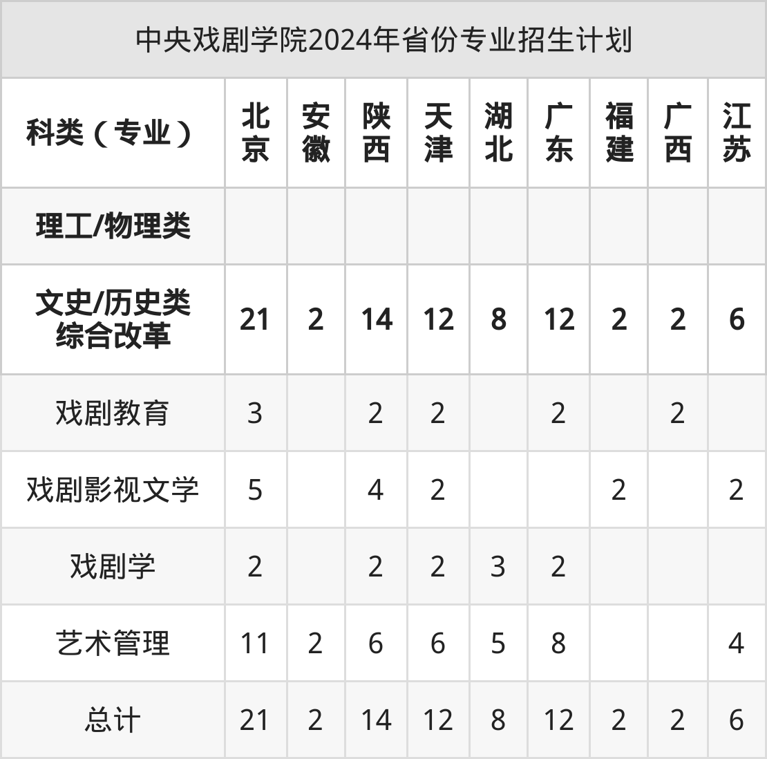 2025年中央戏剧学院本科招生计划待公布,下面附上2024年数据,暂供参考: