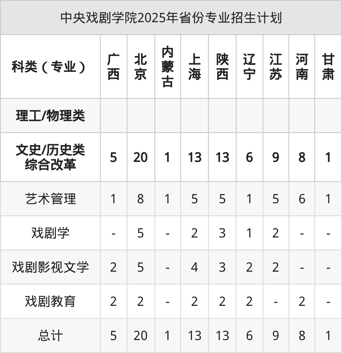 2026年中央戏剧学院本科招生计划待公布,下面附上2025年数据,暂供参考: