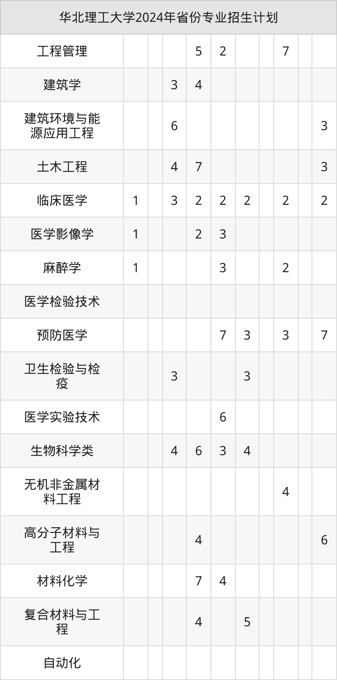 2024年华北理工大学计划招收本科生8238人,其中土木工程专业147人,预防医学专业190人,应用化学专业89人,工业设计专业50人,康复治疗学专业136人等。