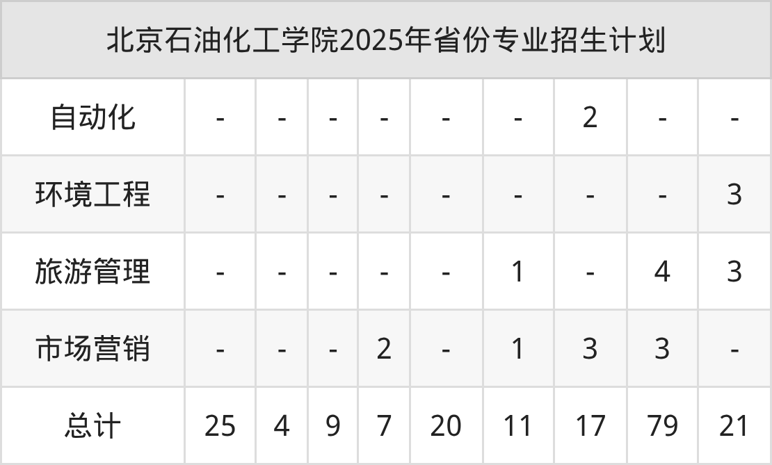 2026年北京石油化工学院本科招生计划待公布,下面附上2025年数据,暂供参考: