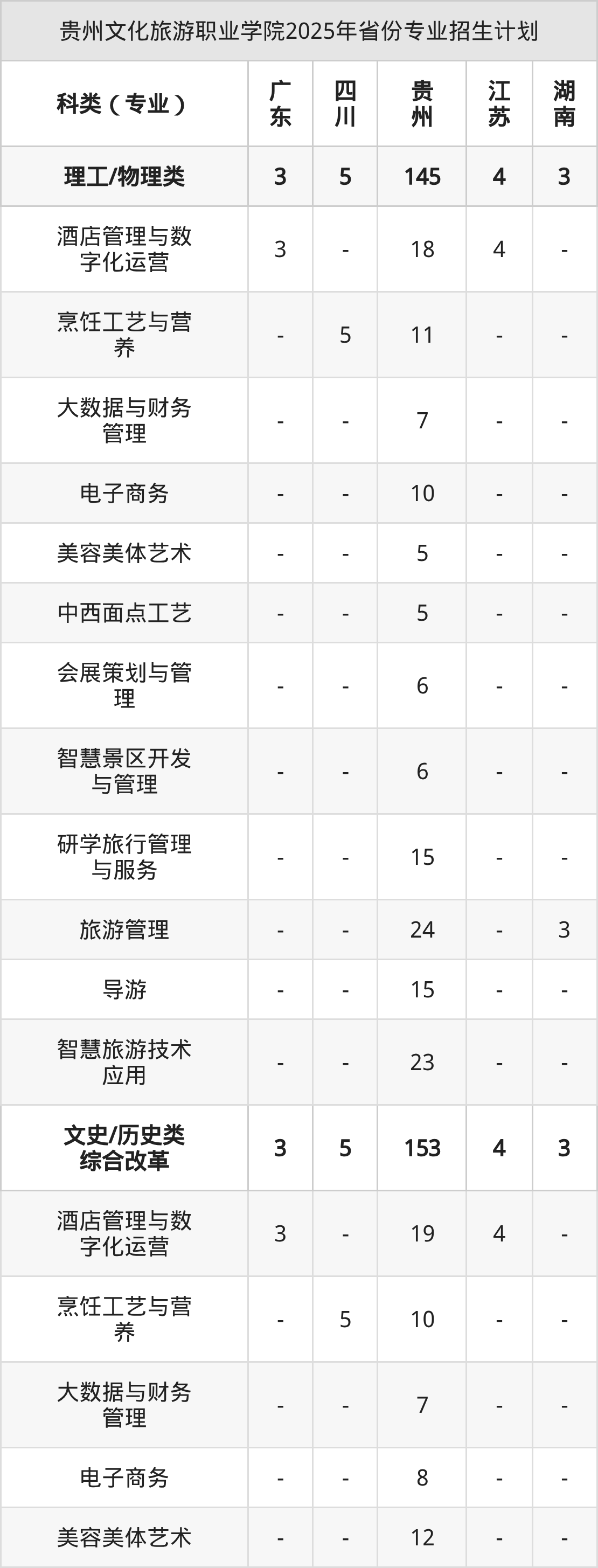 2026年贵州文化旅游职业学院专科招生计划待公布,下面附上2025年数据,暂供参考: