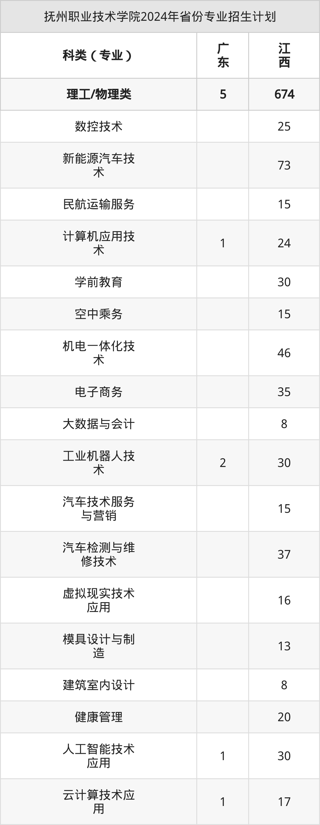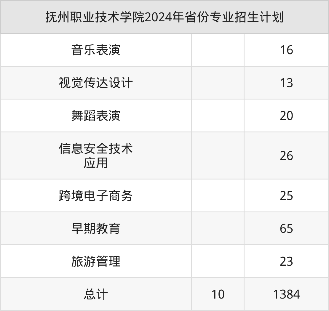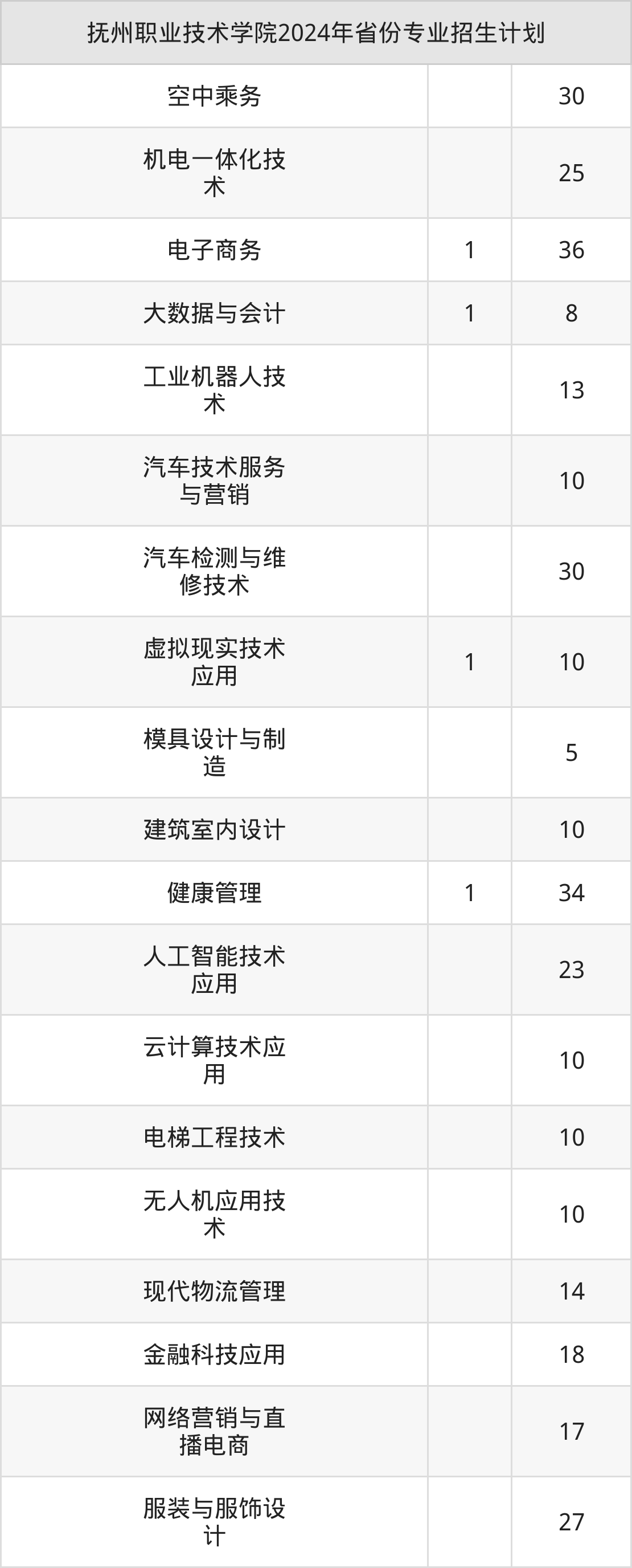 2025年抚州职业技术学院专科招生计划待公布,下面附上2024年数据,暂供参考: