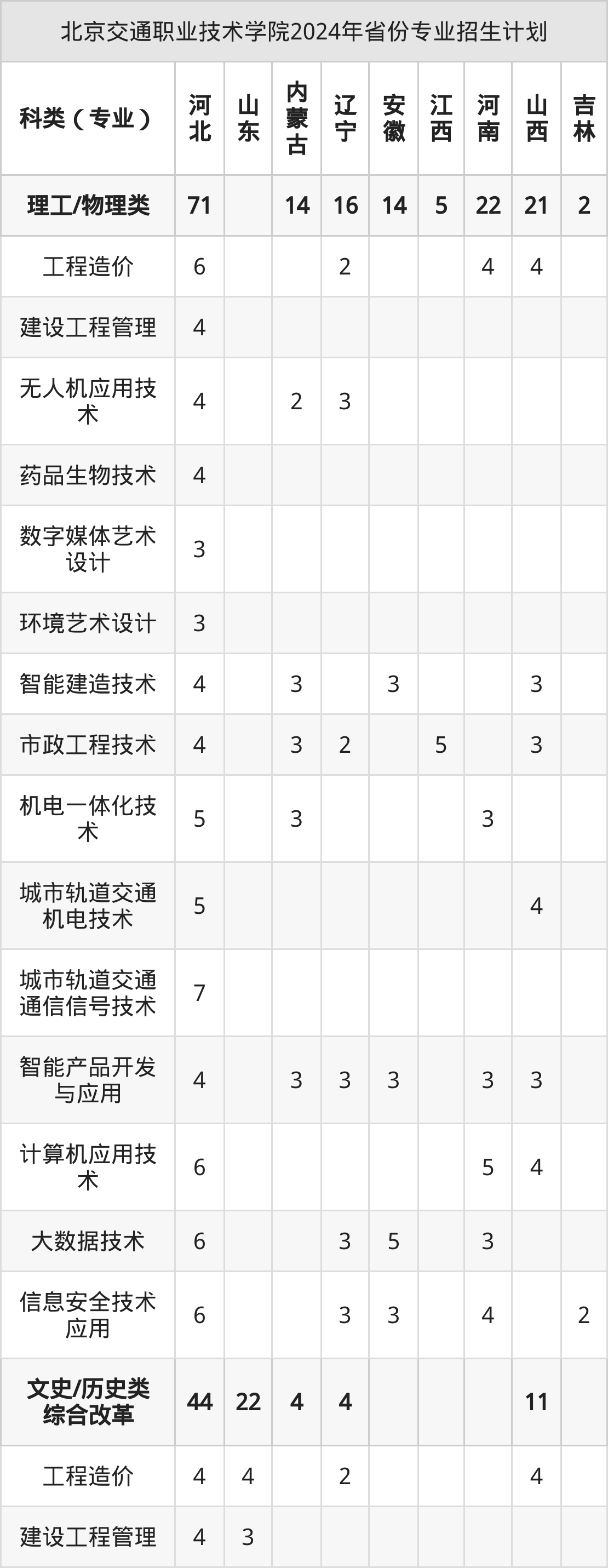 2025年北京交通职业技术学院专科招生计划待公布,下面附上2024年数据,暂供参考: