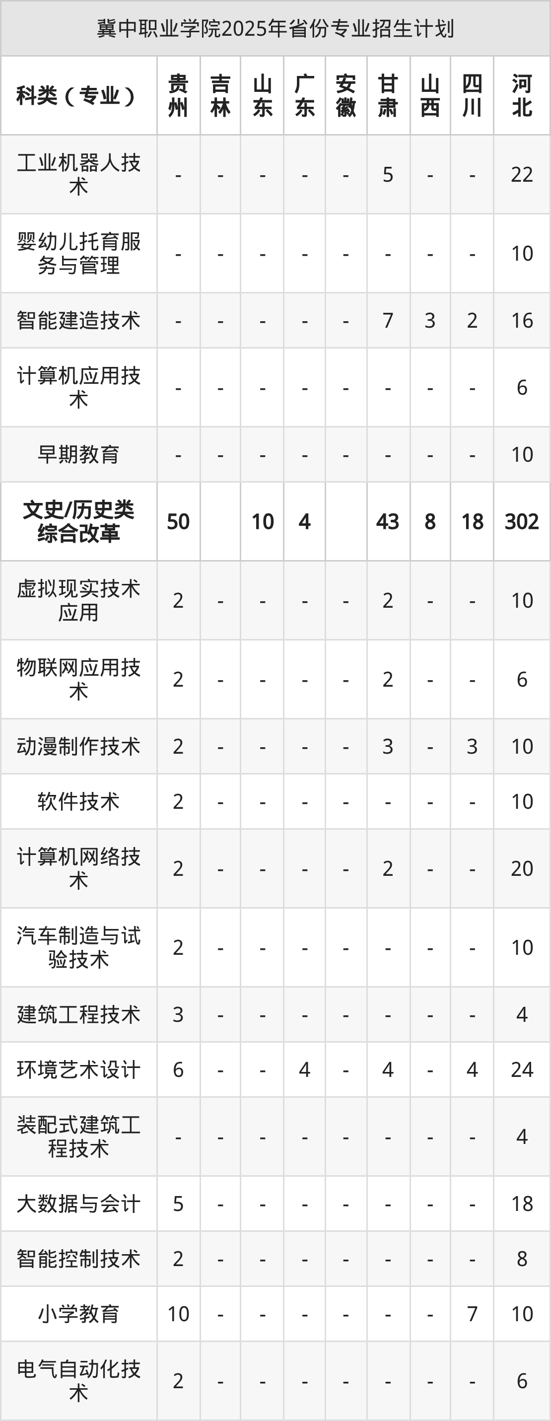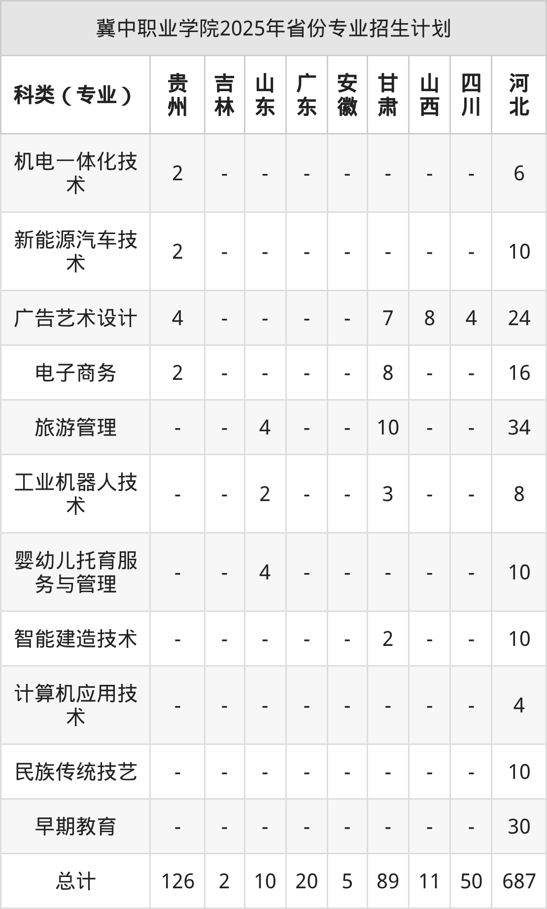 而各省份的招生计划数为河北687人,广东20人,四川50人,贵州126人,吉林2人等。
