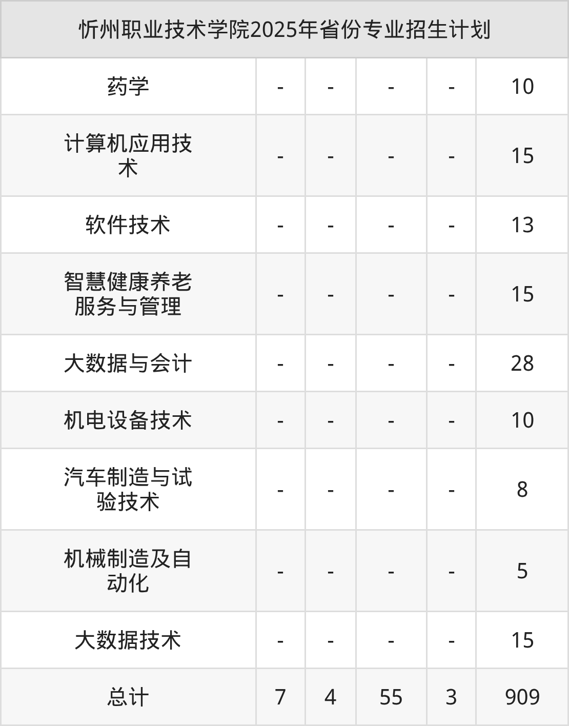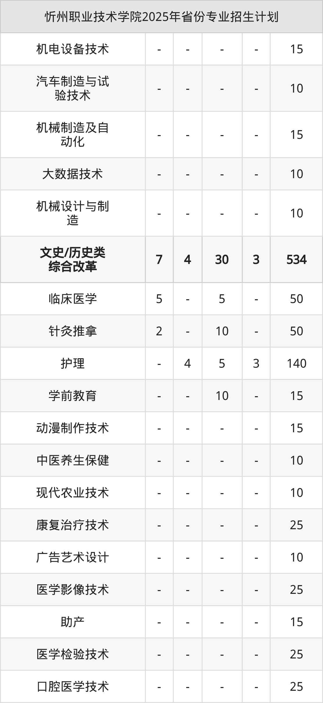 2026年忻州职业技术学院专科招生计划待公布,下面附上2025年数据,暂供参考: