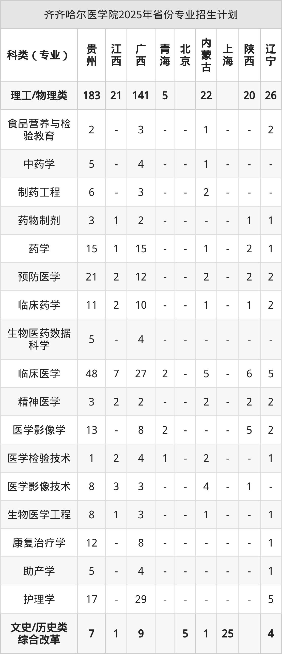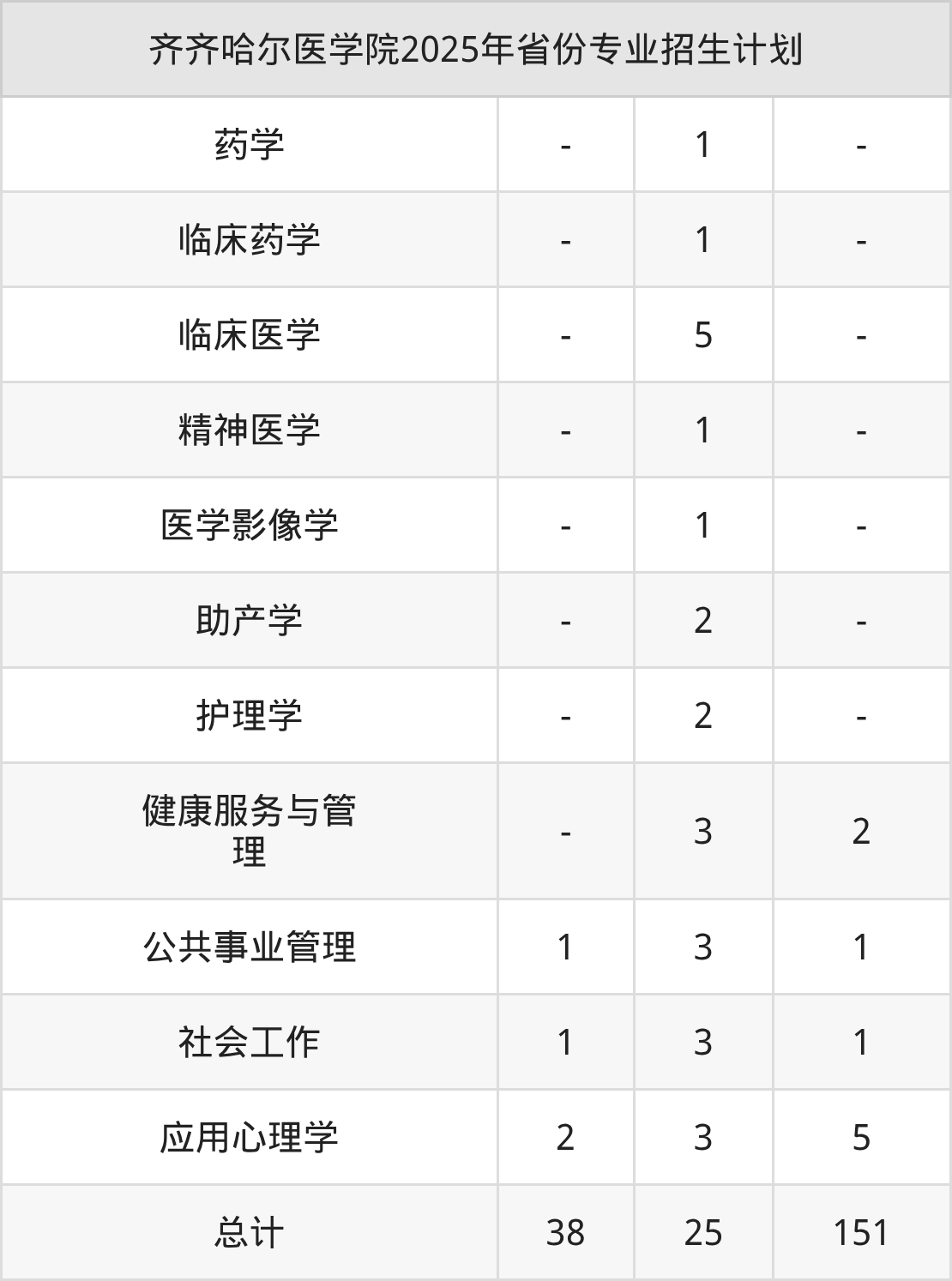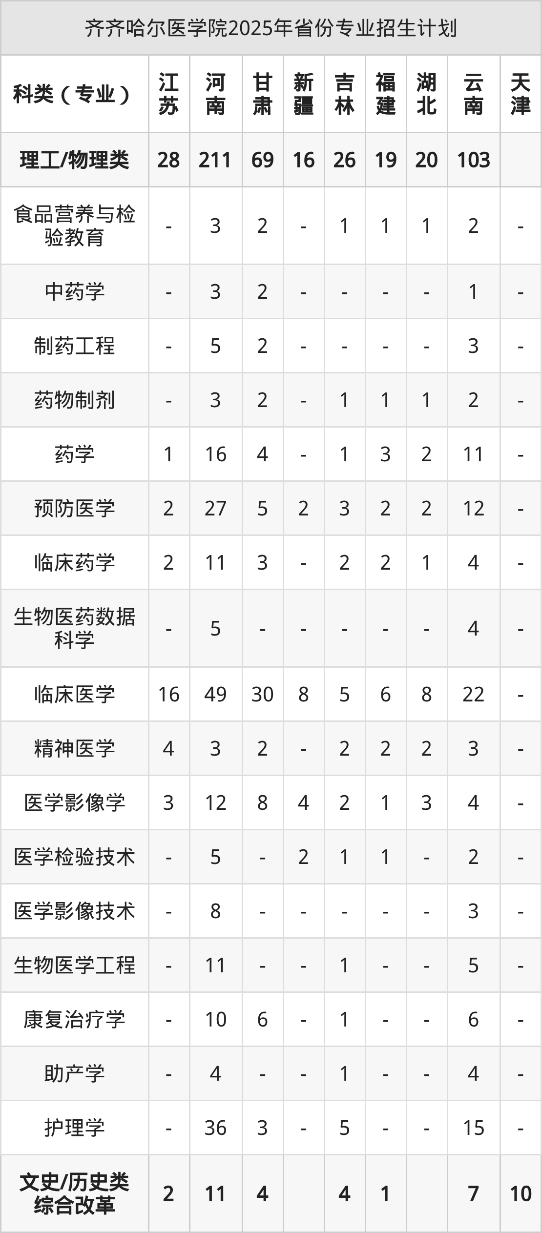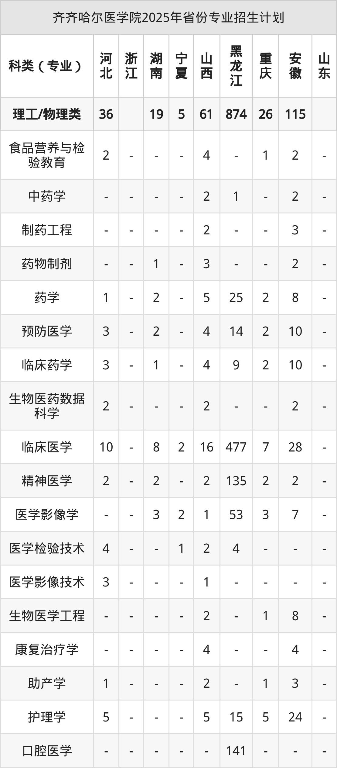 2026年齐齐哈尔医学院本科招生计划待公布,下面附上2025年数据,暂供参考: