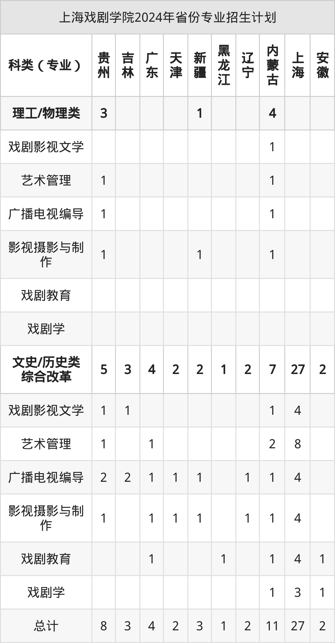 2025年上海戏剧学院本科招生计划待公布,下面附上2024年数据,暂供参考: