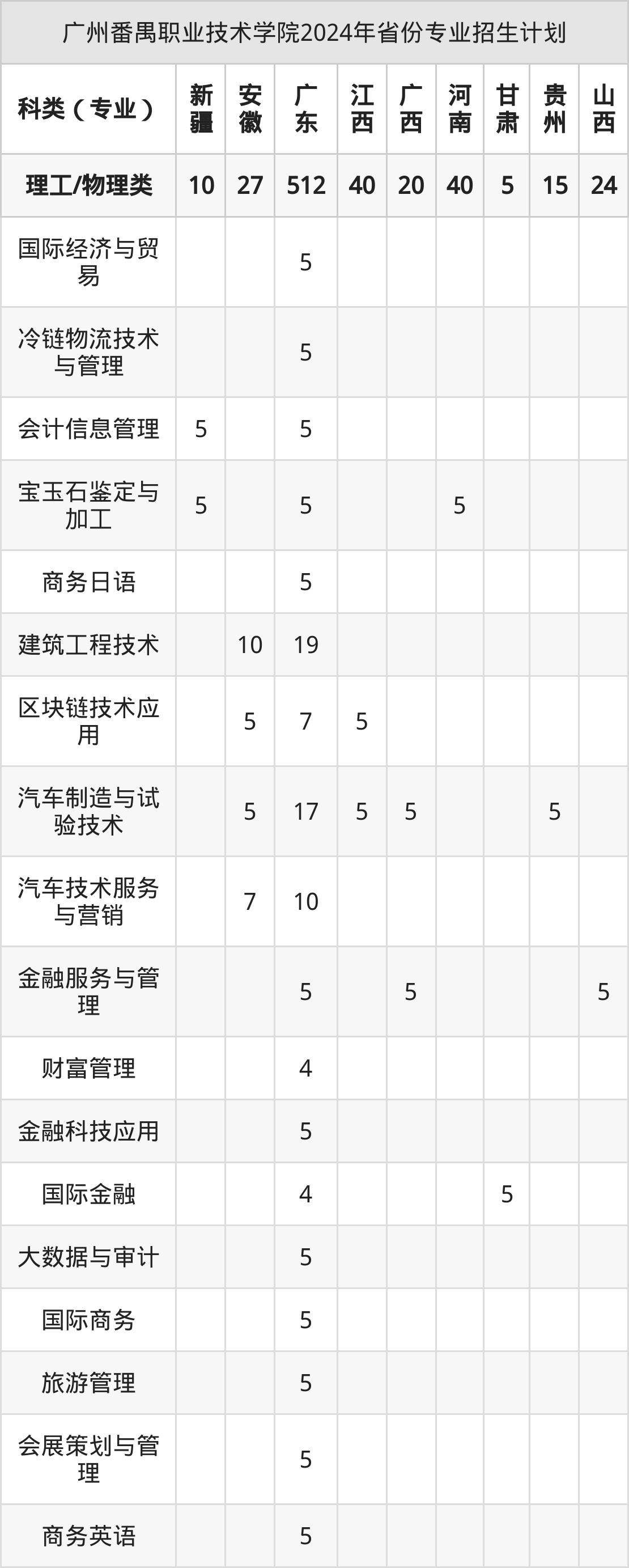 2025年广州番禺职业技术学院专科招生计划待公布,下面附上2024年数据,暂供参考: