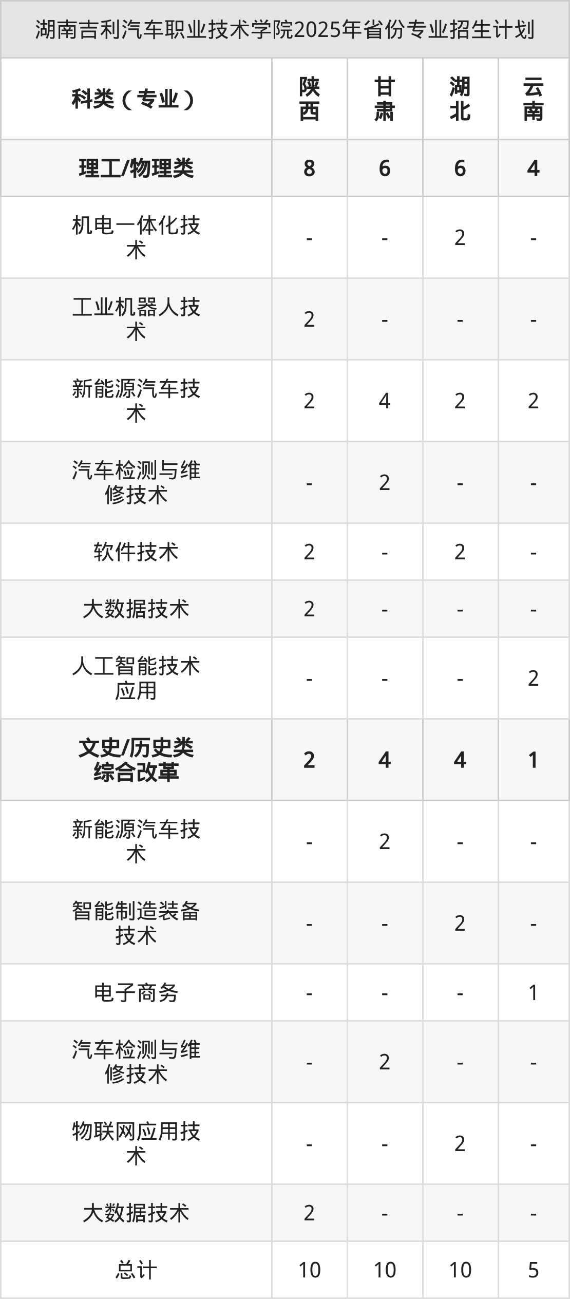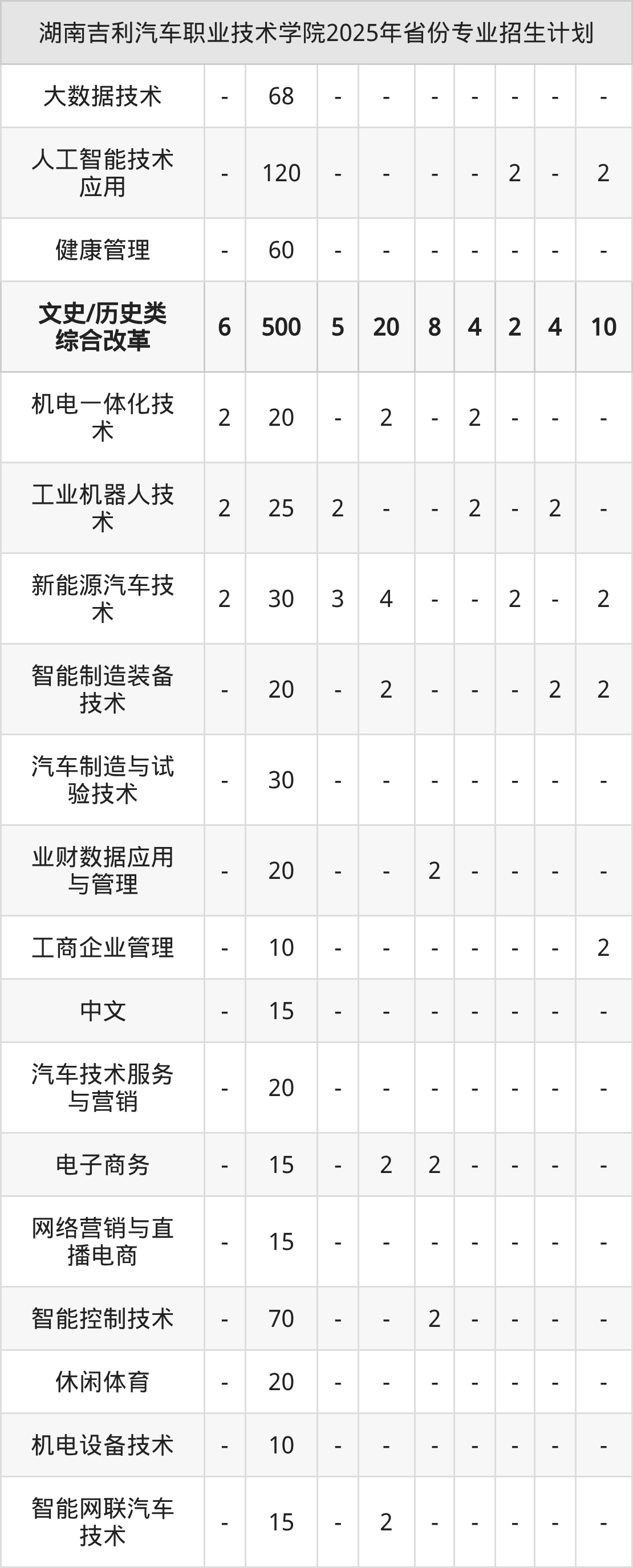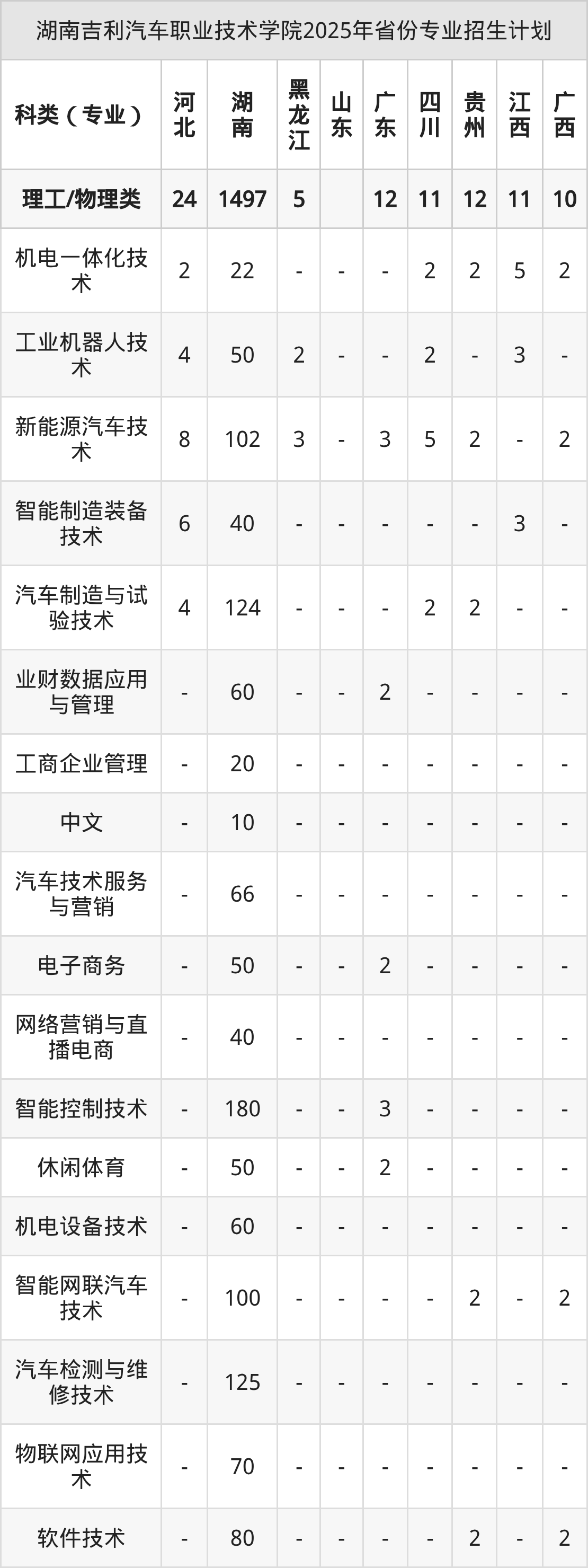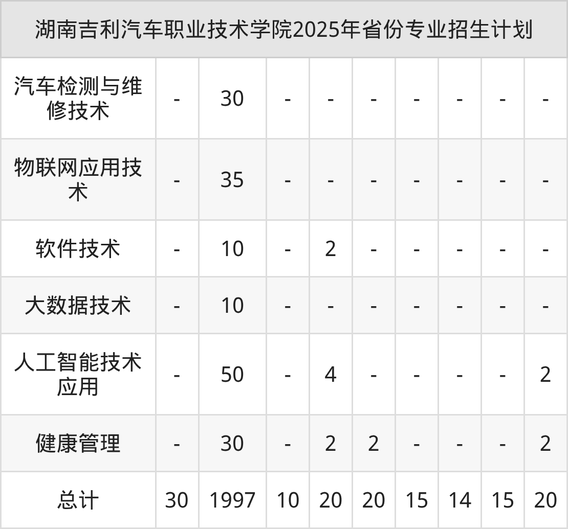 2026年湖南吉利汽车职业技术学院专科招生计划待公布,下面附上2025年数据,暂供参考: