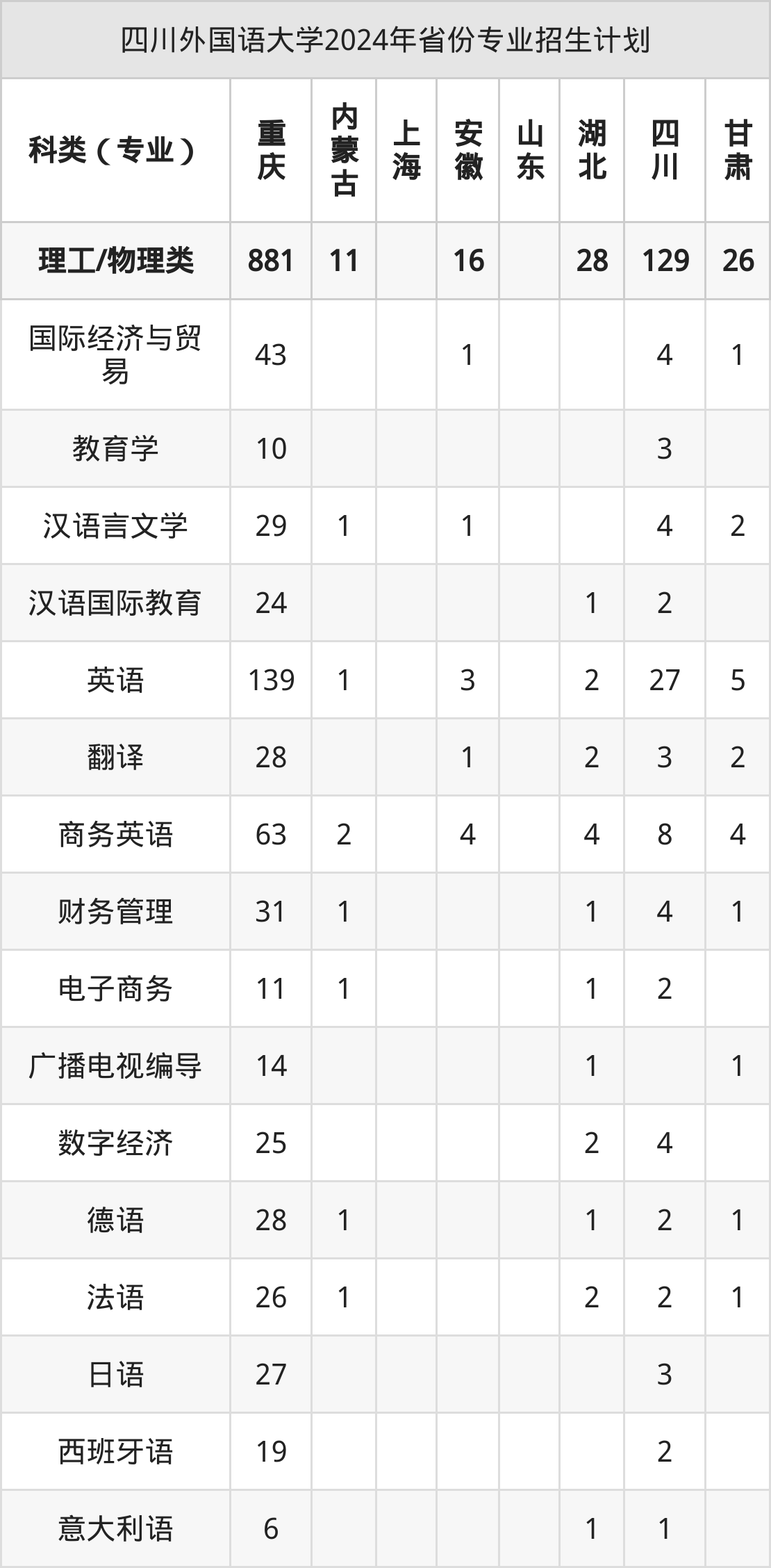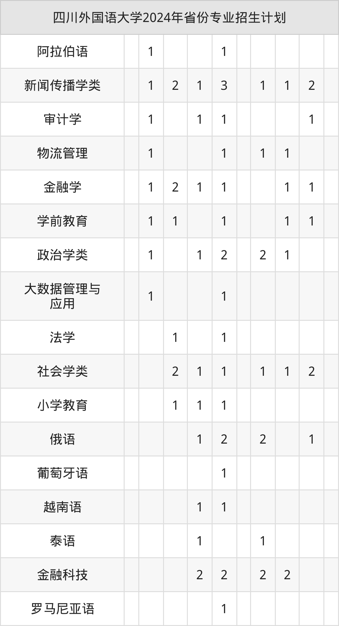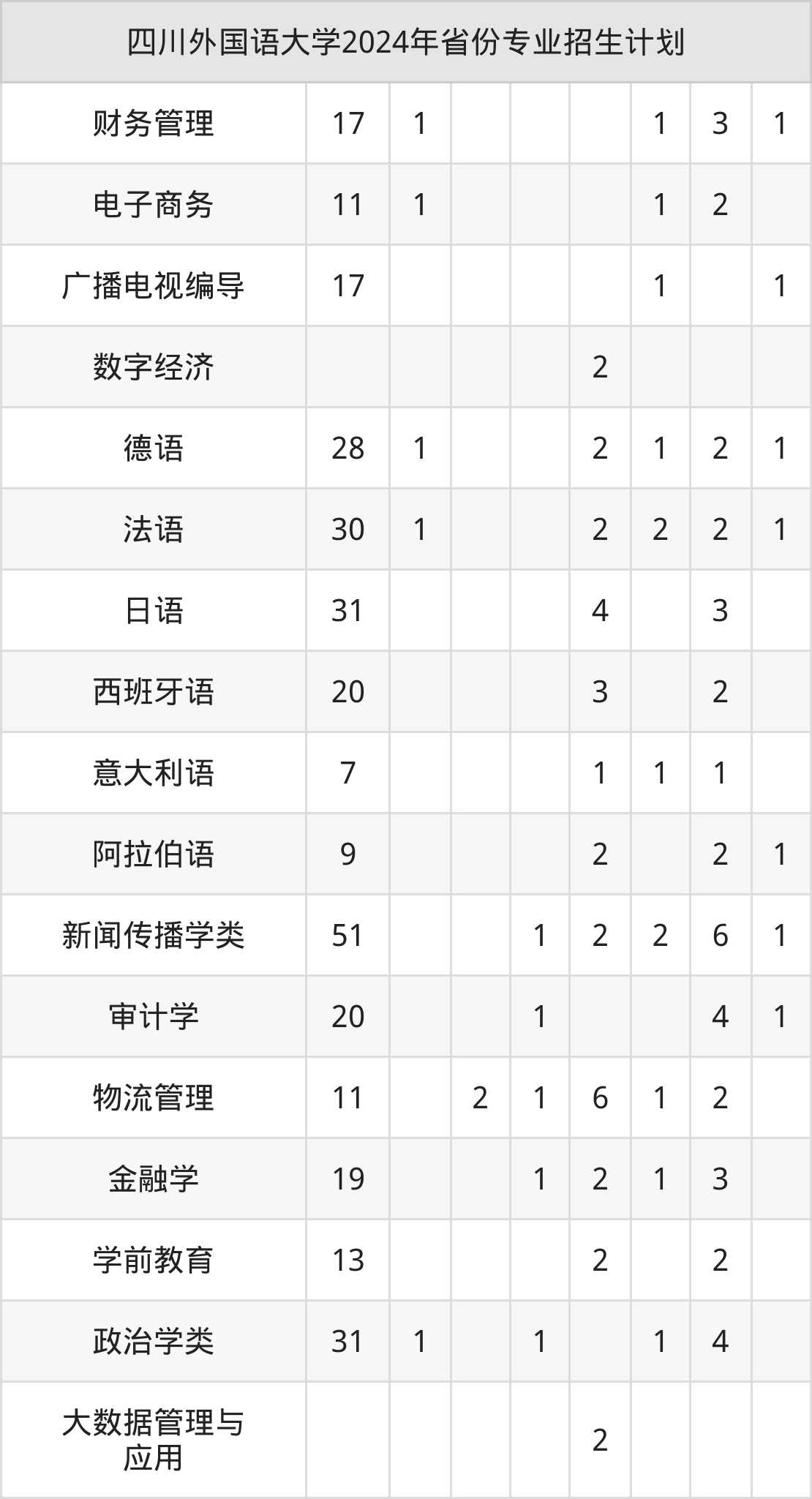 2025年四川外国语大学本科招生计划待公布,下面附上2024年数据,暂供参考: