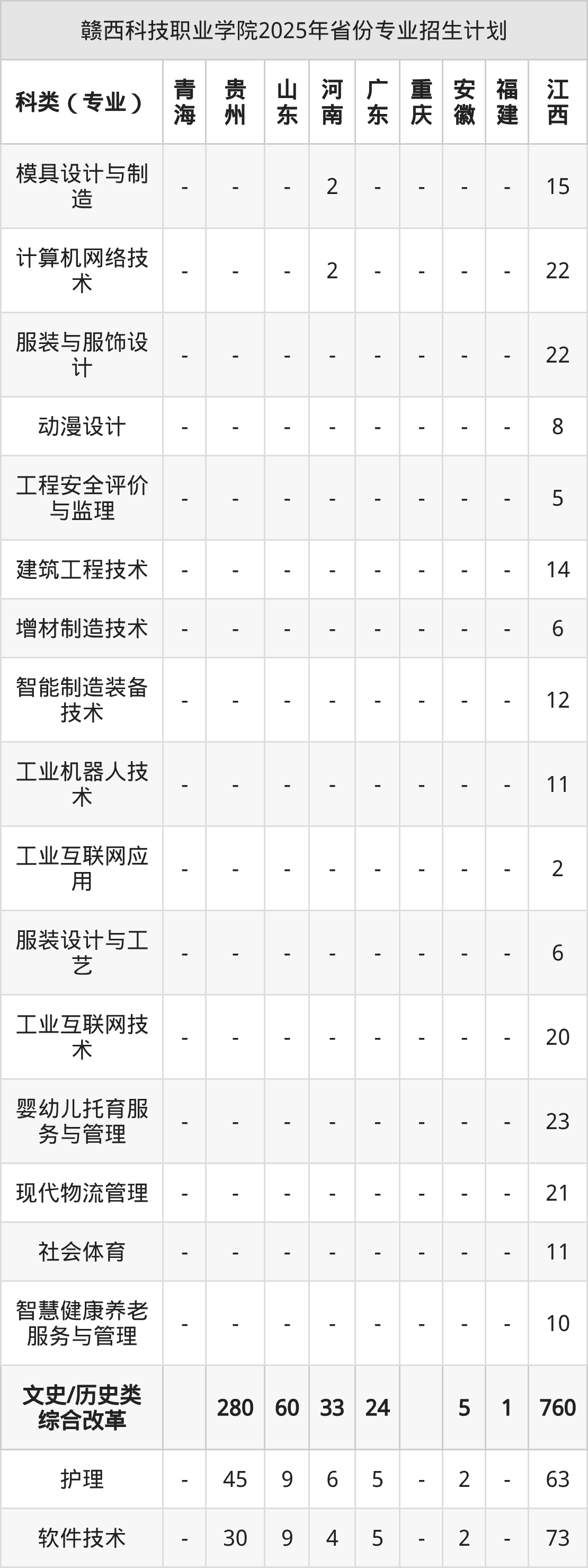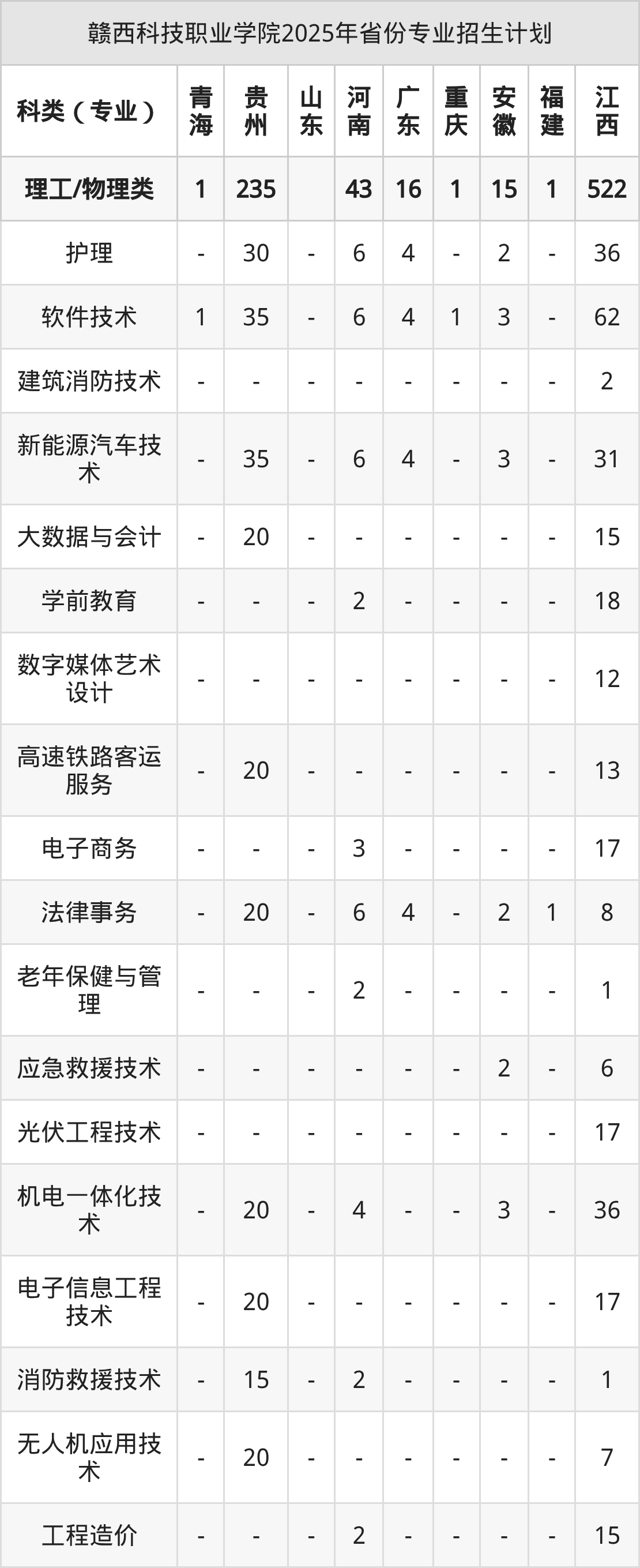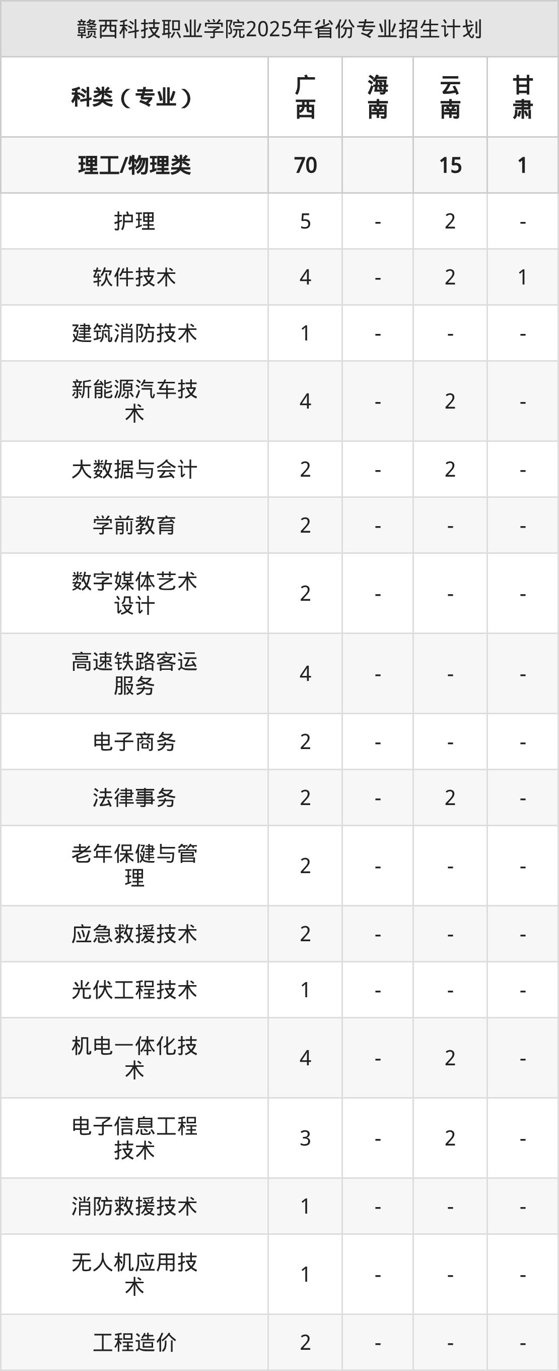 2026年赣西科技职业学院专科招生计划待公布,下面附上2025年数据,暂供参考: