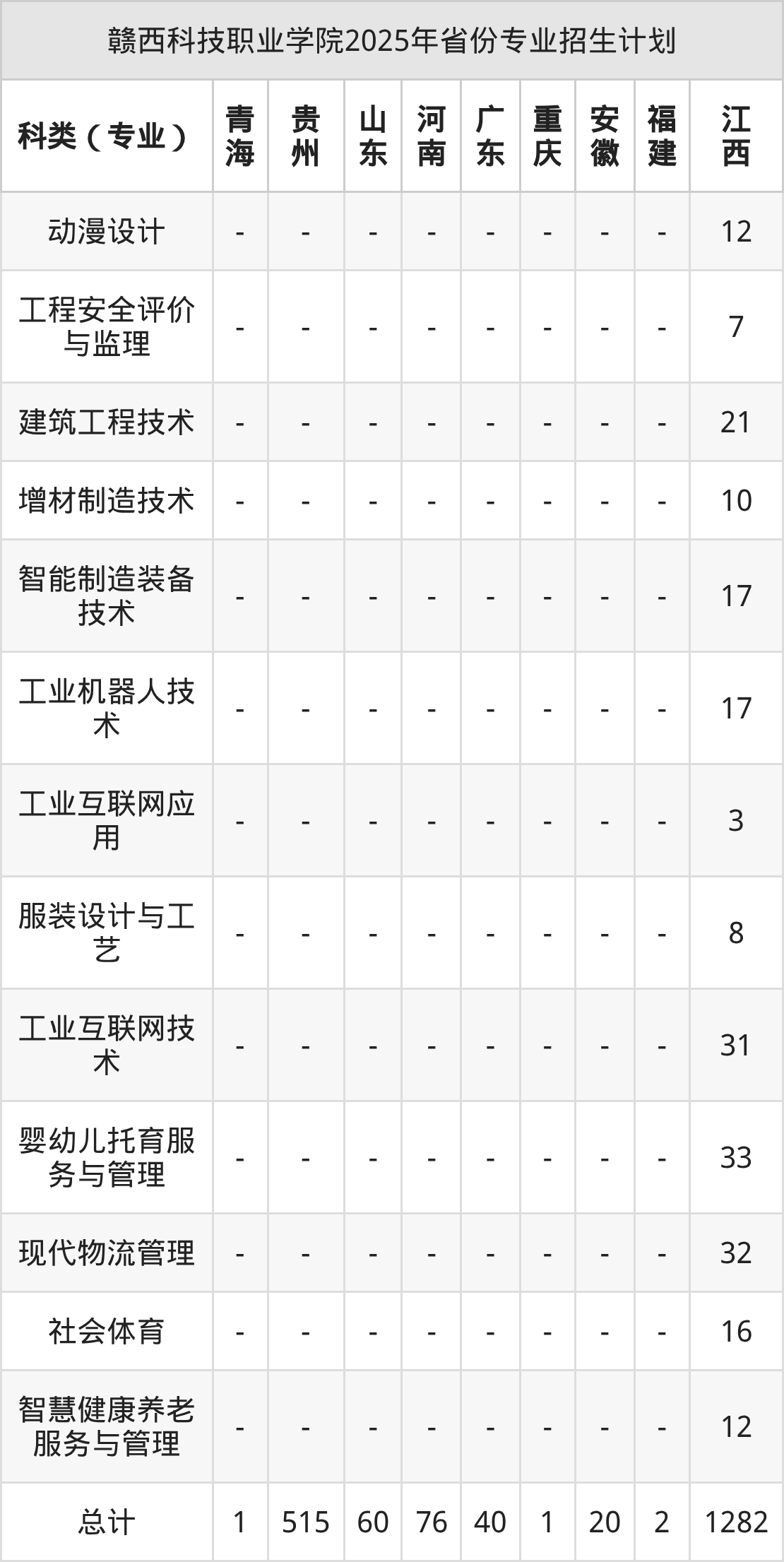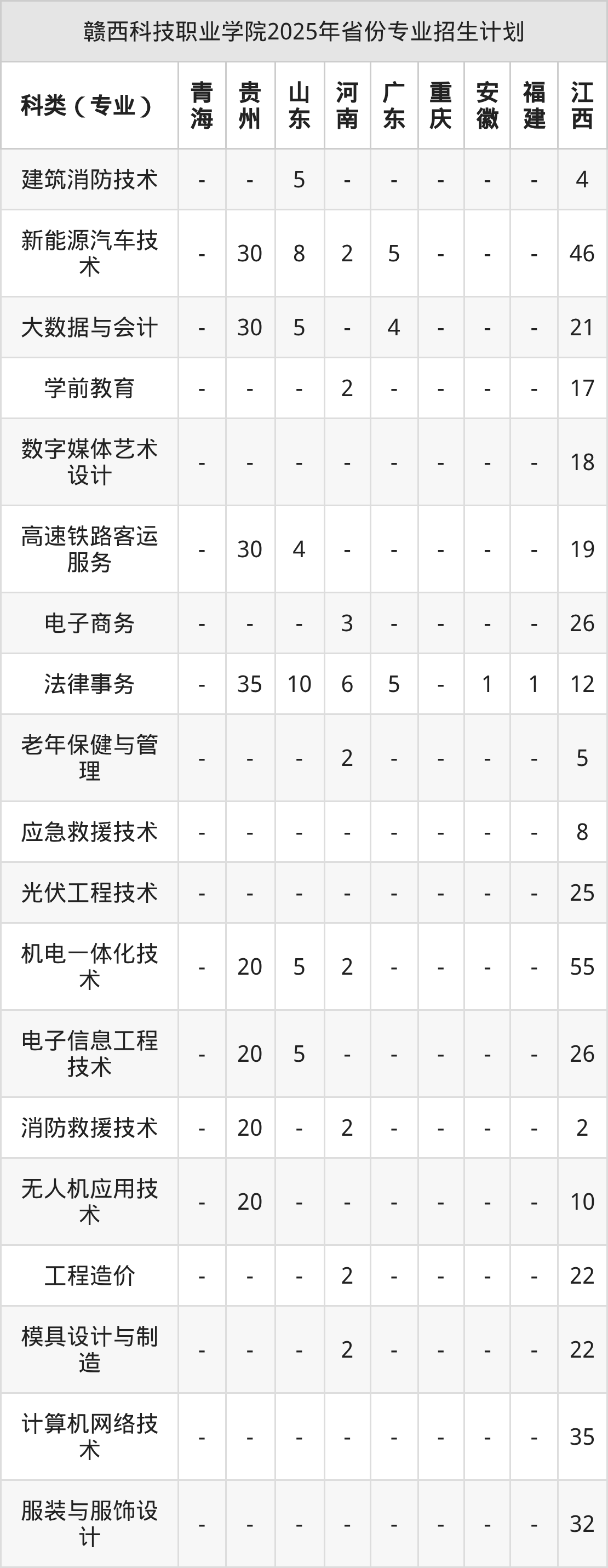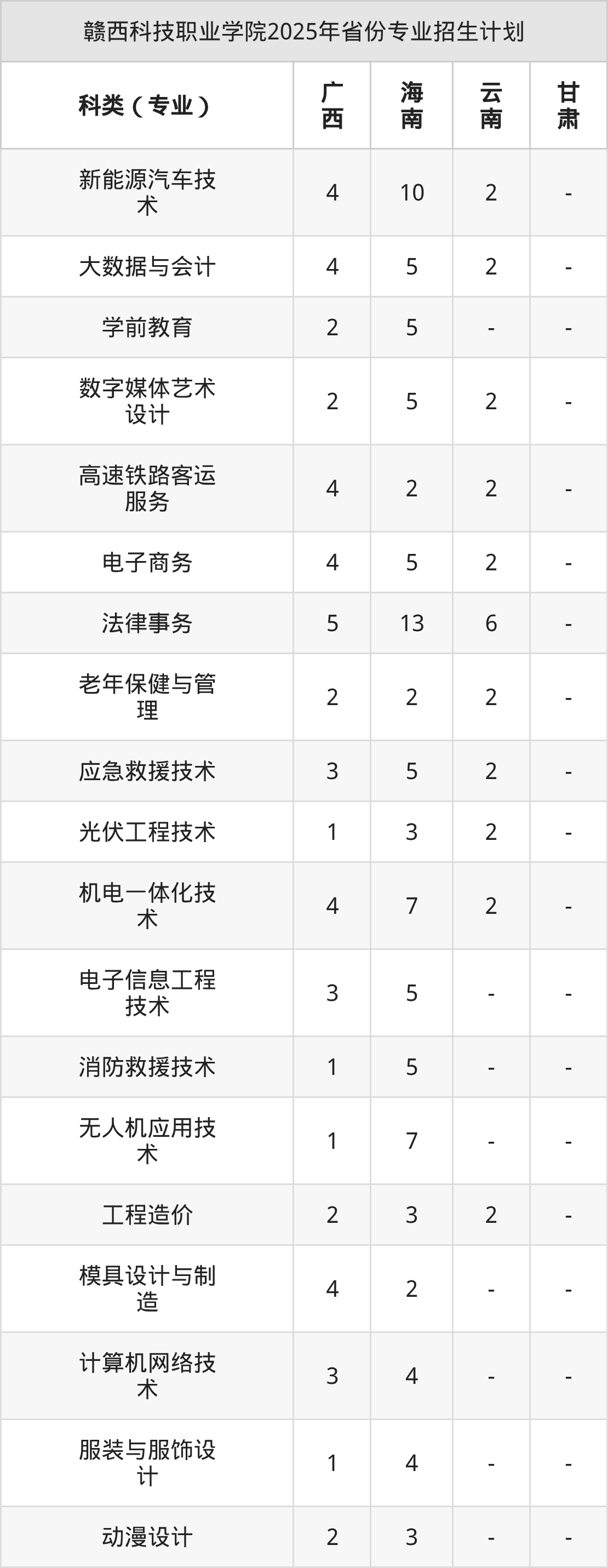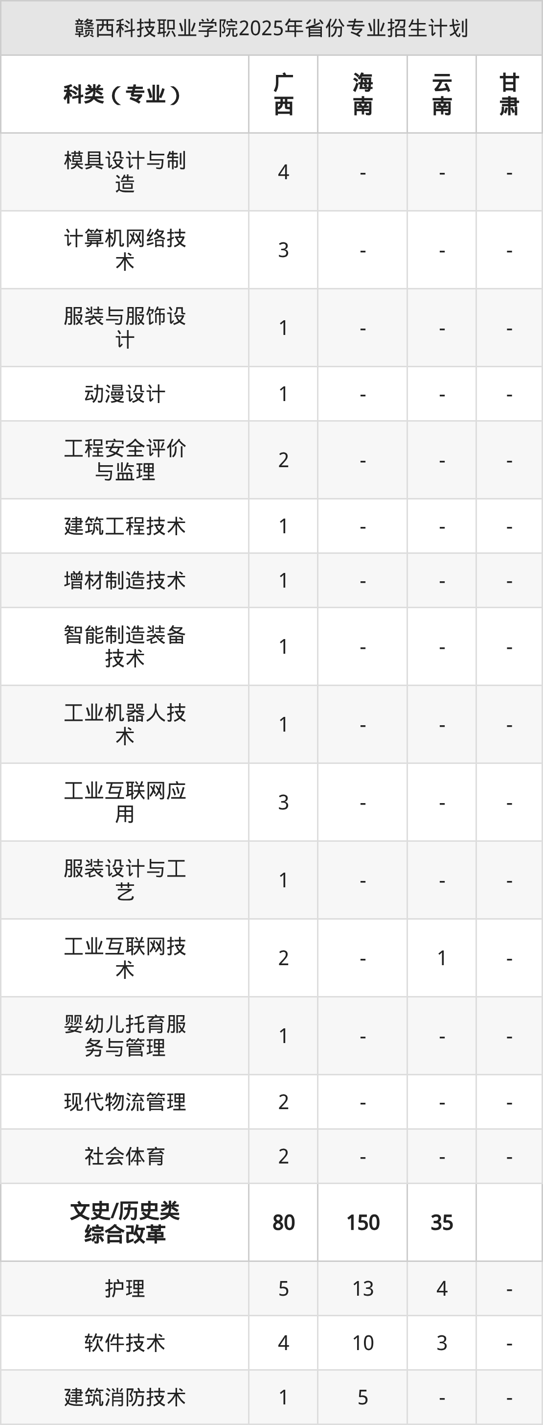 2026年赣西科技职业学院专科招生计划待公布,下面附上2025年数据,暂供参考: