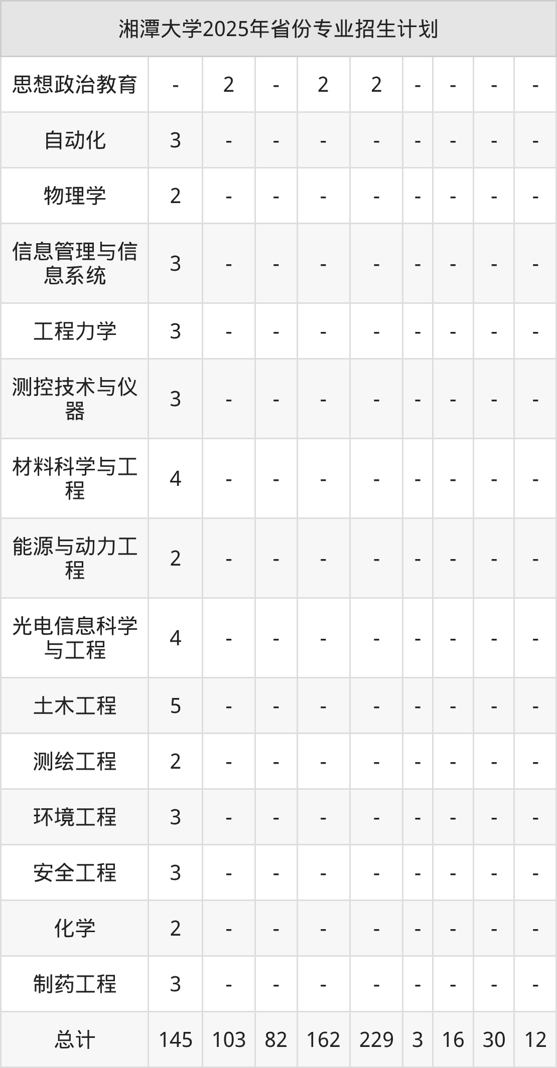 而各省份的招生计划数为广东143人,山东265人,辽宁100人,甘肃18人,江西162人等。