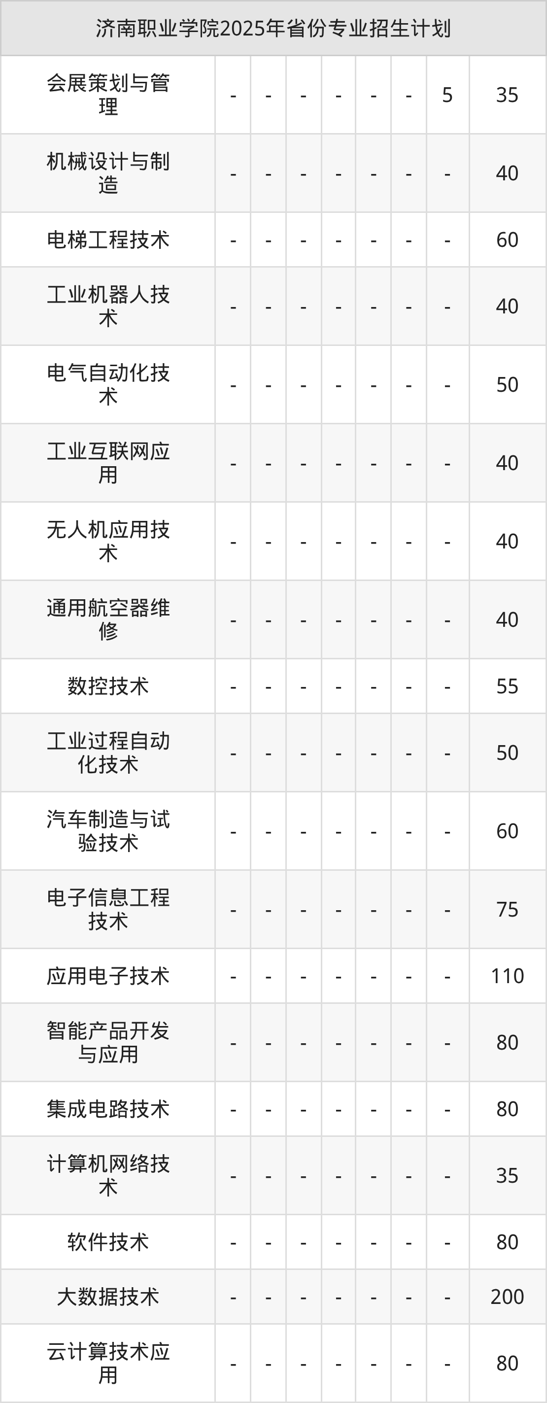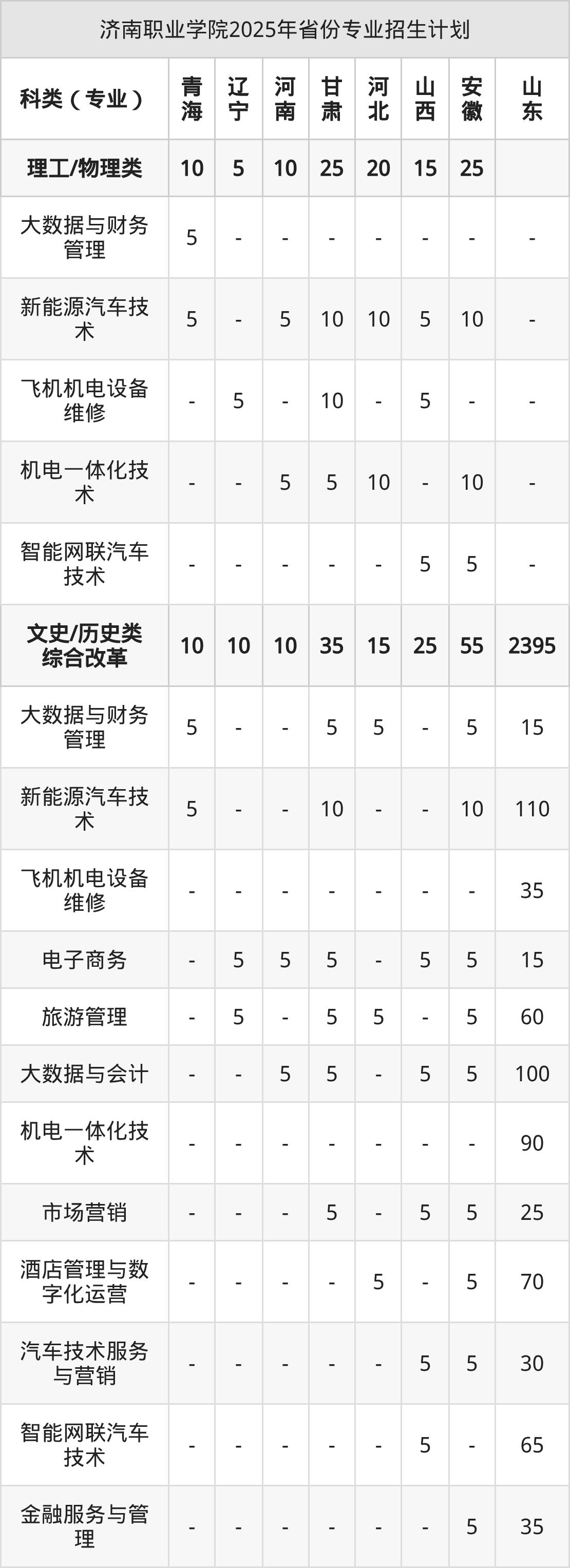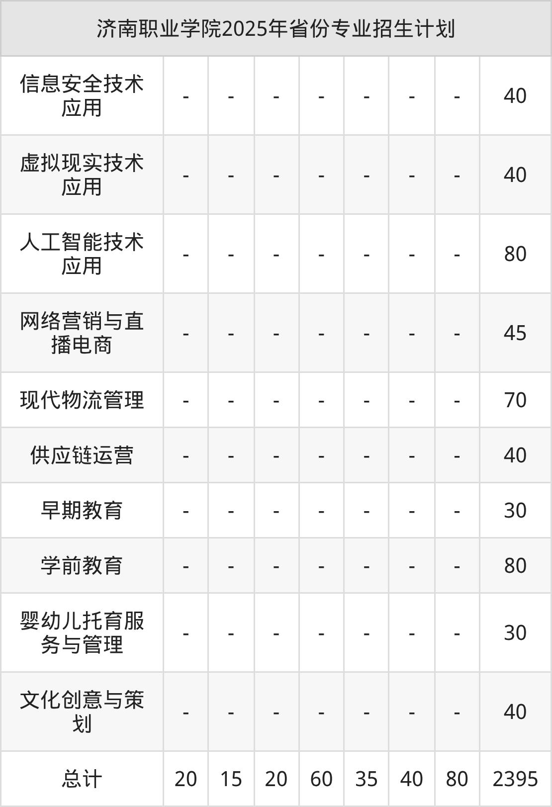 2026年济南职业学院专科招生计划待公布,下面附上2025年数据,暂供参考: