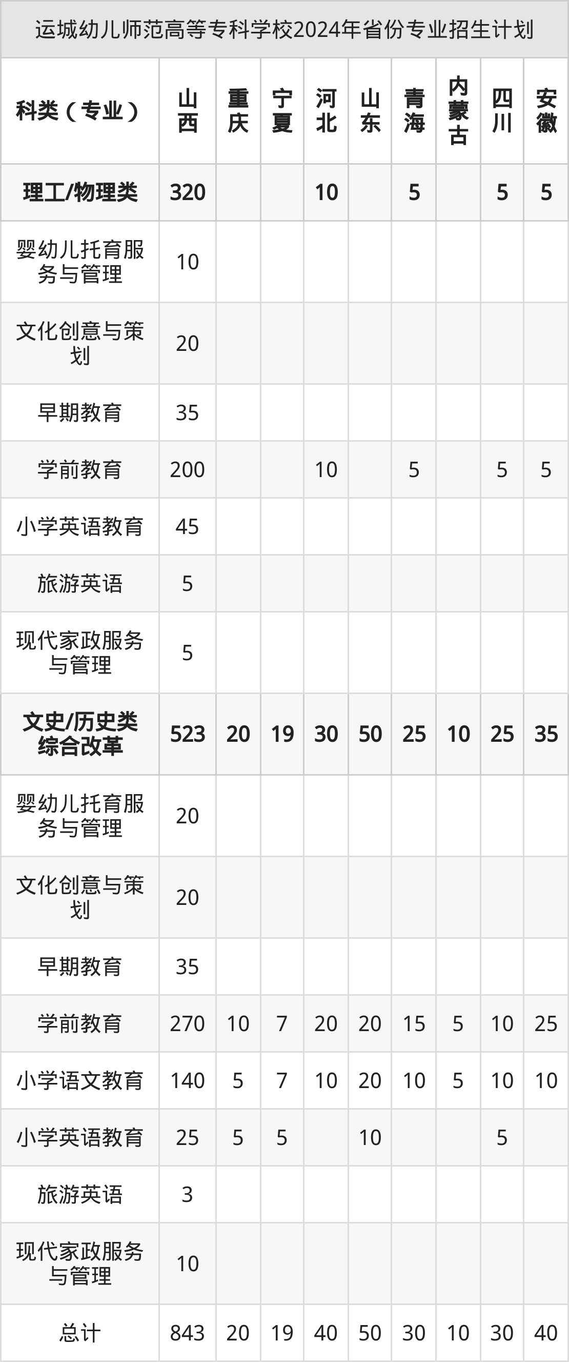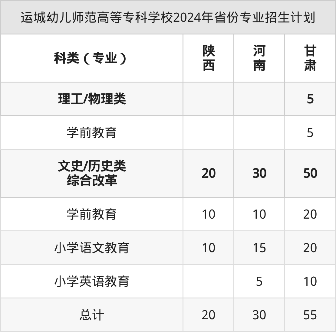 2025年运城幼儿师范高等专科学校专科招生计划待公布,下面附上2024年数据,暂供参考: