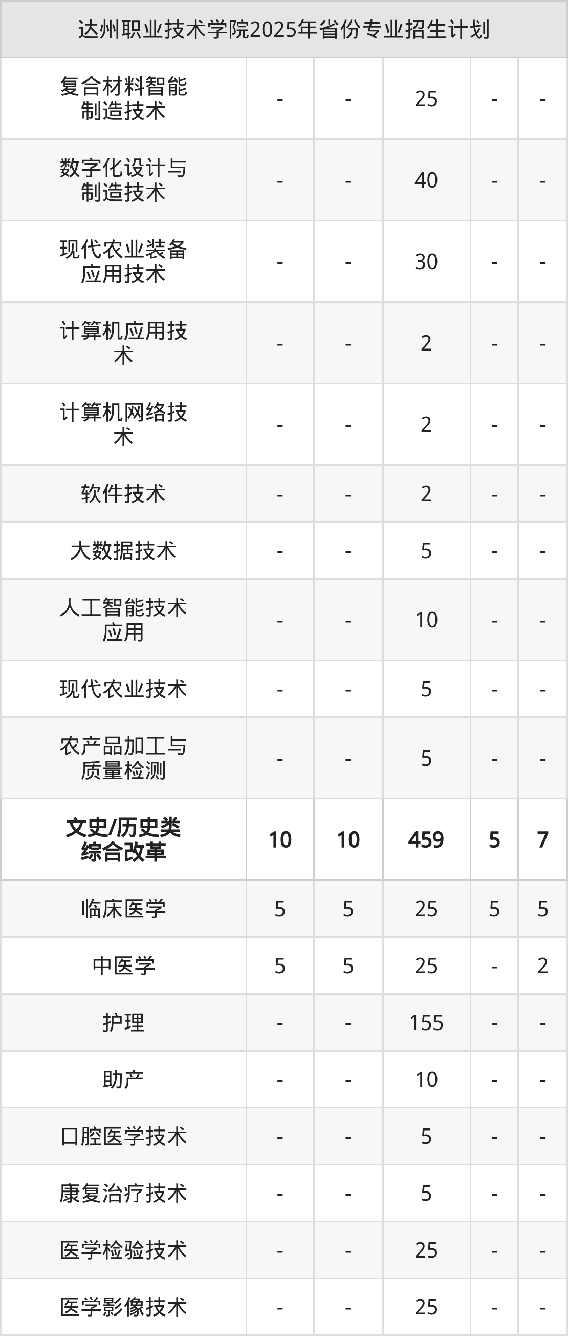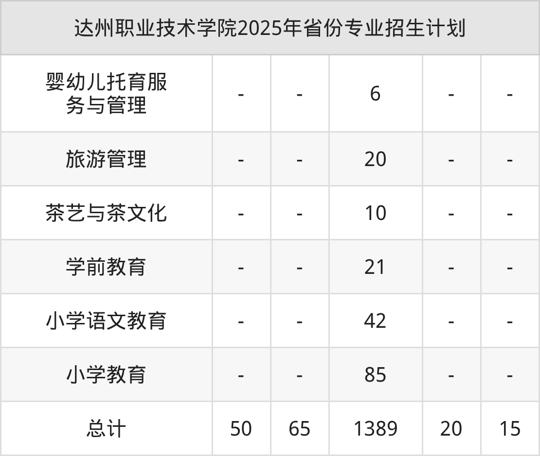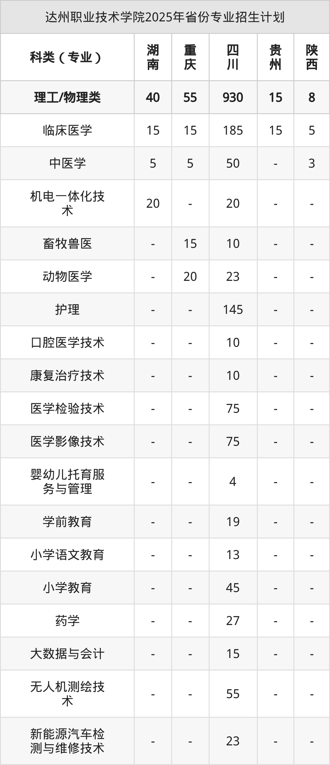 2026年达州职业技术学院专科招生计划待公布,下面附上2025年数据,暂供参考: