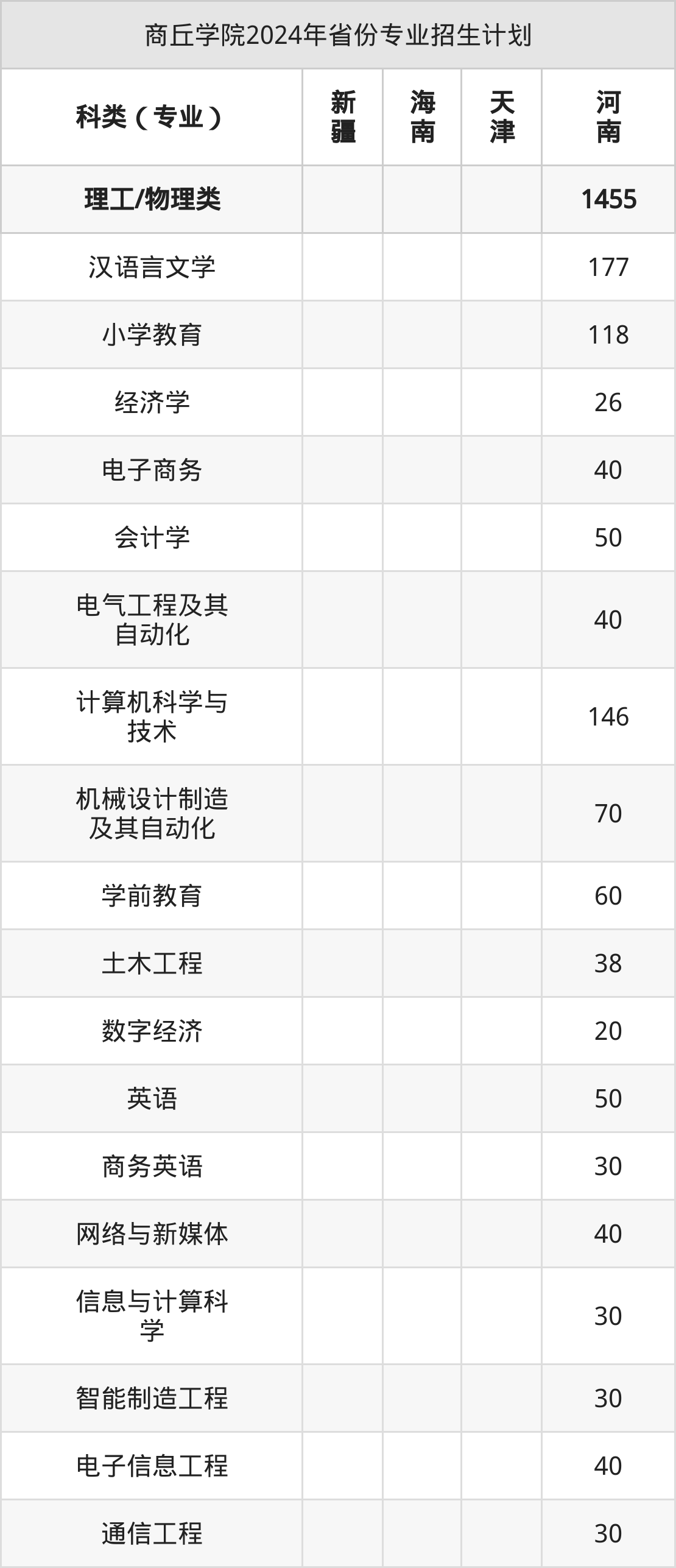 2025年商丘学院本科招生计划待公布,下面附上2024年数据,暂供参考: