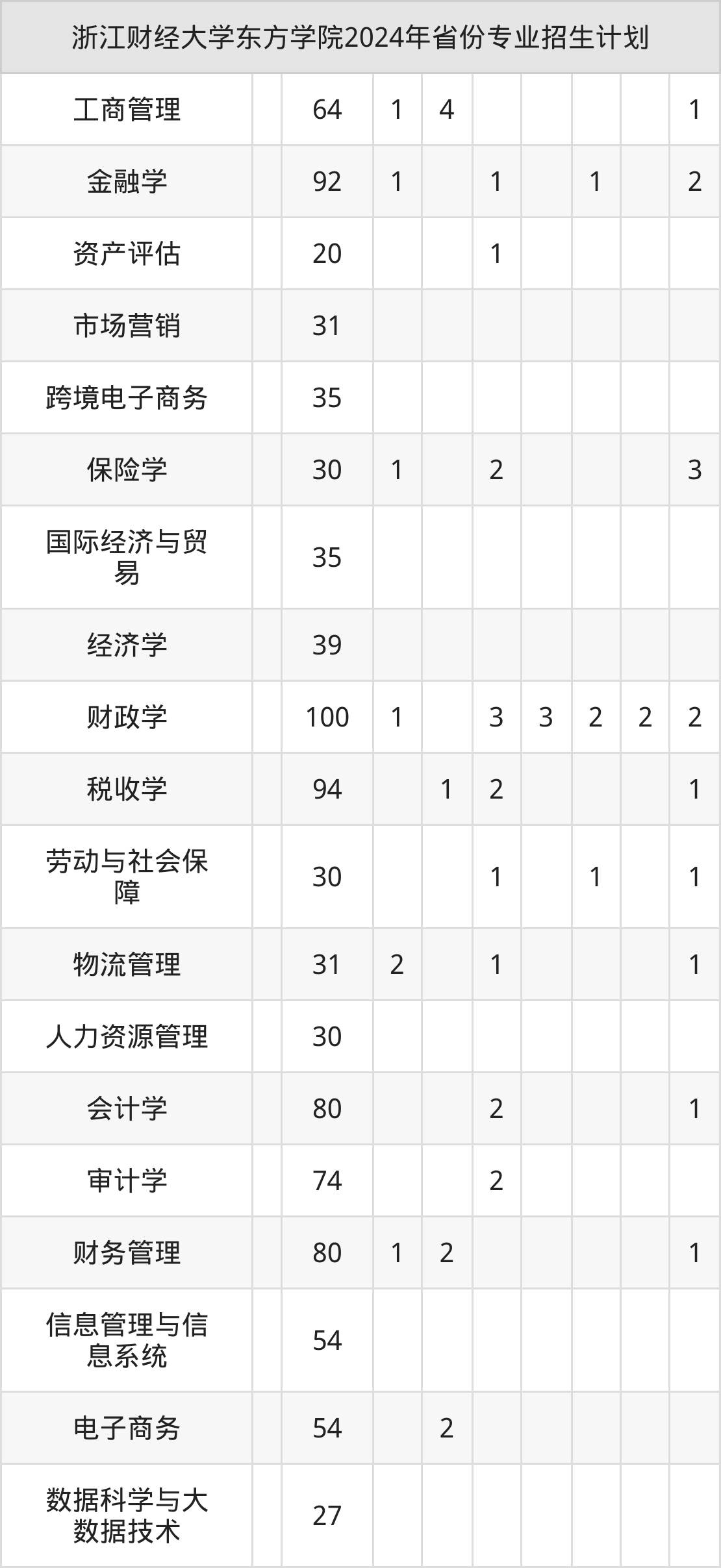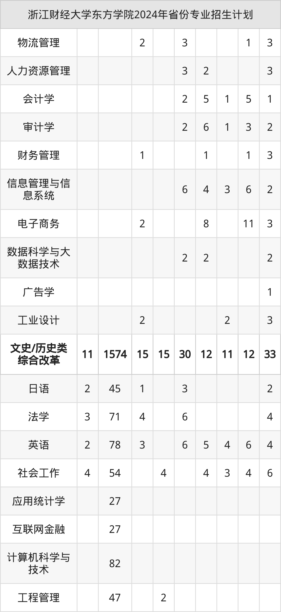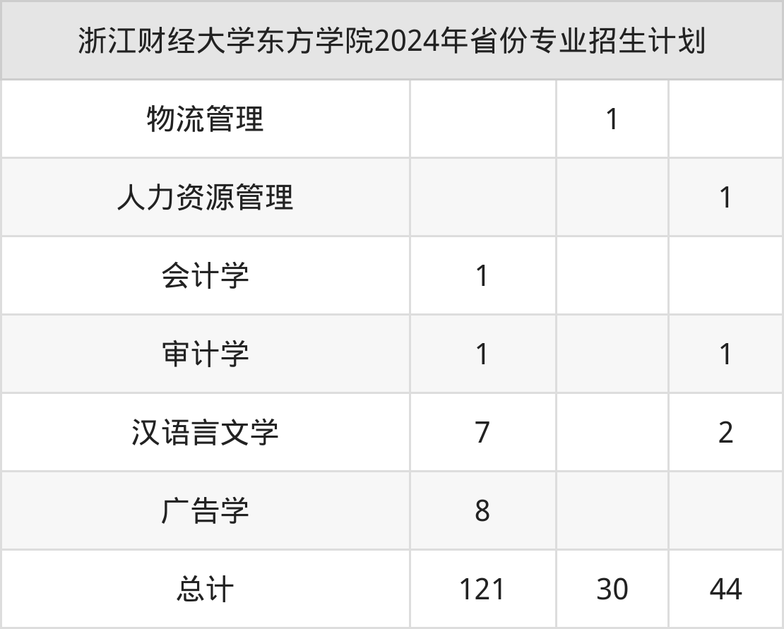 2025年浙江财经大学东方学院本科招生计划待公布,下面附上2024年数据,暂供参考: