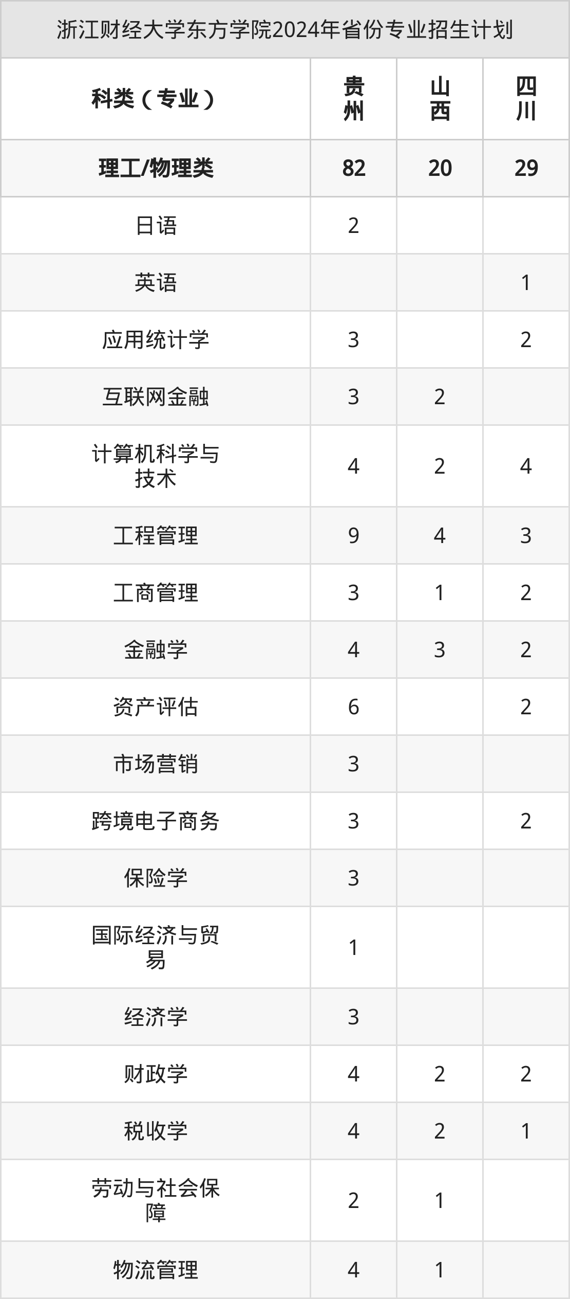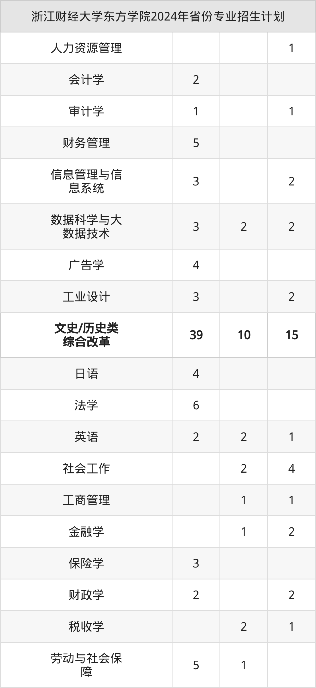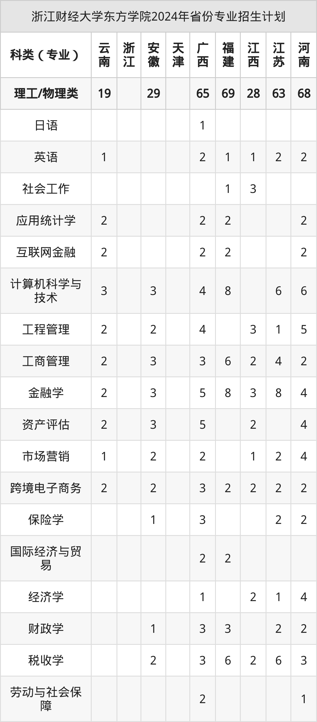 2025年浙江财经大学东方学院本科招生计划待公布,下面附上2024年数据,暂供参考: