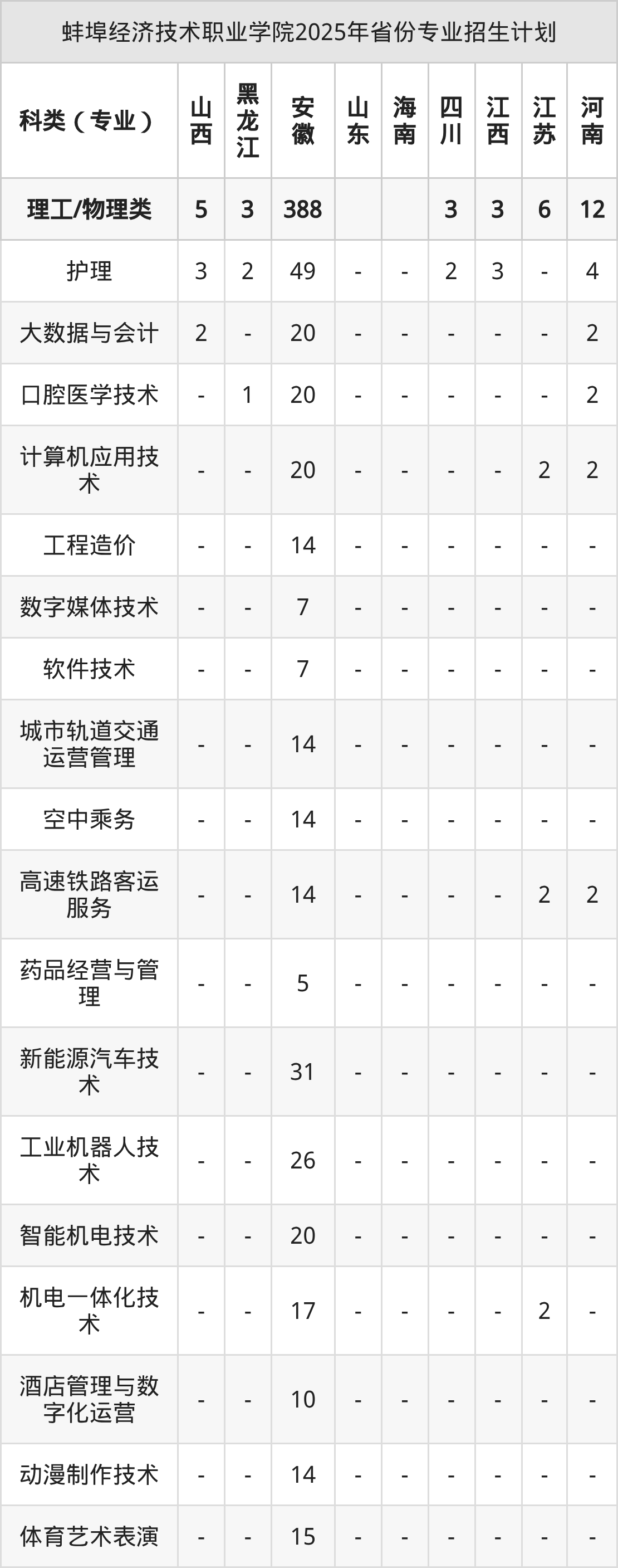 2026年蚌埠经济技术职业学院专科招生计划待公布,下面附上2025年数据,暂供参考: