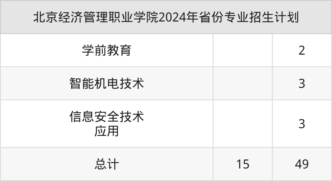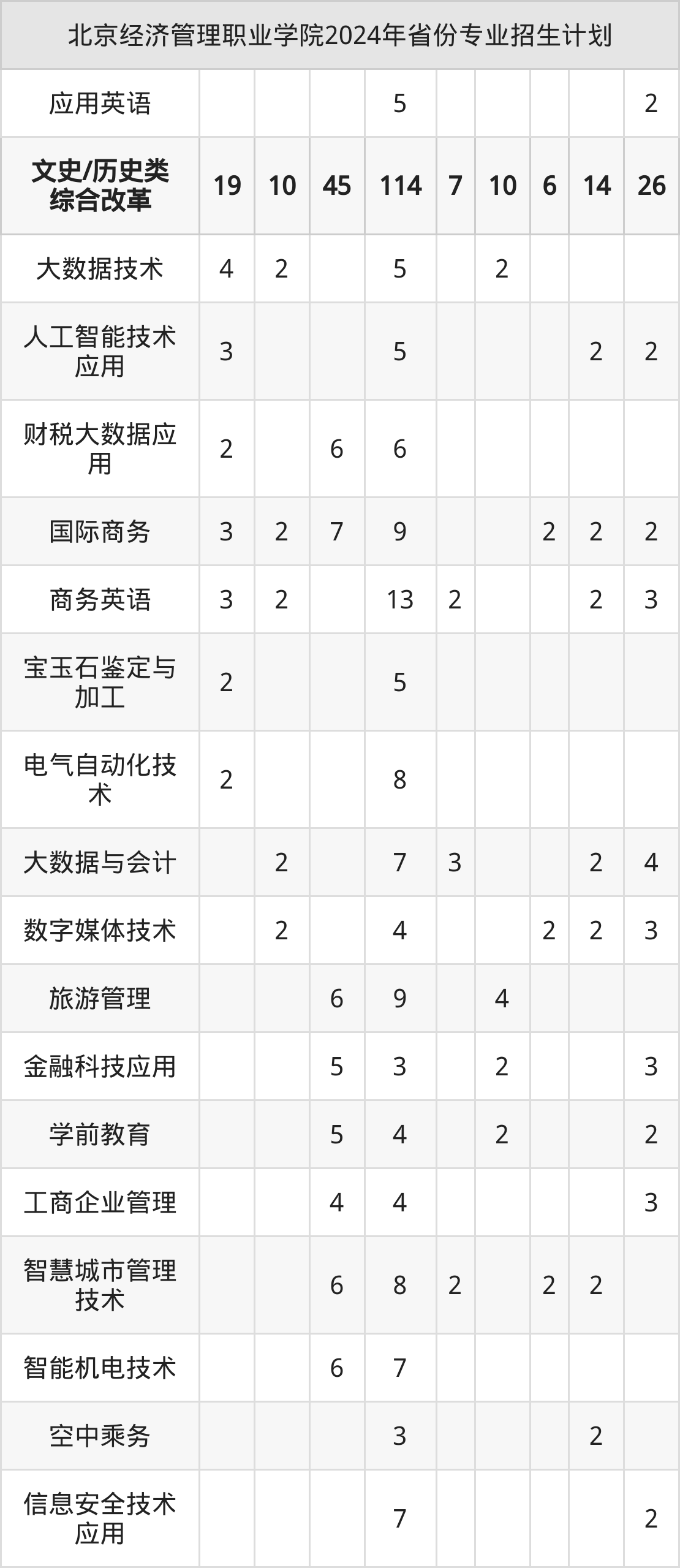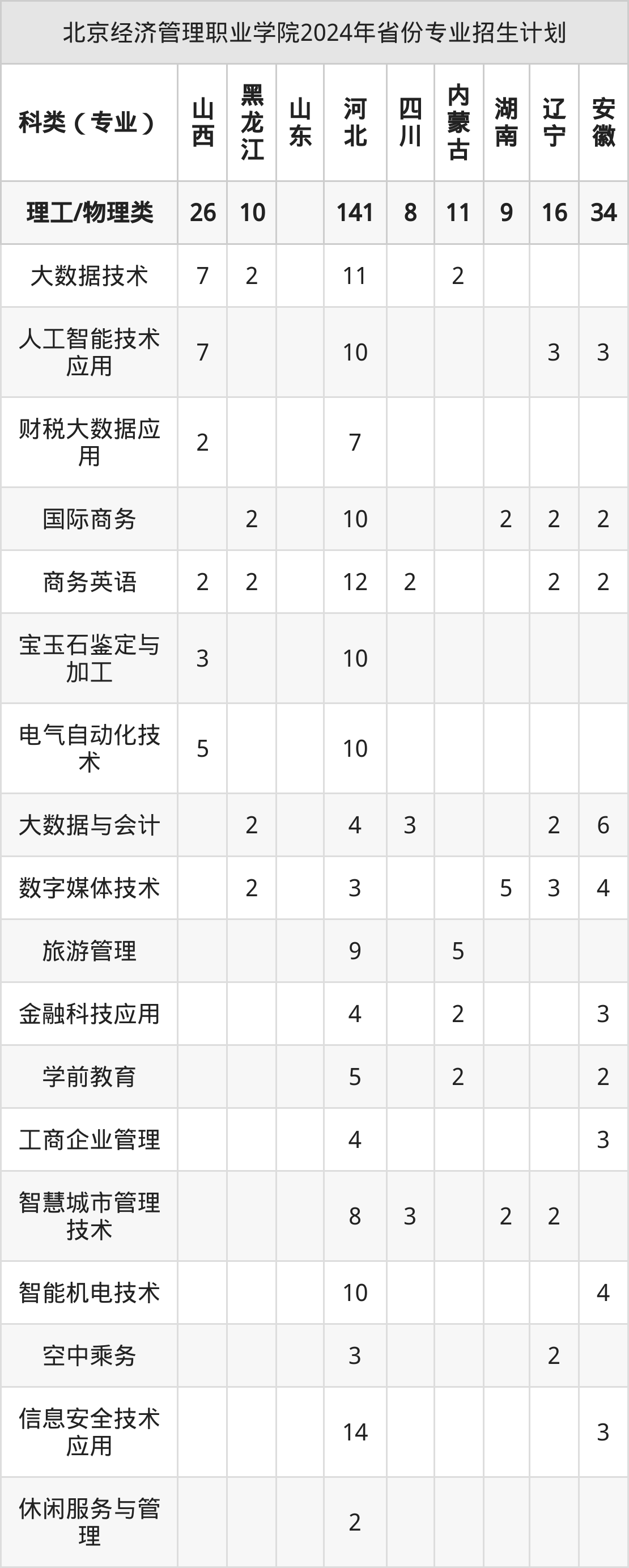 2025年北京经济管理职业学院专科招生计划待公布,下面附上2024年数据,暂供参考: