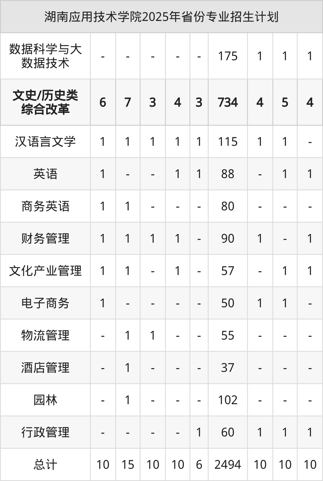 而各省份的招生计划数为贵州32人,河南10人,甘肃15人,湖南2494人,山西10人等。