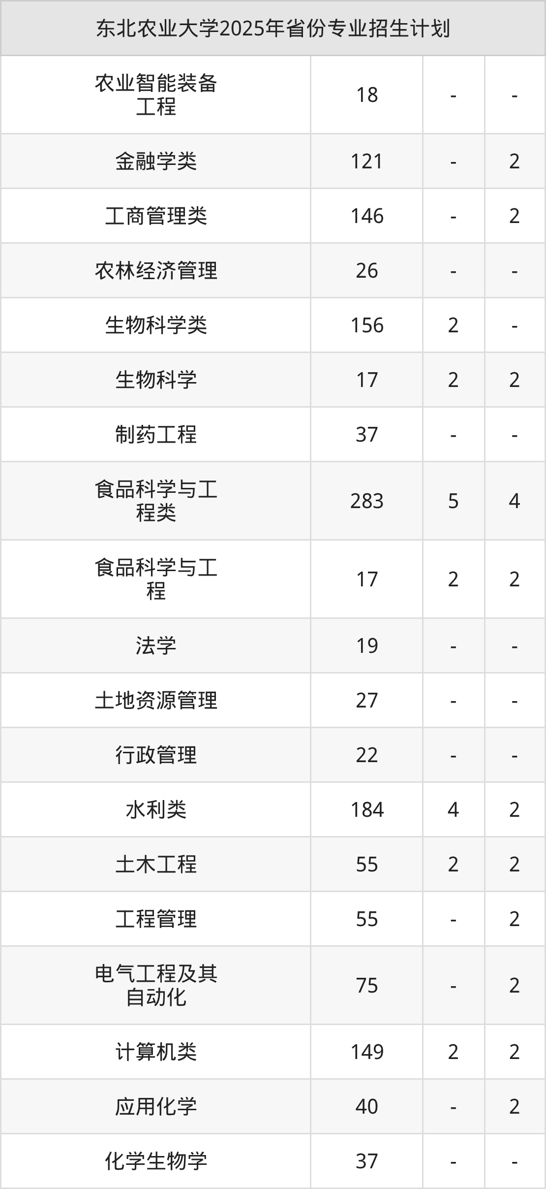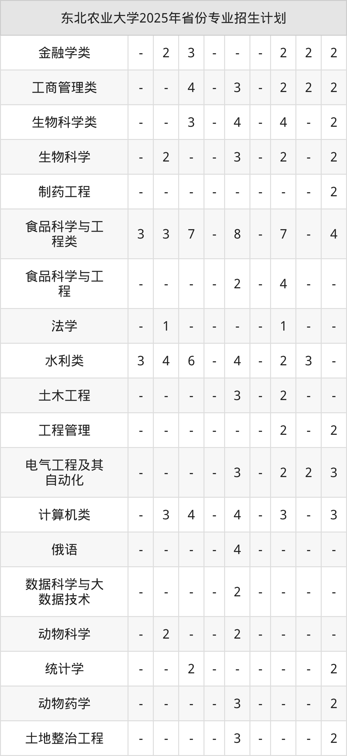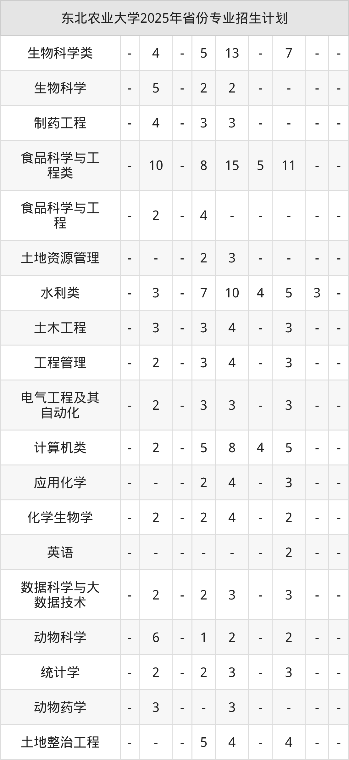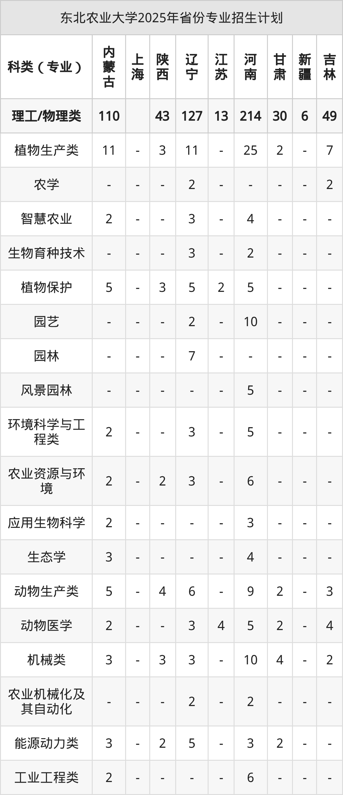 2026年东北农业大学本科招生计划待公布,下面附上2025年数据,暂供参考: