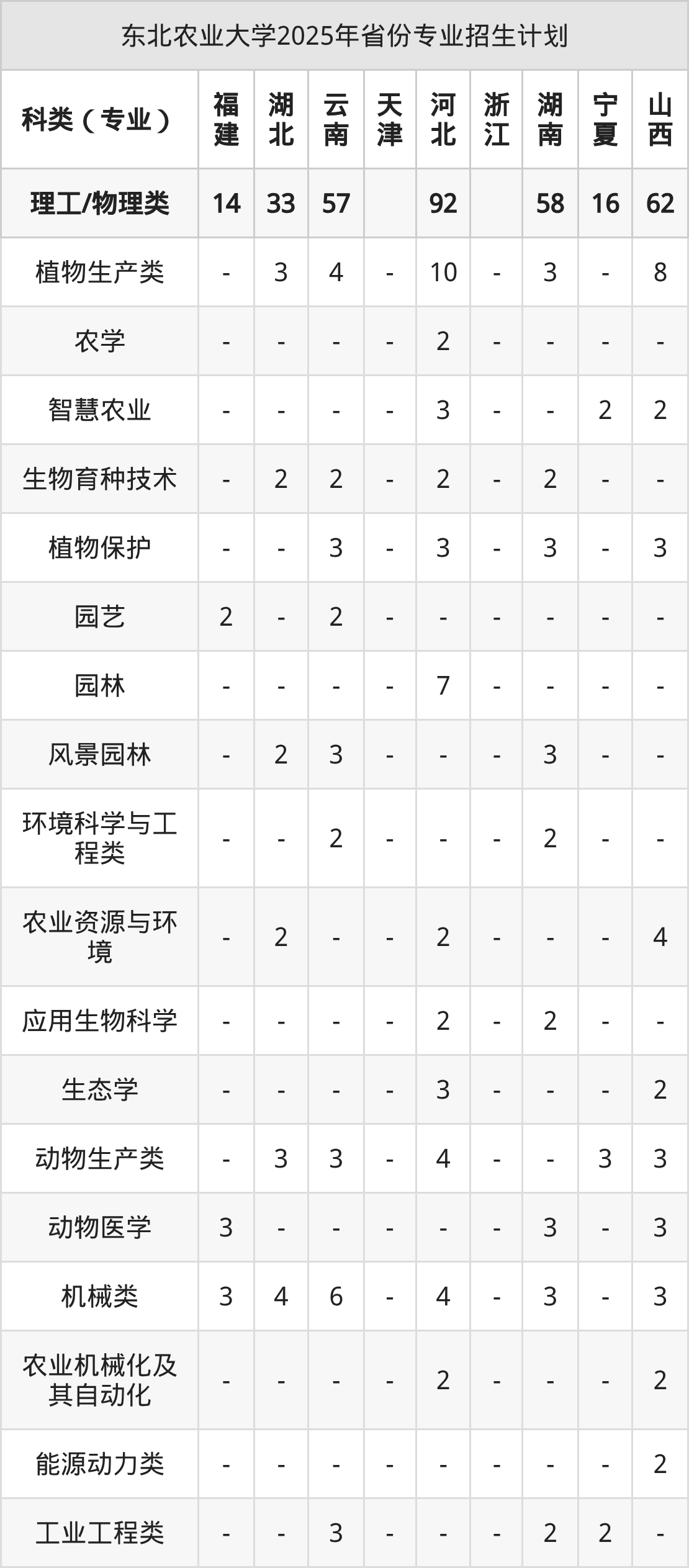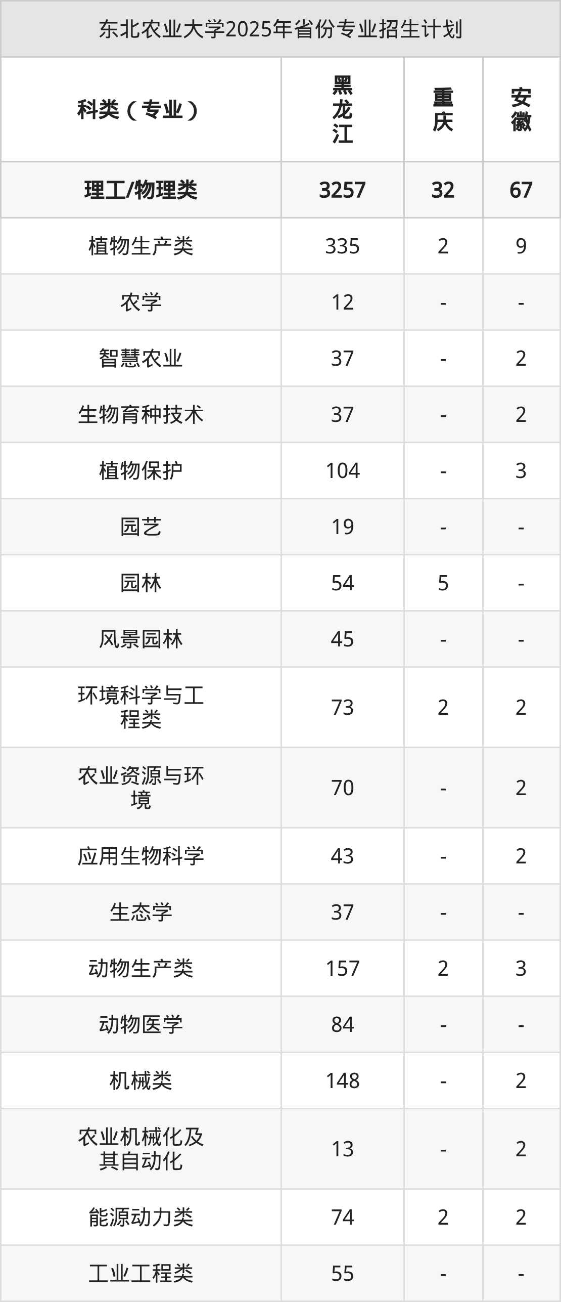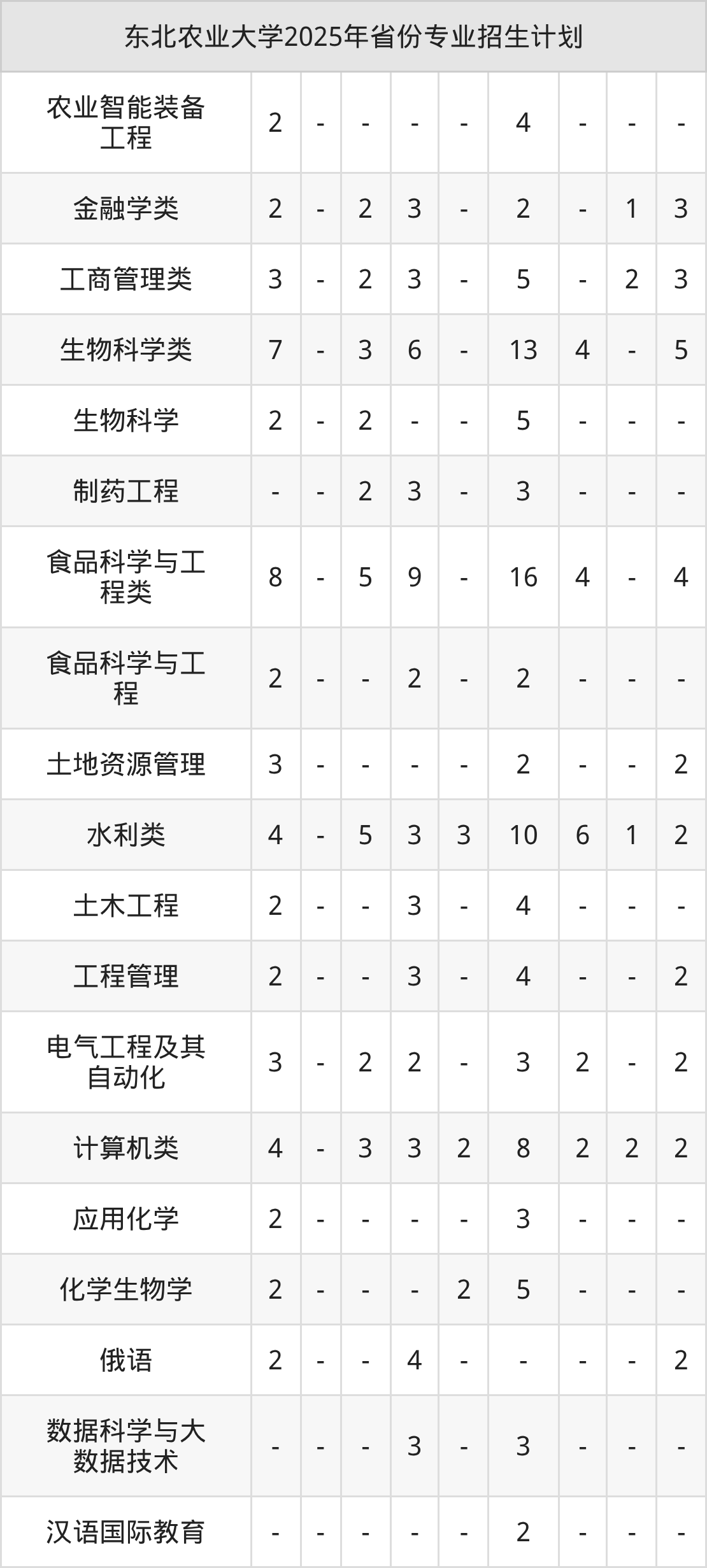 2026年东北农业大学本科招生计划待公布,下面附上2025年数据,暂供参考: