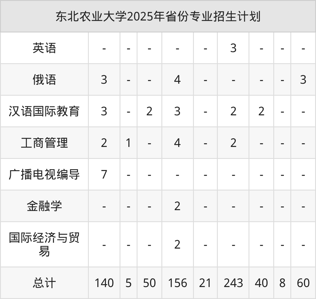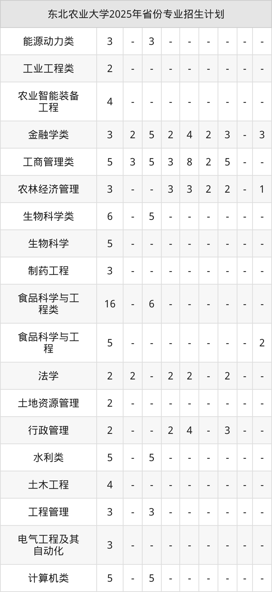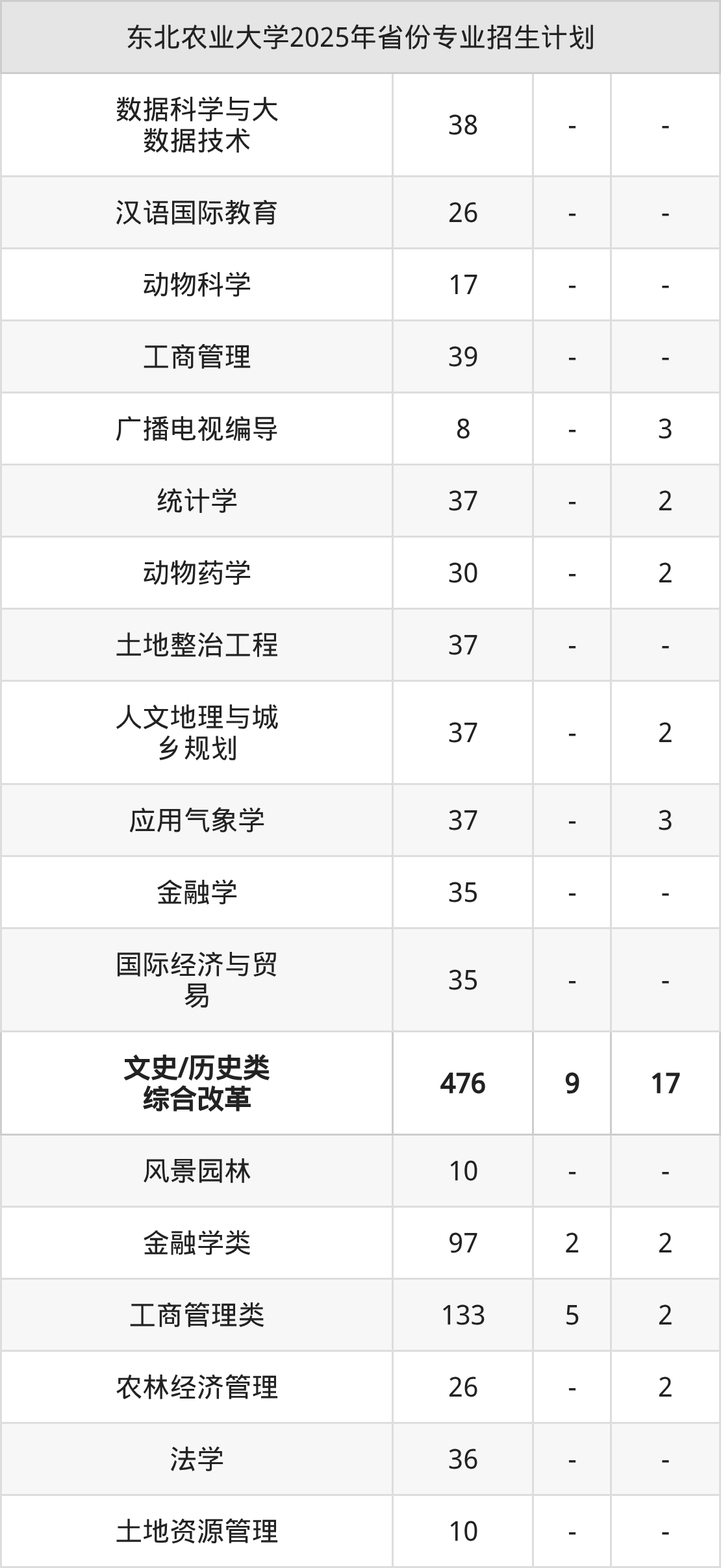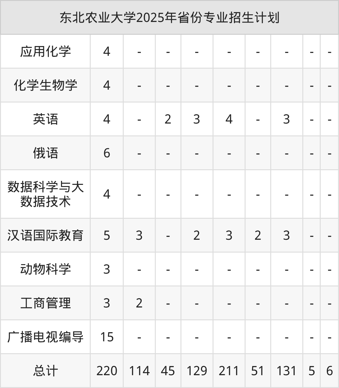 2026年东北农业大学本科招生计划待公布,下面附上2025年数据,暂供参考: