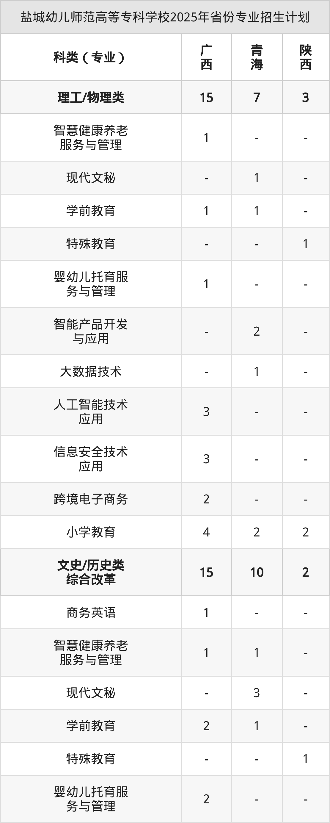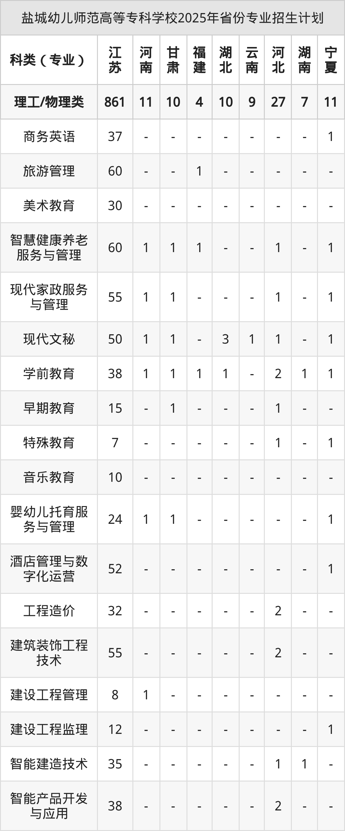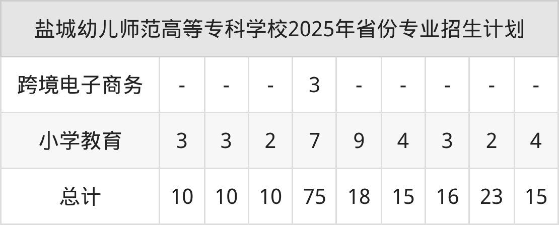 2026年盐城幼儿师范高等专科学校专科招生计划待公布,下面附上2025年数据,暂供参考:
