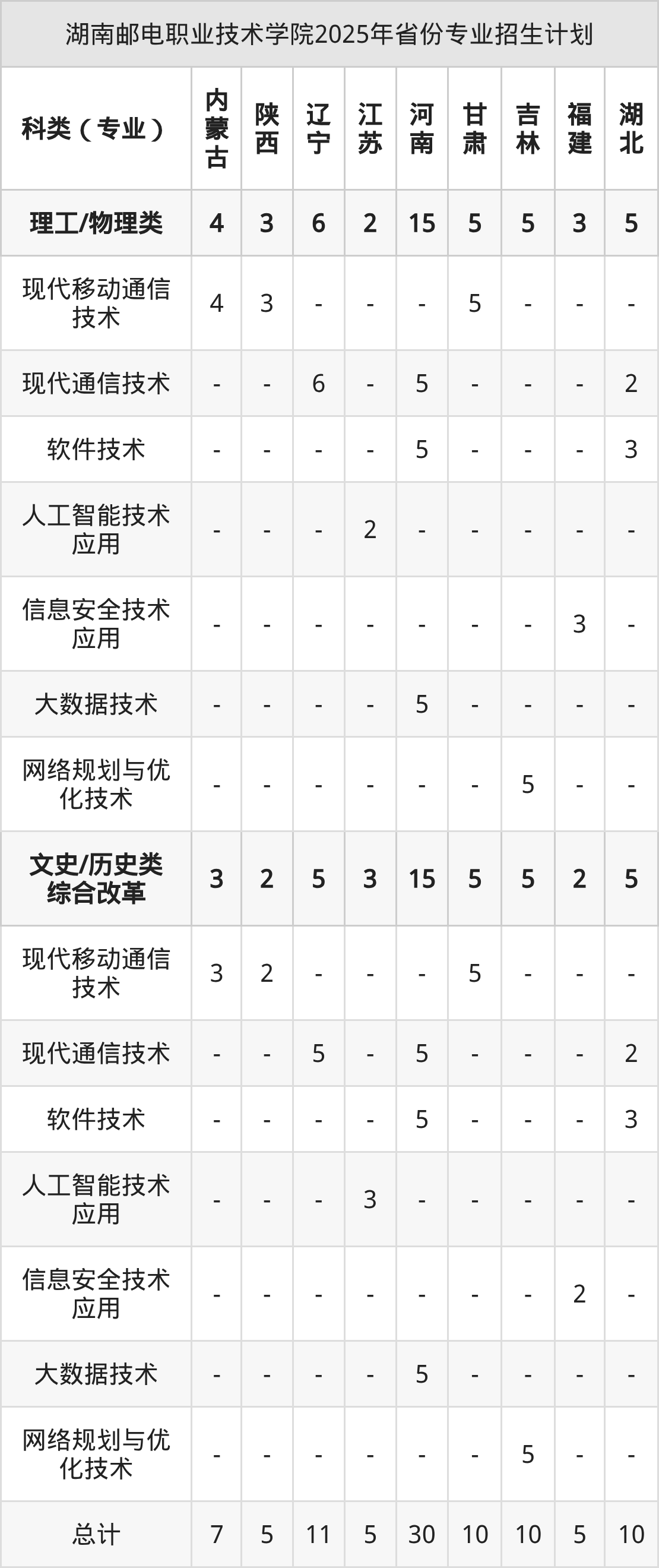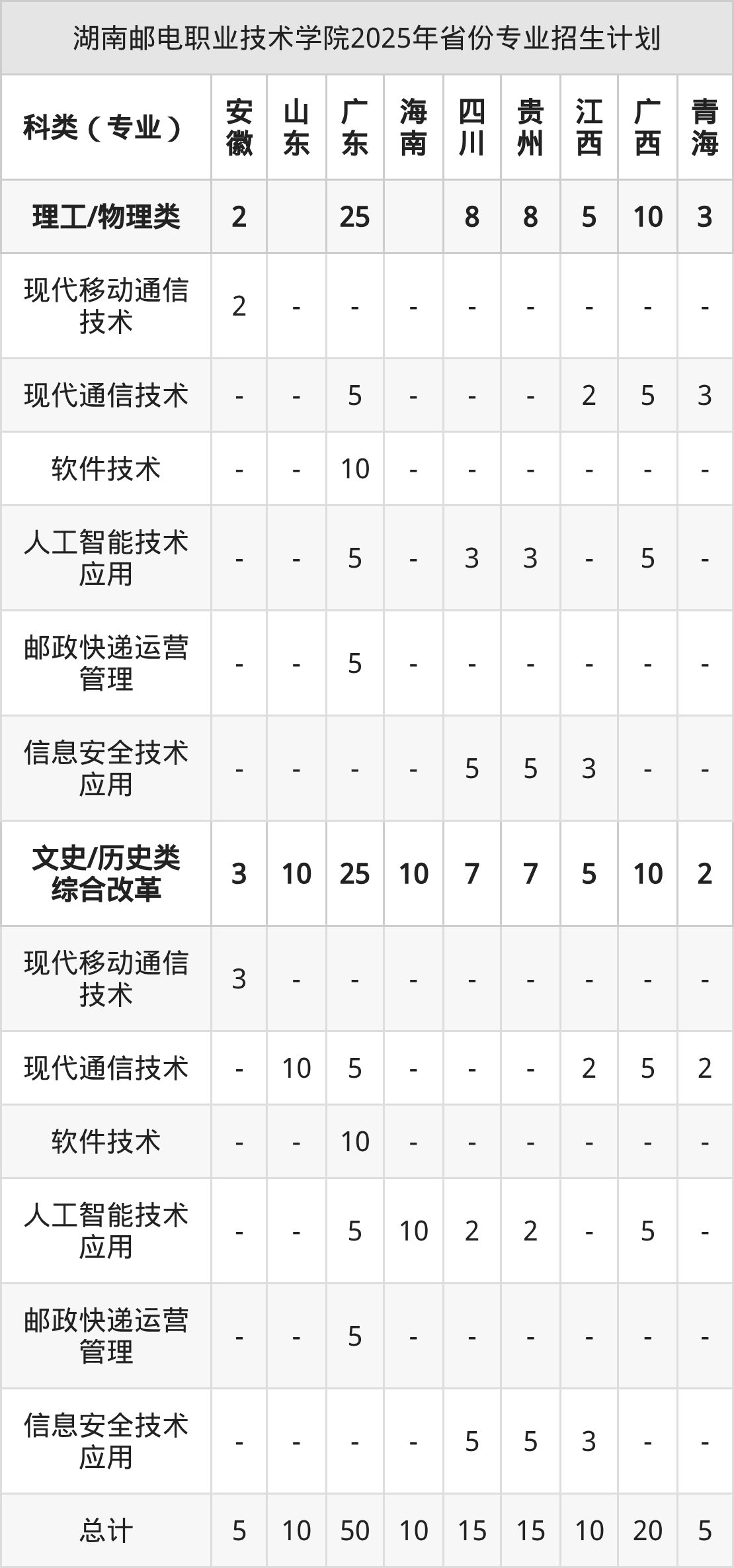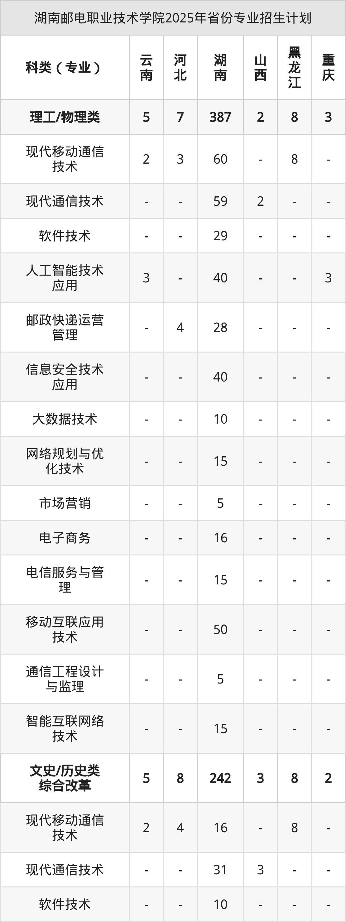 2026年湖南邮电职业技术学院专科招生计划待公布,下面附上2025年数据,暂供参考: